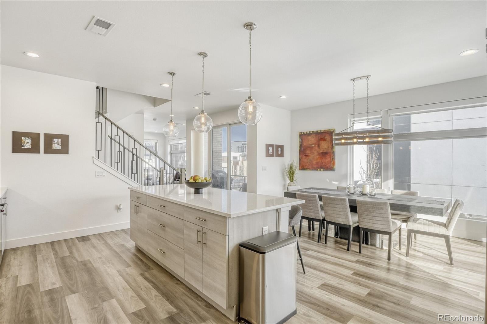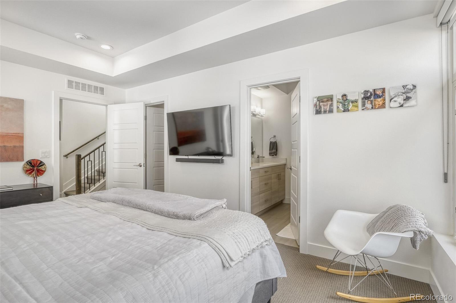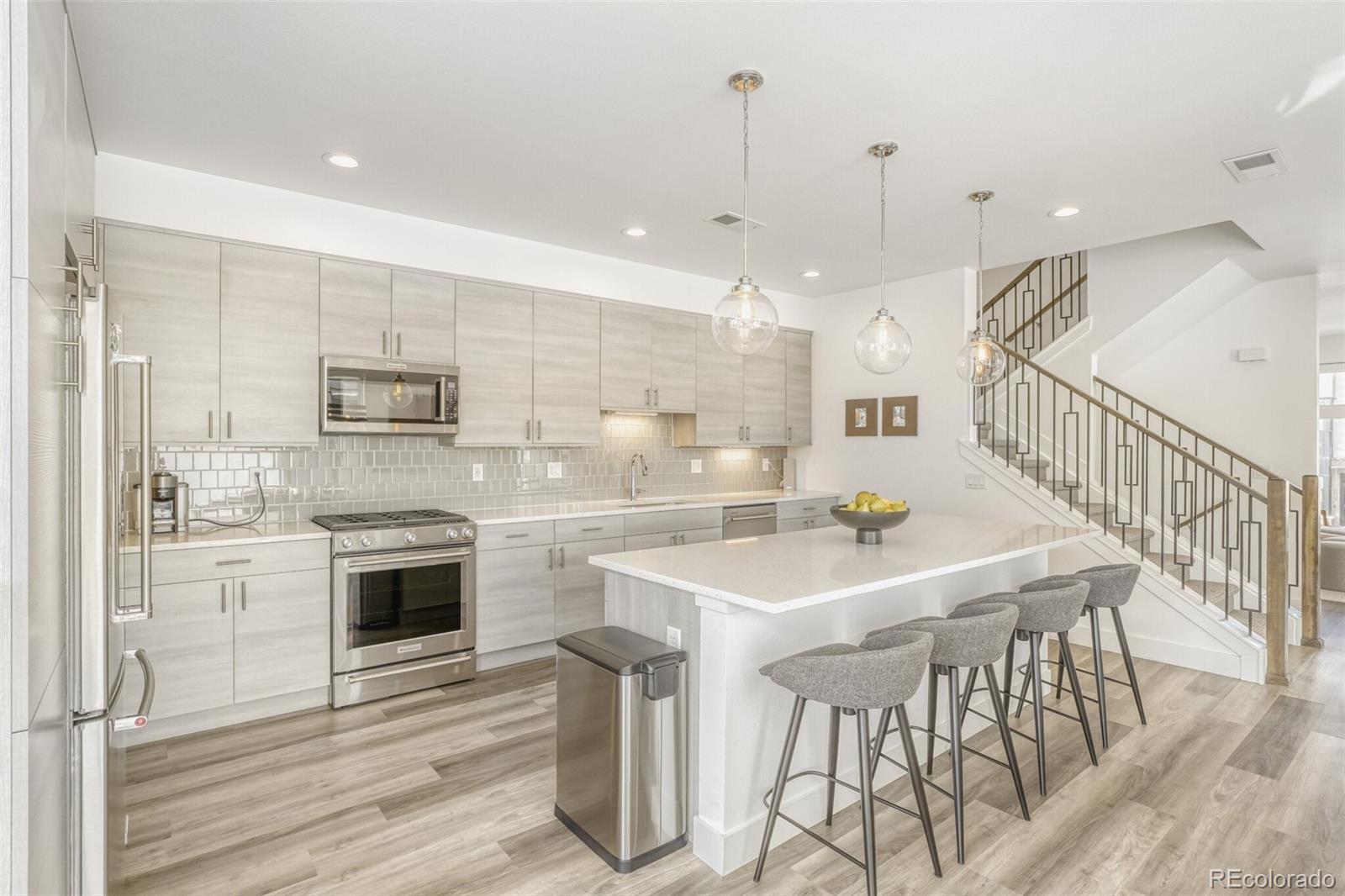 Contemporary Boulevard One living in the heart of Lowry—where clean lines, smart flow, and true indoor/outdoor spaces set this residence apart. A distinctive 4-bedroom, 4-bath layout unfolds across three spacious levels, anchored by an open-concept main floor ideal for everyday living and effortless entertaining. Enjoy a second-level balcony for morning coffee or grilling, then take the party upstairs to the rooftop deck with sweeping city and mountain views—a rare retreat built for sunsets, stargazing, and gatherings. The kitchen delivers a designer feel with generous prep space and a seamless connection to the living area, while the private primary suite offers a calming escape with a luxurious ensuite bath. Convenient access to neighborhood parks, trails, and Denver favorites—plus the lock-and-leave ease you want in a destination location.