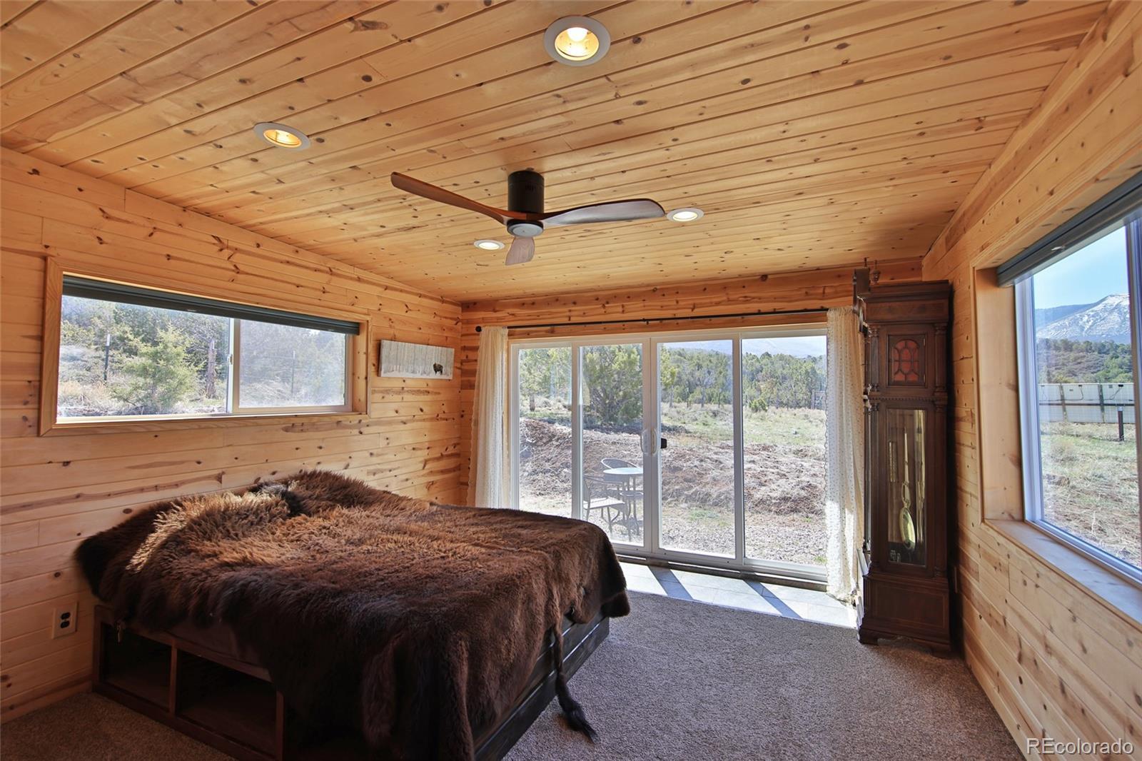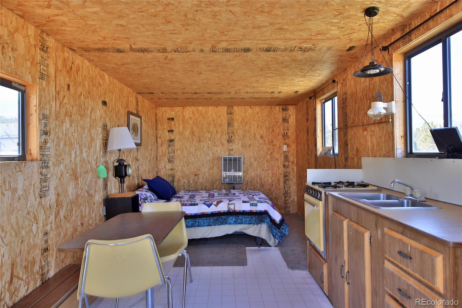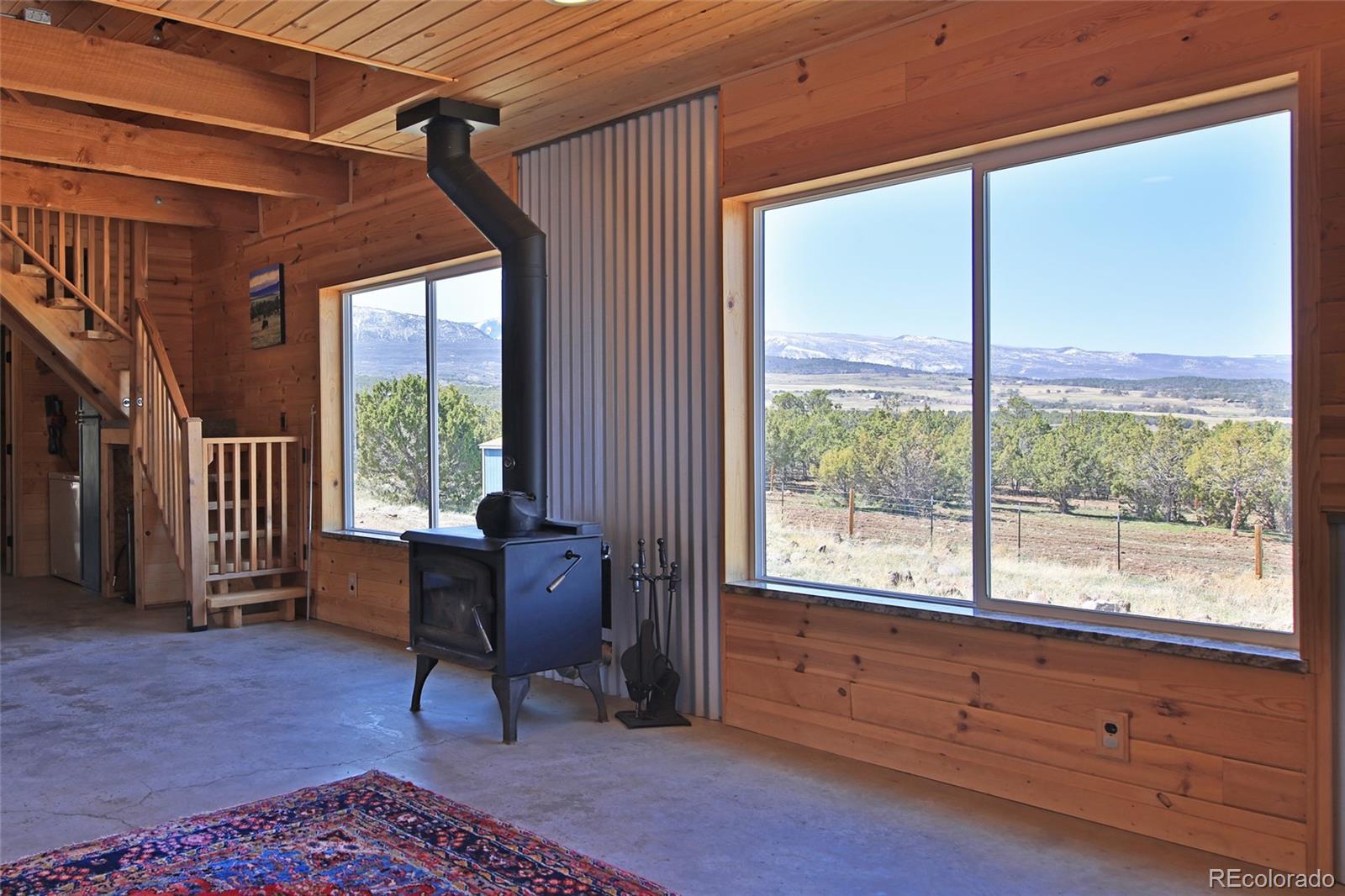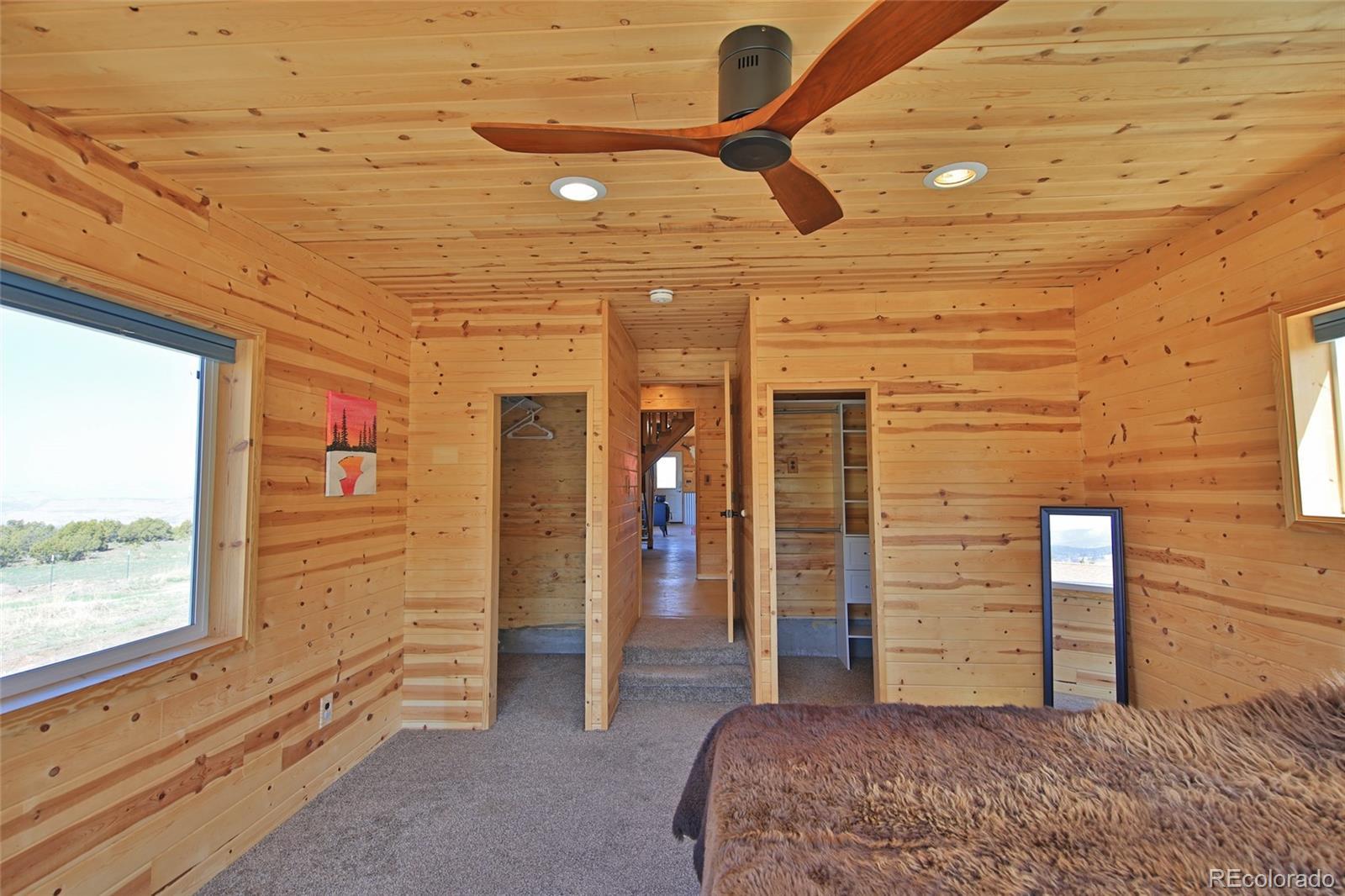 This Colorado off grid modern homestead built in 2018 is move-in ready for your "get-away-from-it-all" dreams. The large graveled drive leads down past the 2,100 sq ft shop to the cute and cozy 840 sq ft custom energy efficient home with one primary bedroom and one loft bedroom. The main living space features vaulted ceilings with custom pine tongue and groove walls and open concept living. Large double bay windows look out over the Grand Mesa giving this home views you'll never tire of. An additional heated and powered guest cabin expands sleeping quarters. The kitchen has a butcher block countertop, new dishwasher, refrigerator, gas range and chest freezer. The full bath includes a deep soak claw tub with shower and vanity. Laundry room area includes a full-size stackable washer and dryer. Step down into a spacious master bedroom with dual walk-in closets. Enjoy the gorgeous views out of the bedroom with the 10 foot wide double sliding glass door providing access to the outside sitting area. Wood stove, wall propane heat, instant hot water heater, concrete/ carpet flooring, recessed lighting, and ceiling fans create efficiency and ease in a country lifestyle. Electric is provided by an off grid solar system with a backup generator. Grid power is on site and can be connected if desired. The home is on a well and septic. Outside additions include a graveled circle drive with gate and security alarm, RV dump, chicken run with coop, and garden area with rain water collection. The 2,100 sq ft shop building has 4 bays, power, and extends with an additional 20x30 hay barn at the end. One bay has a concrete floor with windows and a single door entrance. The other 3 bays are gravel flooring. Ten foot overhead doors allow easy access for large vehicles, equipment and lots of storage area. The pastures are fenced, cross fenced and ready for livestock. Seasonal runoff fills 4 livestock ponds and there is a small spring fed pond.