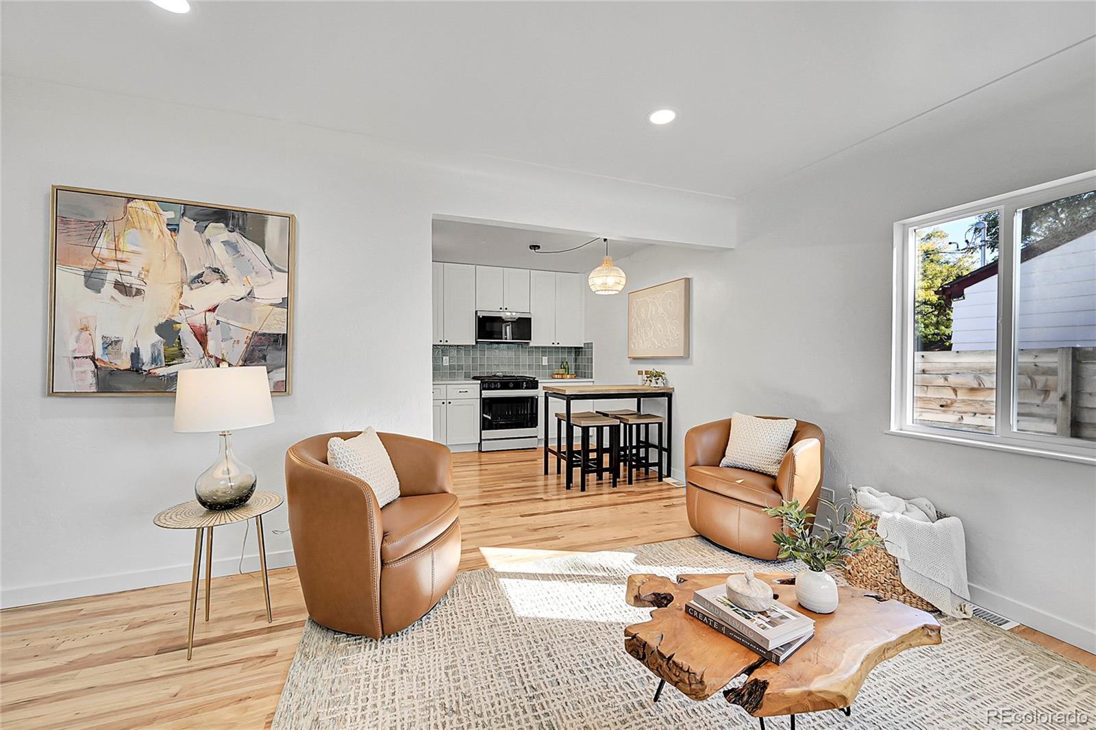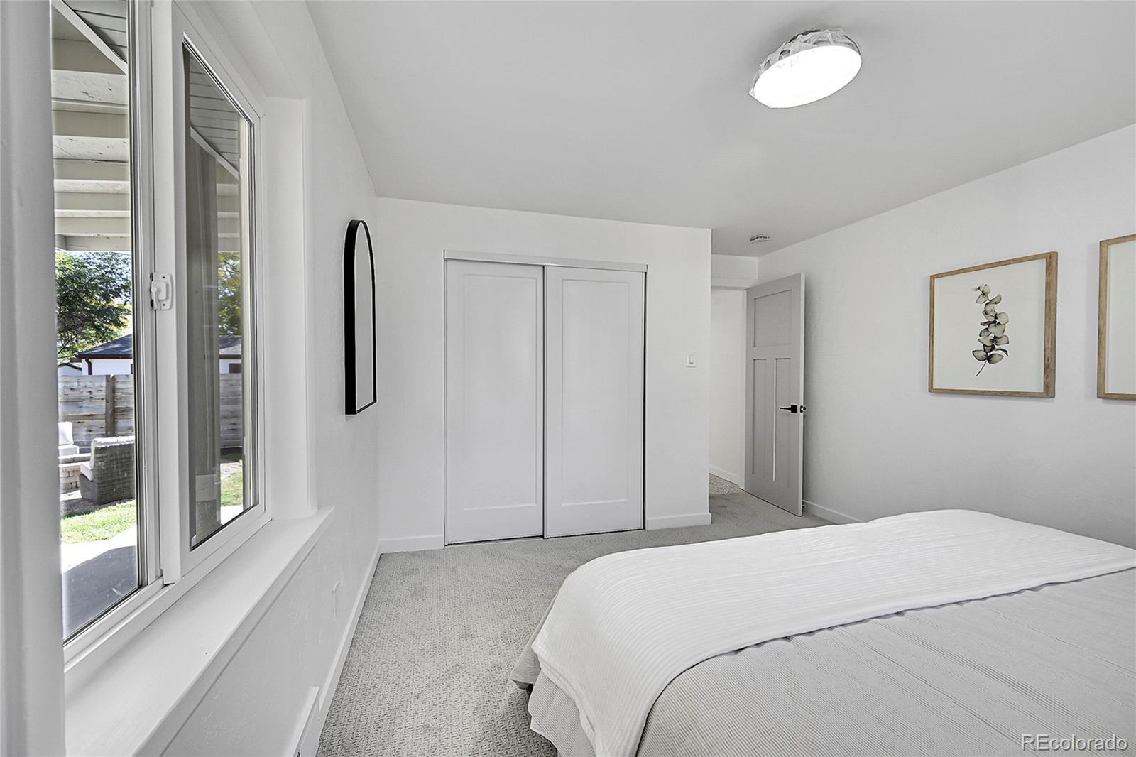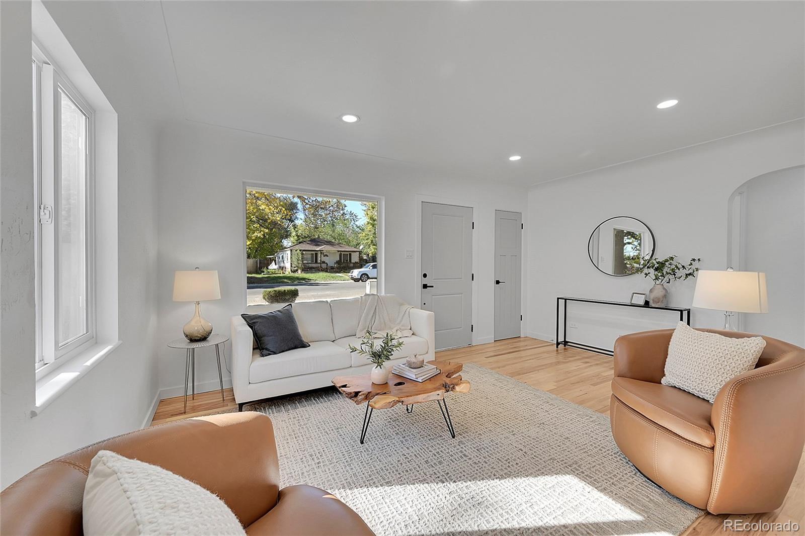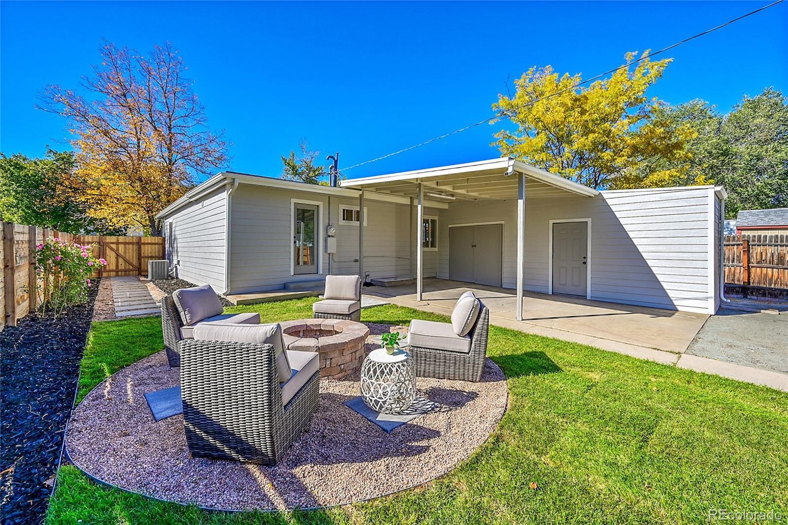 Professionally designed, fully renovated and centrally located less than 10 mins from downtown Denver! With excellent curb appeal, new exterior paint, windows, front door, concrete walkway and landscaping, you'll be instantly impressed. Beautiful refinished hardwood flooring leads you into a brand new, open-concept kitchen featuring white shaker cabinetry, slab quartz countertops, designer tiled backsplash, high-end white Bespoke appliances, new hardware and faucet. Primary suite offers plush new carpet and a fully remodeled 3/4 bathroom with penny tiled floor, luxurious shower, new vanity, mirror and lighting. Two additional bedrooms with hardwood flooring, and a fully renovated full bathroom with new tile, bathtub, vanity, shower valve, vanity and mirror. Darling and functional laundry/mud room adds pantry and storage space with built-in white shaker cabinetry. The gorgeous backyard offers plenty of parking options including space for an RV, covered carport and large gravel lot with sliding gate. New fence, sod and fire pit, perfect for chilly winter nights and entertaining. Additional storage space on the side of the carport. This home has all new paint, doors, lighting, windows, furnace, water heater and central AC! Schedule your showing before it's too late.