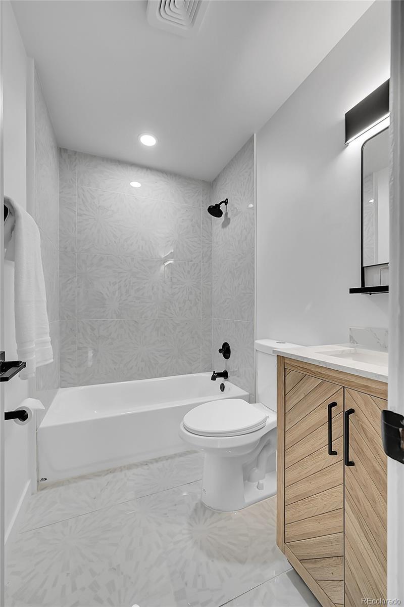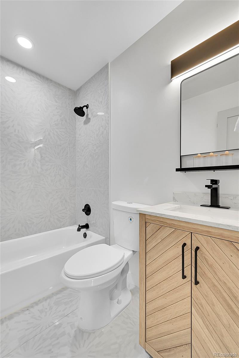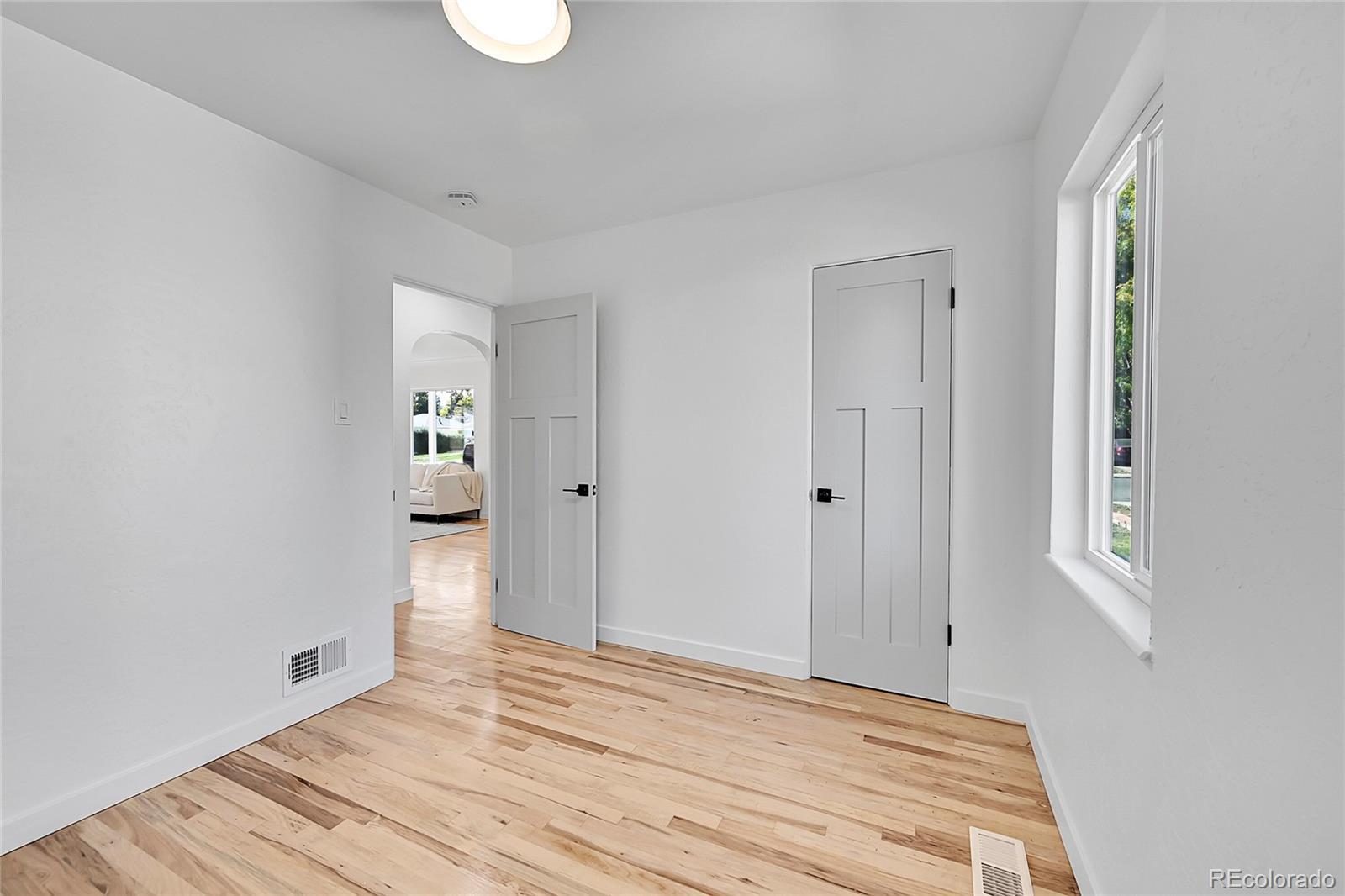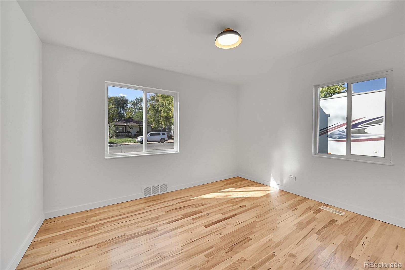 Professionally designed, fully renovated and centrally located less than 10 mins from downtown Denver! With excellent curb appeal, new exterior paint, windows, front door, concrete walkway and landscaping, you'll be instantly impressed. Beautiful refinished hardwood flooring leads you into a brand new, open-concept kitchen featuring white shaker cabinetry, slab quartz countertops, designer tiled backsplash, high-end white Bespoke appliances, new hardware and faucet. Primary suite offers plush new carpet and a fully remodeled 3/4 bathroom with penny tiled floor, luxurious shower, new vanity, mirror and lighting. Two additional bedrooms with hardwood flooring, and a fully renovated full bathroom with new tile, bathtub, vanity, shower valve, vanity and mirror. Darling and functional laundry/mud room adds pantry and storage space with built-in white shaker cabinetry. The gorgeous backyard offers plenty of parking options including space for an RV, covered carport and large gravel lot with sliding gate. New fence, sod and fire pit, perfect for chilly winter nights and entertaining. Additional storage space on the side of the carport. This home has all new paint, doors, lighting, windows, furnace, water heater and central AC! Schedule your showing before it's too late.
