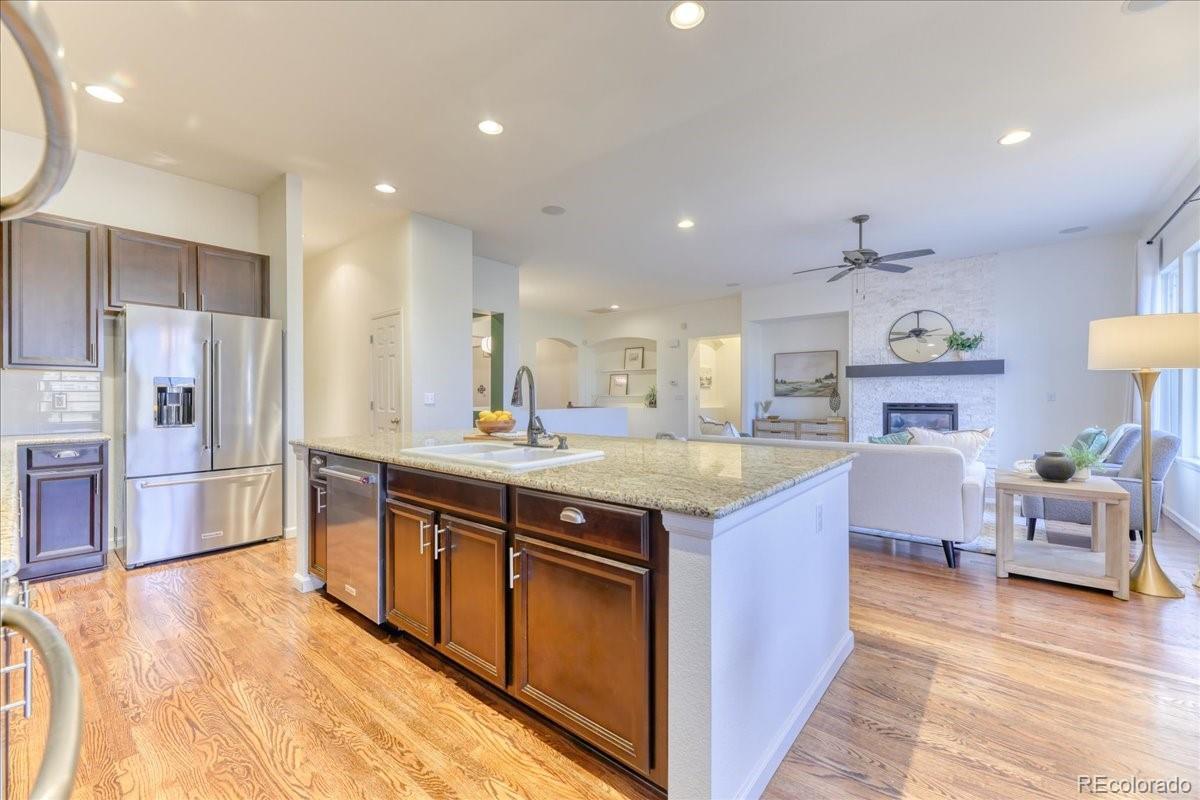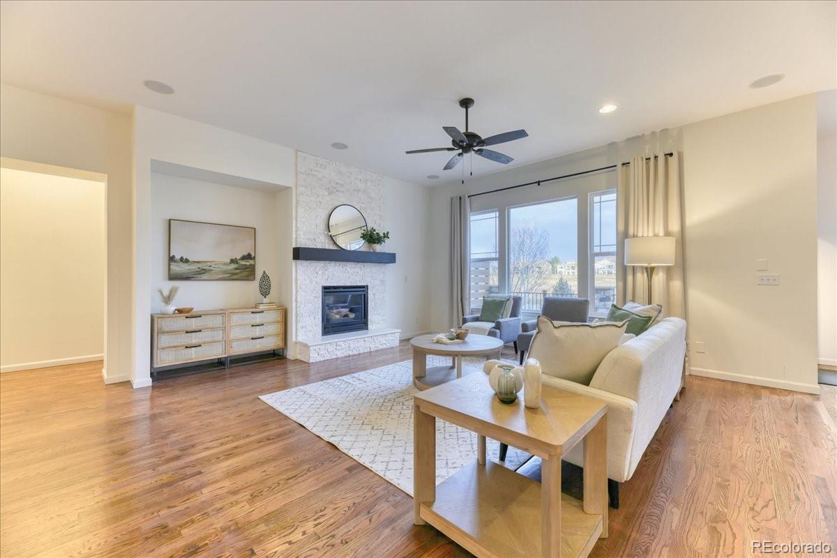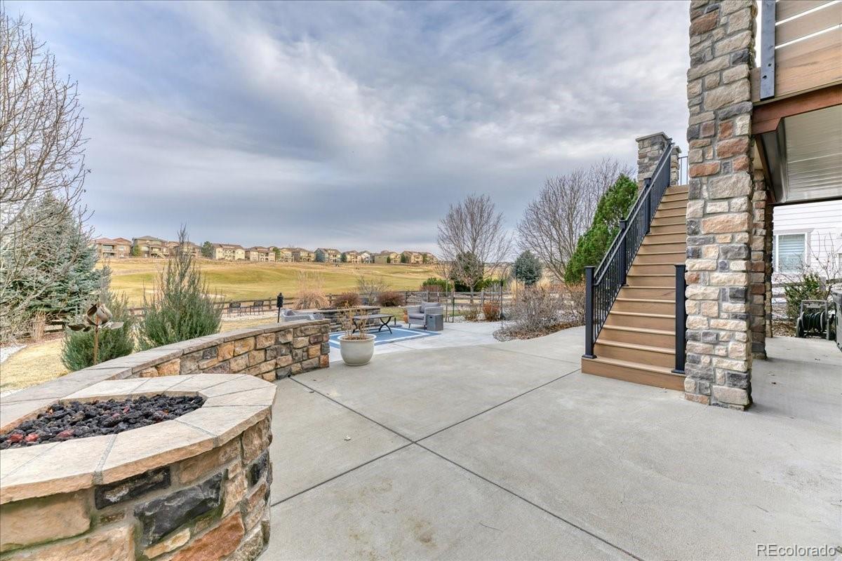 Stunning golf course ranch home that beautifully blends luxury, comfort, and exceptional design. Situated on a large lot in one of Erie’s most desirable neighborhoods, this impressive 4-bedroom, 4-bathroom residence offers 4,207 square feet of refined living space. The main level welcomes you with a great room featuring a beautiful fireplace that anchors the space and creates a warm, inviting atmosphere. The back windows offering spectacular views of the golf course. The gourmet kitchen boasts granite countertops, high-end appliances, a butler’s pantry, and a spacious pantry. A formal dining room provides the perfect setting for hosting elegant gatherings, while the main level also includes a private study, guest bedroom, and full bathroom. The luxurious primary suite is conveniently located on the main level and features a designer tray ceiling, a spacious five-piece en suite, and a walk-in closet. Additional main-level bedrooms offer flexibility for guests for family. Step outside to the expansive deck just off the kitchen, where panoramic views. The finished walk-out basement is a dream! The expansive recreation room features an fireplace with ambient lighting, creating a cozy and welcoming environment. A dedicated room, gym perhaps, offers a great space with endless options. The lower level also includes additional bedrooms, bathrooms, ample storage, and flexible living space. The backyard is truly spectacular. Professionally designed, it offers an oversized patio, fully irrigated planters, and a tranquil covered patio with hot tub that creates a serene outdoor oasis. TWO large gas firepits offer the perfect setting for cozy evenings, all while backing directly to the golf course. Additional highlights include a three-car garage and numerous updates throughout—making this an exceptional opportunity for luxury ranch-style golf course living.
