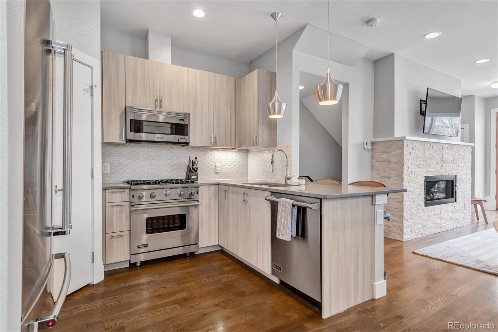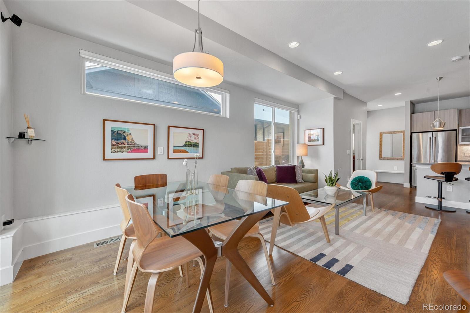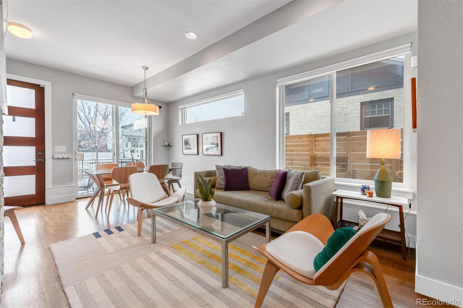 MOVE-IN READY to this FULLY FURNISHED townhome in the heart of Cherry Creek North! This immaculate 4-bedroom, 5-bath paired home offers nearly 2,000 square feet of thoughtfully designed living space across four levels. Contemporary architecture meets warm, inviting interiors with rich hardwood floors and clean, modern lines throughout. The main level features an open floorplan ideal for both everyday living and entertaining, complete with a stacked-stone gas fireplace, spacious dining area, and a chef’s kitchen outfitted with sleek cabinetry, pantry storage, and premium Viking and KitchenAid stainless steel appliances. A powder room and mudroom with additional storage provide convenience and direct access to the garage. Upstairs, the light-filled primary suite offers a private retreat with dual sinks and beautiful tile work. An additional en suite bedroom and laundry room complete the second level. The third floor includes a sun-drenched (non-conforming) bedroom ideal for a home office or studio, an additional bath, and access to the stunning rooftop deck—perfect for sunset views over the city skyline and Rocky Mountains. The finished basement expands the living space with a media/family room, private bedroom with Murphy bed, walk-in closet, and an additional full bath. Motorized shades throughout add modern comfort and ease. Low-maintenance and lock-and-leave, this home is perfectly positioned on tree-lined Madison Street just moments from Cherry Creek’s premier dining, shopping, and fitness destinations. Tenant is responsible for all utilities.