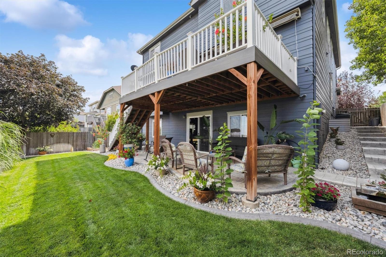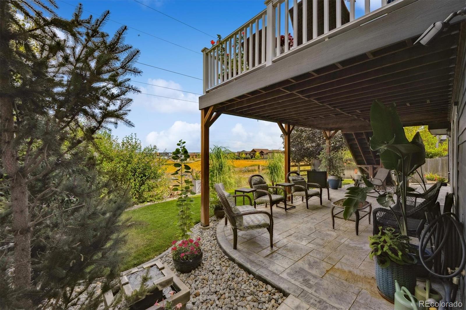 Welcome to your own private sanctuary, perfectly nestled in one of the area’s most peaceful yet convenient neighborhoods. From the moment you step into the backyard, you’ll feel the serenity — a lush greenbelt unfolds behind you, offering unmatched privacy, quiet, and effortless access to meandering trails. Imagine sipping morning coffee on the elevated deck as the sun rises, enjoying al fresco dinners on the patio, or unwinding on the charming front porch as the evening breeze drifts by. With staggered home placement, mature trees, and colorful flowering bushes, this low-maintenance yard feels like your own hidden garden retreat — complete with a sprinkler system for easy care. Inside, the heart of the home is the expansive kitchen, a dream for any home chef with abundant cabinetry, a generous pantry, and space to create and gather. The bright, open layout flows beautifully, while the versatile loft can become your cozy TV lounge, productive home office, or lively game room. Most bedrooms boast walk-in closets, and the spacious primary suite is a true retreat — featuring a welcoming sitting area with a fireplace, perfect for curling up with a book or simply relaxing after a long day. The walk-out basement is a blank canvas, ready for your imagination, already equipped with 220 power, a workshop wall brimming with outlets, and an encapsulated crawl space for extra storage. The oversized garage is a rare find, offering soaring ceilings, a heater, utility sink, and exceptional lighting — ideal for projects, hobbies, or simply keeping things organized. And while this home feels like a getaway, you’re only minutes from top-rated schools, golf courses, trails, the rec center, library, and highway access. This is more than a house — it’s a lifestyle, blending peaceful seclusion with everyday convenience. Don’t miss your chance to make this retreat your own!