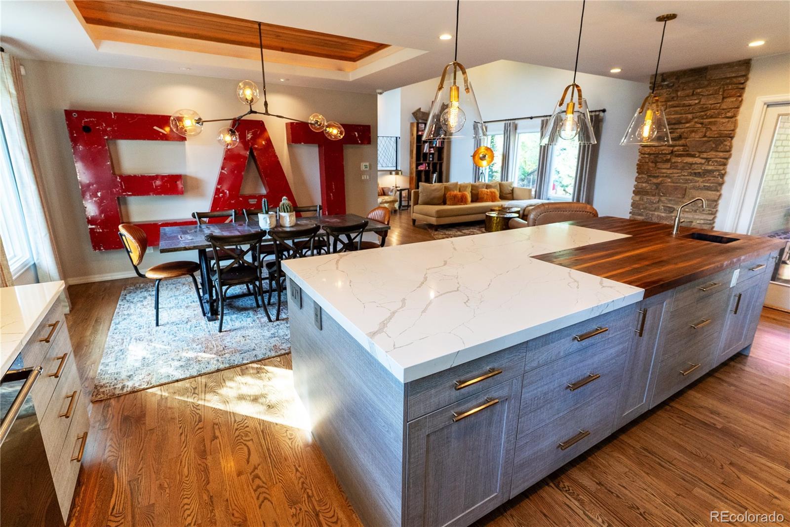 * SELLER OFFERING UP TO 1% RATE BUYDOWN* *MOVE-IN READY* Luxury living in the family neighborhood of Cherry Knolls. An Entertainer’s dream home! Stylishly renovated with elegant finishes and quality upgrades throughout. From the Kitchen meander through beautiful double patio doors to a multi-tiered flagstone patio with cozy private areas to entertain guests coupled with a lush, tiered lawn and beautiful landscaping. The built-in grill and chefs counter make outdoor cooking a breeze. The main level is an open floor plan concept which includes the dining area, living room with cathedral ceiling encased with wood ceiling and beams finished with a stacked stone fireplace. Refinished hardwood throughout most of the main and lower levels. Enjoy the comfort and ease of mind with modern updates, including newer windows and doors, a new combo Boiler/Hot Water Heater, Radon mitigation system, an energy efficient evaporative cooler, and a new class 4 Impact Resistant roof that will save you thousands in insurance. Venture to the upper level, where you will find three spare bedrooms, a shared ¾ bath, and a primary suite that feels like your own private retreat, including a full primary bath with an elegant soaking tub, ambient lighting, and an overhead shower. The lower level boasts a large family/TV room leading to a full finished basement with a large rec room, an office or extra room. Oversized garage with built-ins Located near Sandberg Elementary, Cherry Knolls Park, Dry Creek Trail, and just 5 minutes away from The Streets of SouthGlenn. This luxury 4 bedroom 3 bath designer home on an immaculate and beautifully landscaped 1/3 acre corner lot truly has it all! Highlights: • Incredible Curb Appeal • Amazing .29 Acre Corner Lot • Year Built 1965 • Fully remodeled 2019 & 2024 • Spacious Open Floor Concept • Open Dining area Casual Breakfast Bar • Total interior living 3,296 Sq. Ft. * All information herein is deemed reliable but should be independently verified
