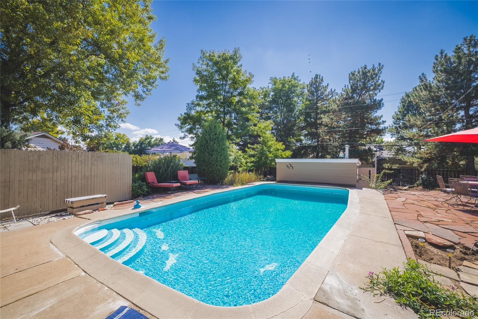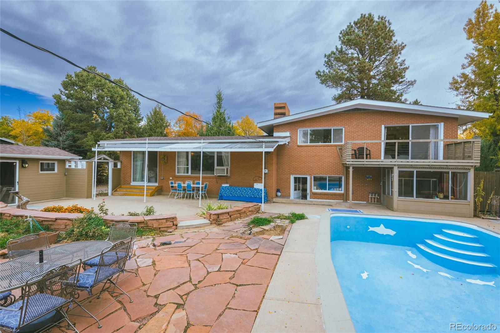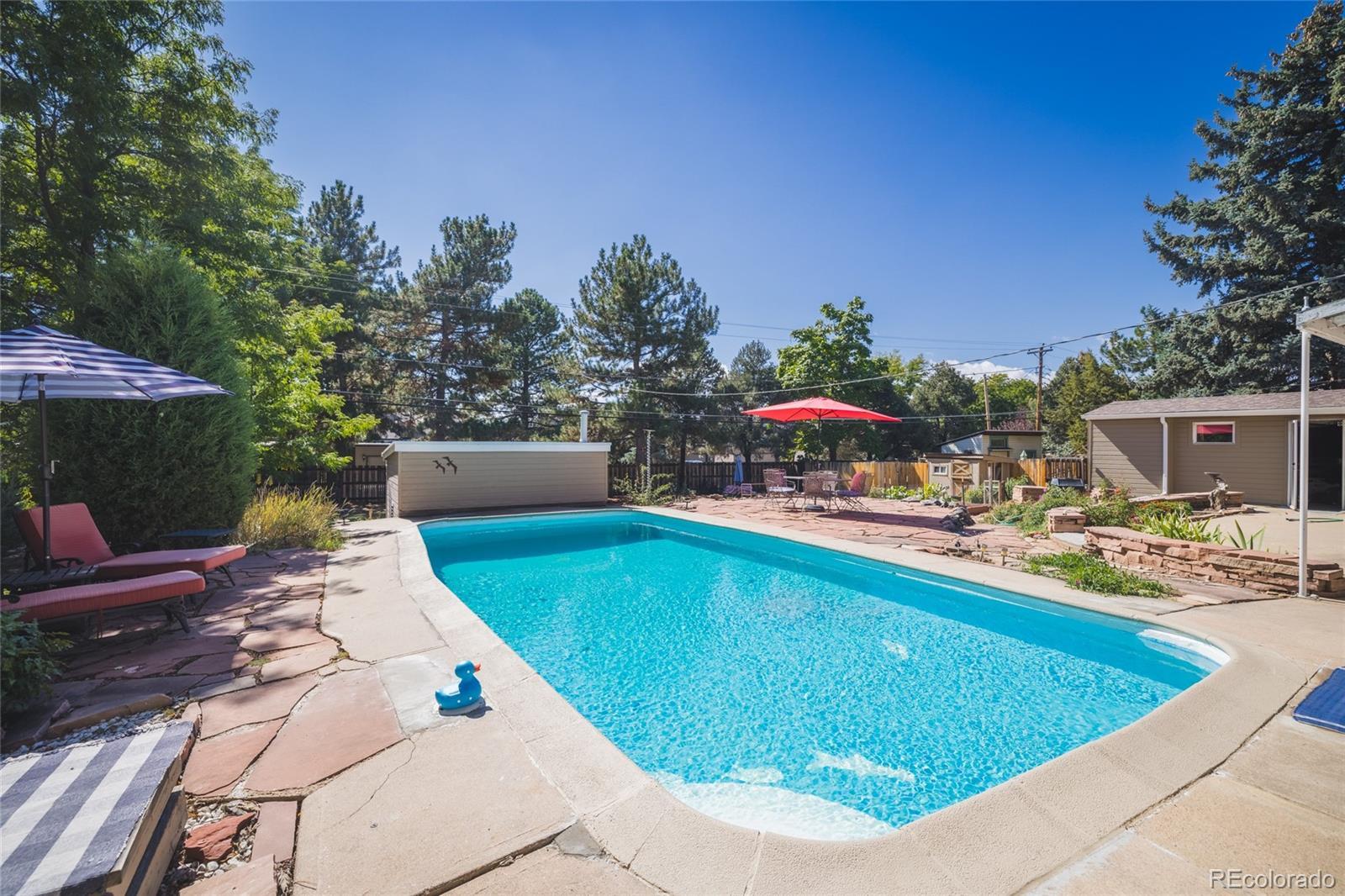 Nestled within one of Littleton’s most distinguished neighborhoods, 7332 West Stanford Avenue sits on an expansive 0.54-acre lot (23,914 square feet) in the quiet, tree-lined enclave of Lochmoor. Step inside to discover abundant natural light, vaulted ceilings with exposed beams, and the framework for your personal touches. The tri-level design and basement gives separation of space across more than 3,400 square feet. With five bedrooms and two baths, this classic 1957 mid-century brick home offers the perfect blend of vintage character and potential. On over a half-acre lot, this property delivers outdoor freedom within city limits — a beautifully landscaped backyard sanctuary featuring mature trees, a private pool, garden, golf putting green, spacious chicken coop, astroturf lawn, and an expansive flagstone patio for relaxing or entertaining, equipped with an exterior gas line for your grill or future expansion. The oversized garage and sheds offer ample storage. This home gives you access to the best of Littleton — located near highly rated schools, close to shopping, dining, and services, within an established and coveted community.