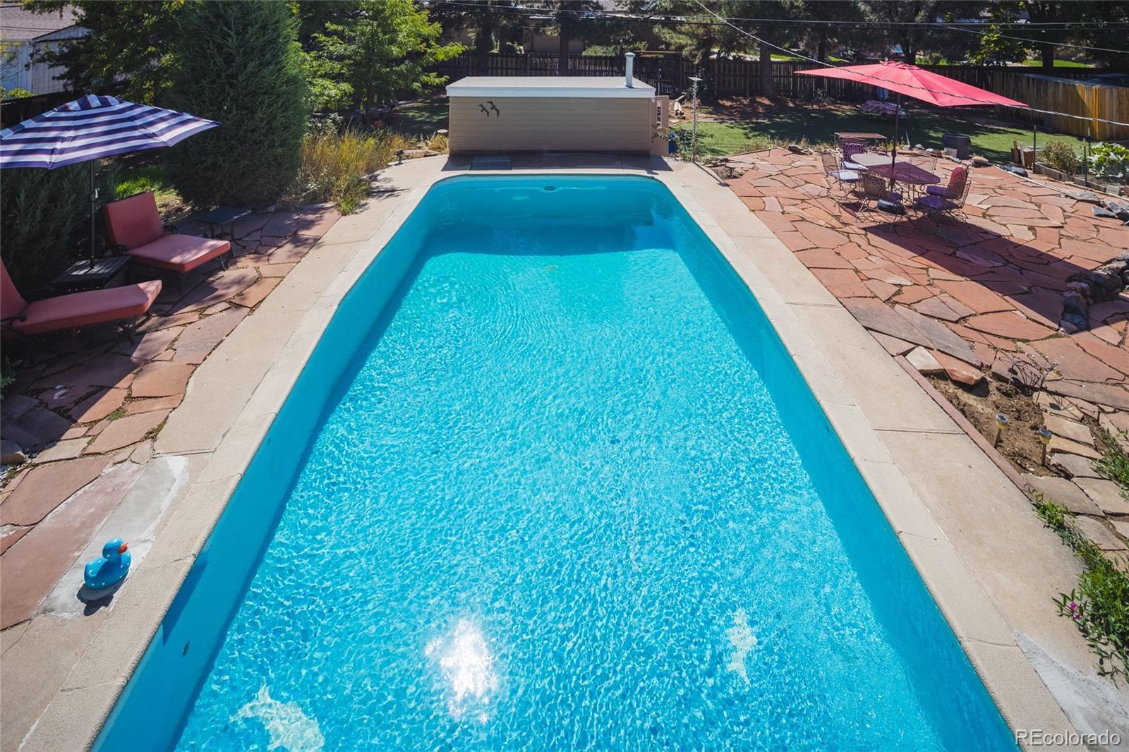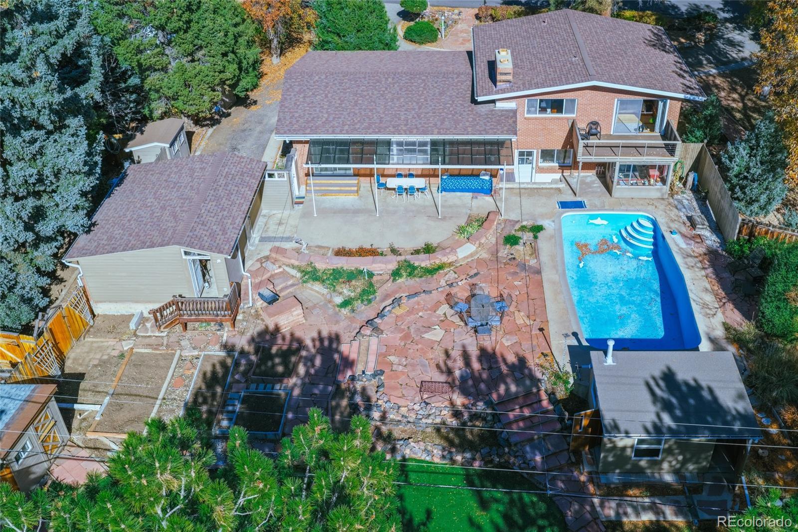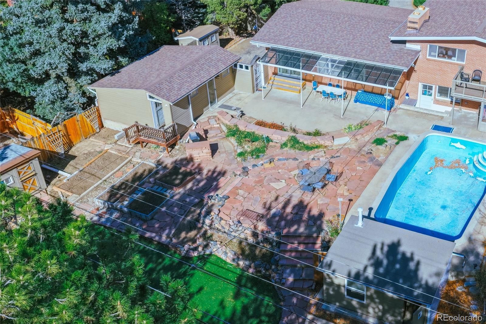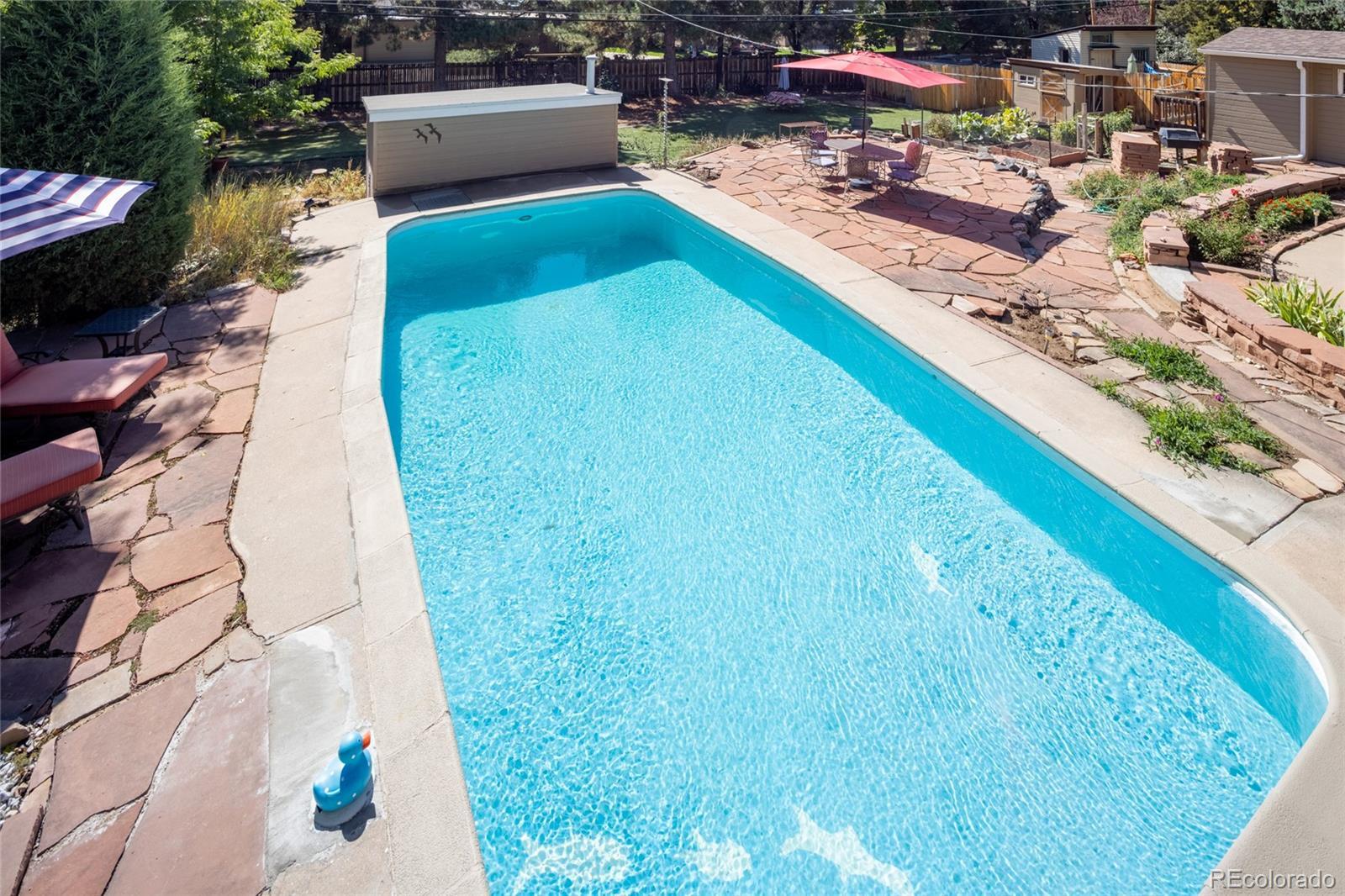 Nestled within one of Littleton’s most distinguished neighborhoods, 7332 West Stanford Avenue sits on an expansive 0.54-acre lot (23,914 square feet) in the quiet, tree-lined enclave of Lochmoor. Step inside to discover abundant natural light, vaulted ceilings with exposed beams, and the framework for your personal touches. The tri-level design and basement gives separation of space across more than 3,400 square feet. With five bedrooms and two baths, this classic 1957 mid-century brick home offers the perfect blend of vintage character and potential. On over a half-acre lot, this property delivers outdoor freedom within city limits — a beautifully landscaped backyard sanctuary featuring mature trees, a private pool, garden, golf putting green, spacious chicken coop, astroturf lawn, and an expansive flagstone patio for relaxing or entertaining, equipped with an exterior gas line for your grill or future expansion. The oversized garage and sheds offer ample storage. This home gives you access to the best of Littleton — located near highly rated schools, close to shopping, dining, and services, within an established and coveted community.
