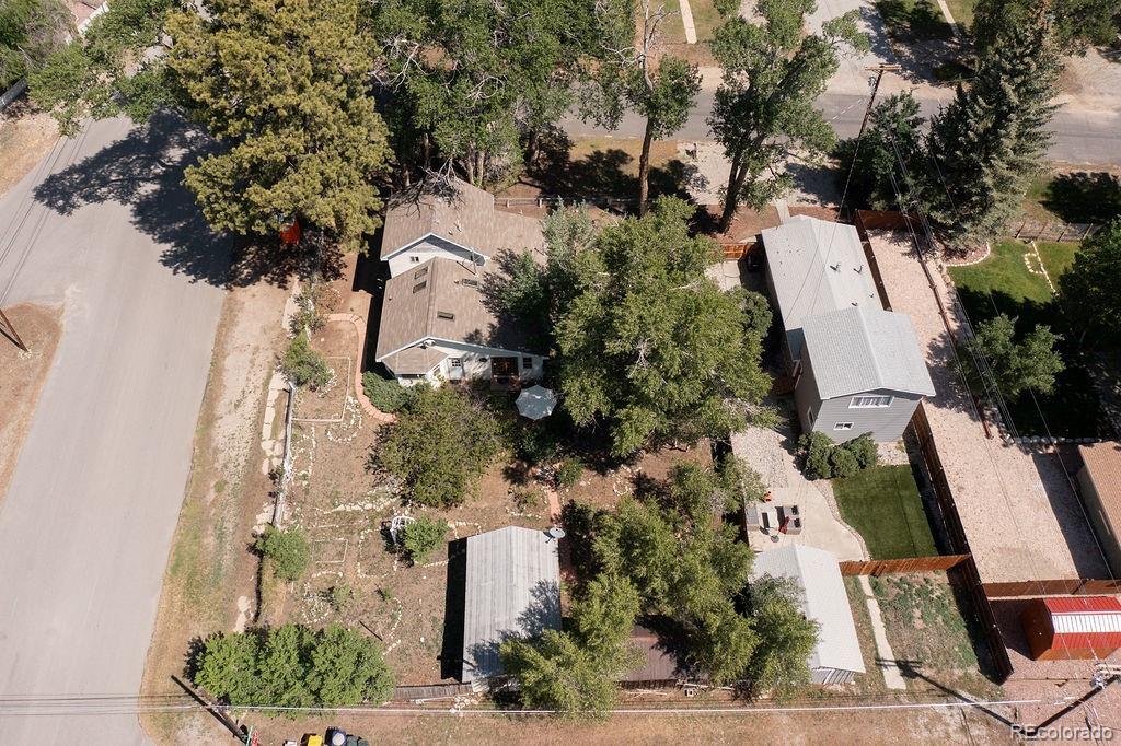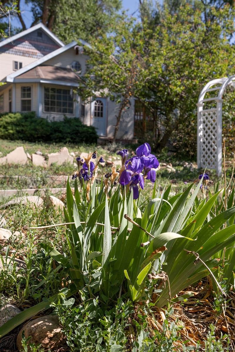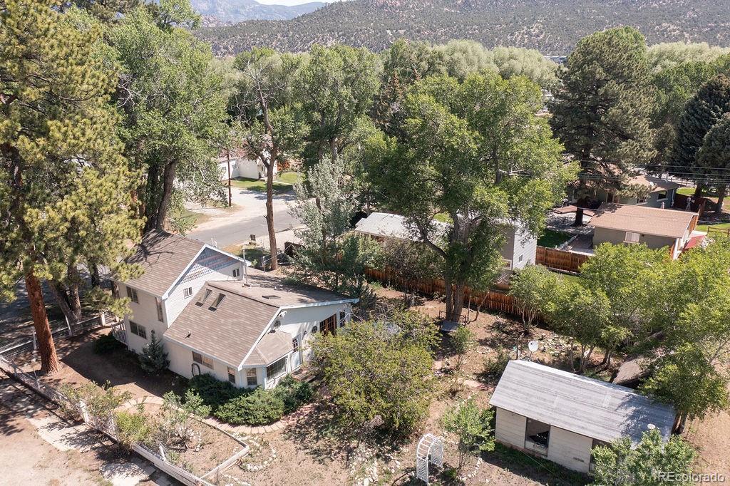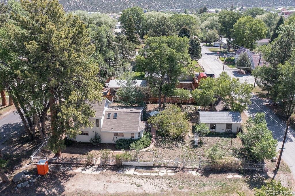 This charming Victorian Style home was lovingly recreated from the original house that was on this property. It is located on an oversized, corner lot with a fenced in yard. Situated in a historic neighborhood, there is easy walking/biking access to the Post Office, shopping, river, park, library and downtown BV. Walk up the steps through the beautiful front door into a space filled with natural light - from custom windows and skylights throughout the home. There is a bay window in the living room, and the gorgeous hardwood floors have recently been refinished. There is new flooring in the sunny kitchen, and the main floor full bathroom was remodeled in 2024; some painting has been done as well. The room off the living room also has hardwood floors, and has been used as a bedroom and a library/office. The large main bedroom has French doors that open out unto the back yard/patio area. The kitchen is spacious and filled with light and has many cupboards and an island; there is a bay alcove for the dining room table and the washer/dryer is tucked into an accessible closet. Upstairs is another bedroom and full bath. With a little TLC, this home will become the perfect place for living and entertaining for family and friends! The property itself is on 3+ city lots for a total of .21 acres. There are 2 additional structures; the "Cabi" and a storage shed. The "Cabi" is a converted garage that has been used for flexible space; with possibilities for an art studio, workshop, home office or craft space. The historic shed is perfect to stow all your outdoor toys and garden supplies. The property is completely fenced with a brick-paver walkways around the backyard and garden areas. Much effort and care was taken by the Seller in planning and planting a lovely backyard getaway. Nestled in a quiet residential area, this is the perfect place for you to create your own dream home with access to all that Buena Vista and Chaffee County have to offer!