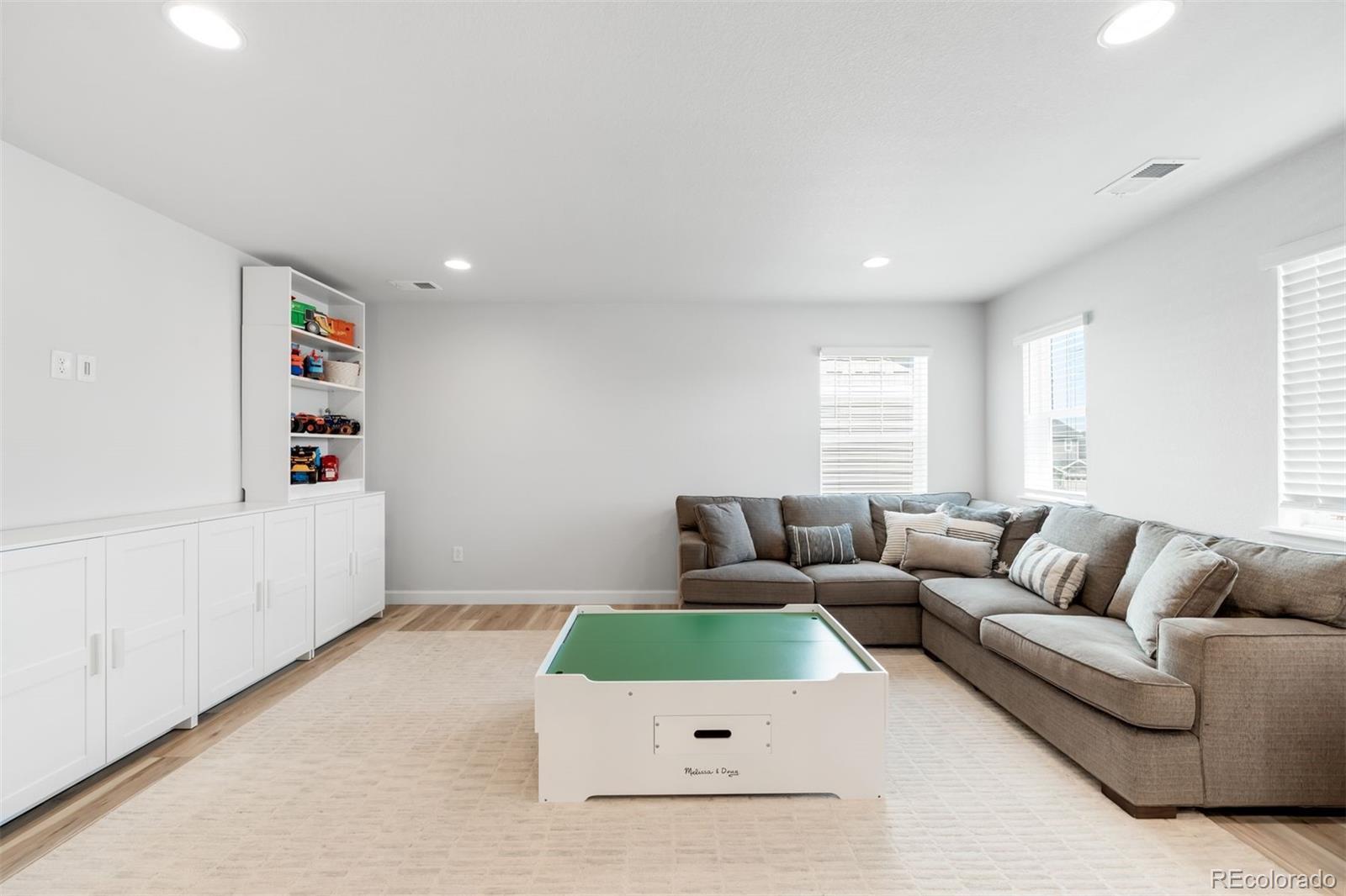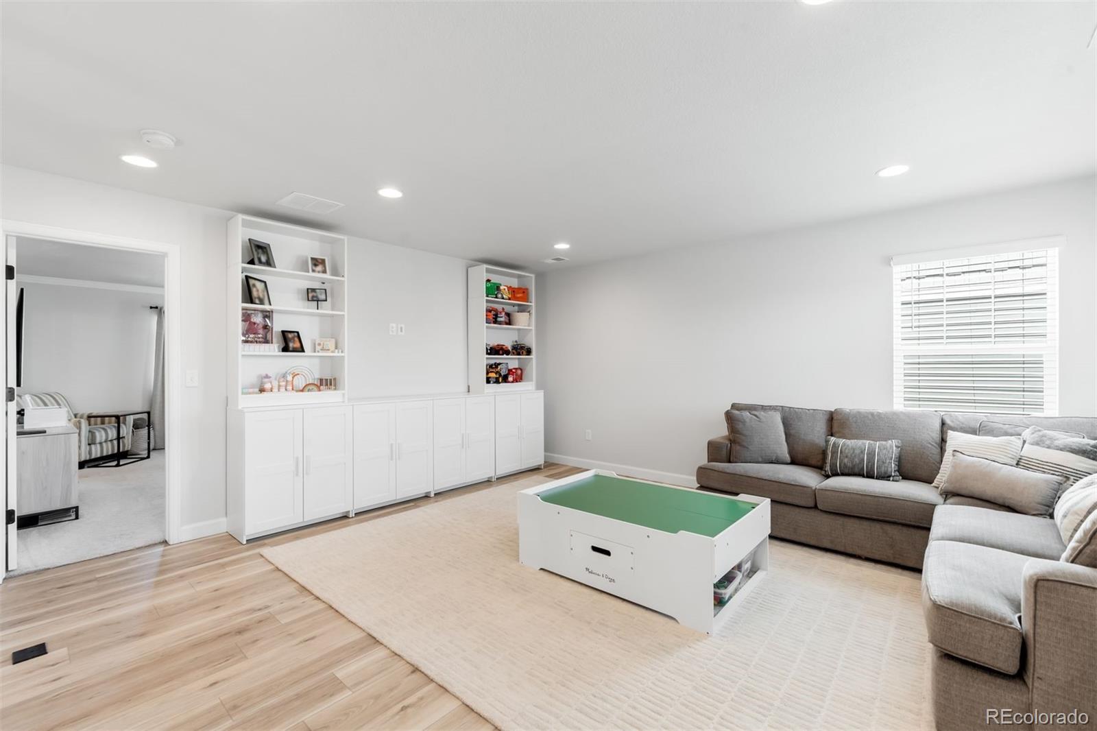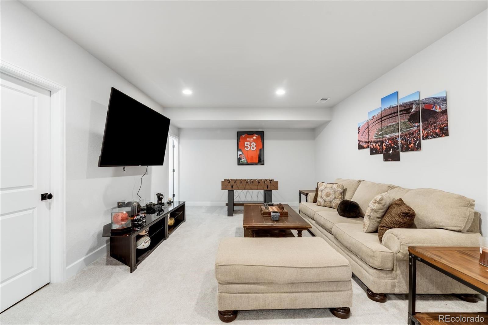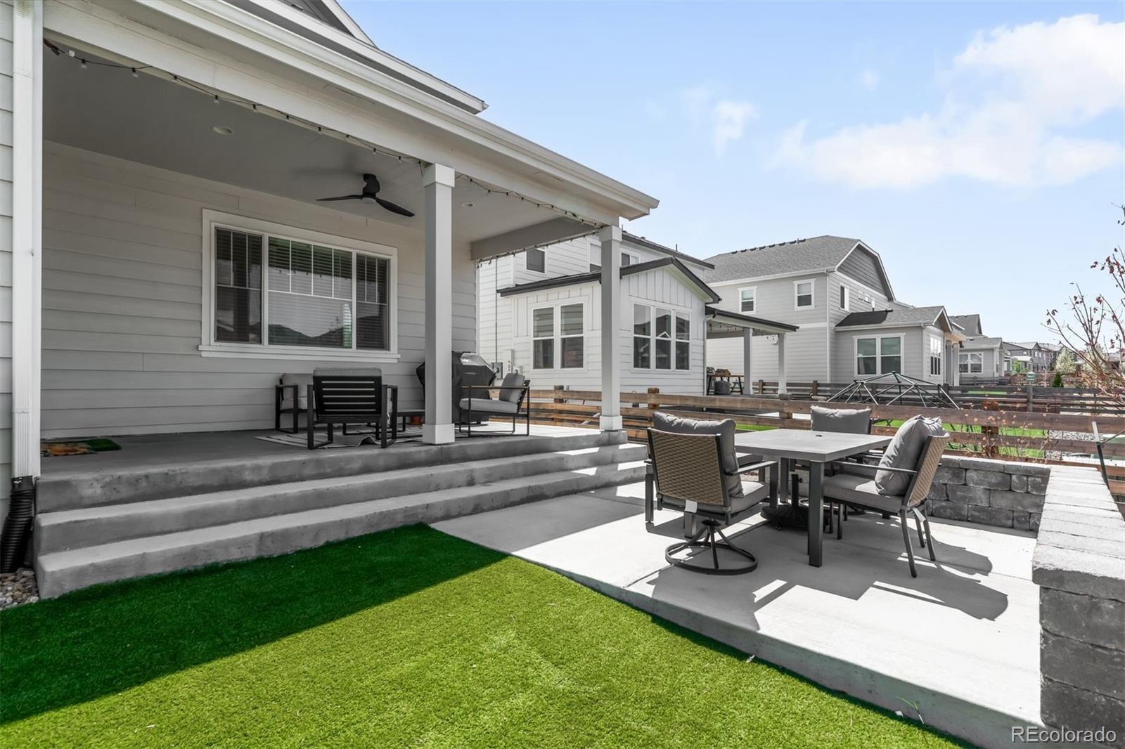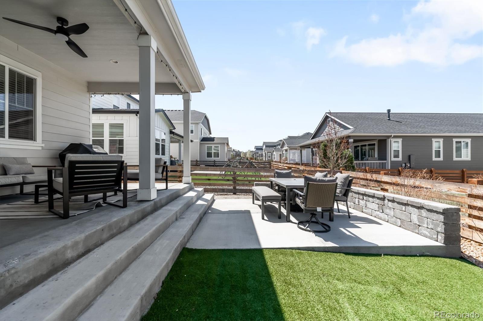 *HOME WARRANTY TO BE PROVIDED* Welcome to a thoughtfully curated custom home that captures the essence of elevated living in Colliers Hill. Upgraded top to bottom with a designer’s eye, this home is a showcase of intentional elegance and modern comfort. Close to schools, I-25/E-470, dining and trails.On the main level, rich upgraded flooring guides you through an open-concept layout where functionality meets style. The formal dining room has been cleverly reimagined as a vibrant kids’ play area, while a bright and stylish breakfast nook serves as the home’s everyday dining space. The chef’s kitchen, enhanced with high-end finishes—including soft-close cabinets—anchors the space with both form and function, flowing effortlessly into the spacious family room. The main-level office, which can also serve as a bedroom, provides flexibility to suit your lifestyle. A custom patio, conveniently located just outside the breakfast nook, leads to the backyard oasis with recently added turf. Upstairs, the primary suite is a serene sanctuary with custom-designed closets and a spa-inspired ensuite bath. Three additional bedrooms, two full bathrooms, and a conveniently located laundry room ensure comfort and ease for daily routines. A loft adds even more versatility to the upper level, offering a perfect space for relaxation, a reading nook, or additional living space.The recently finished basement offers yet another layer of living with a large lounge-style living room, a private guest bedroom, a full bath, and a dedicated gym area designed for wellness at home. Outdoors, a professionally designed backyard oasis awaits—featuring low-maintenance turf, a custom patio, and thoughtful landscaping that elevates your outdoor experience year-round. Framed by upgraded windows and finished with sophisticated attention to detail, this home embodies elevated Colorado living with spaces that adapt as beautifully as they inspire.