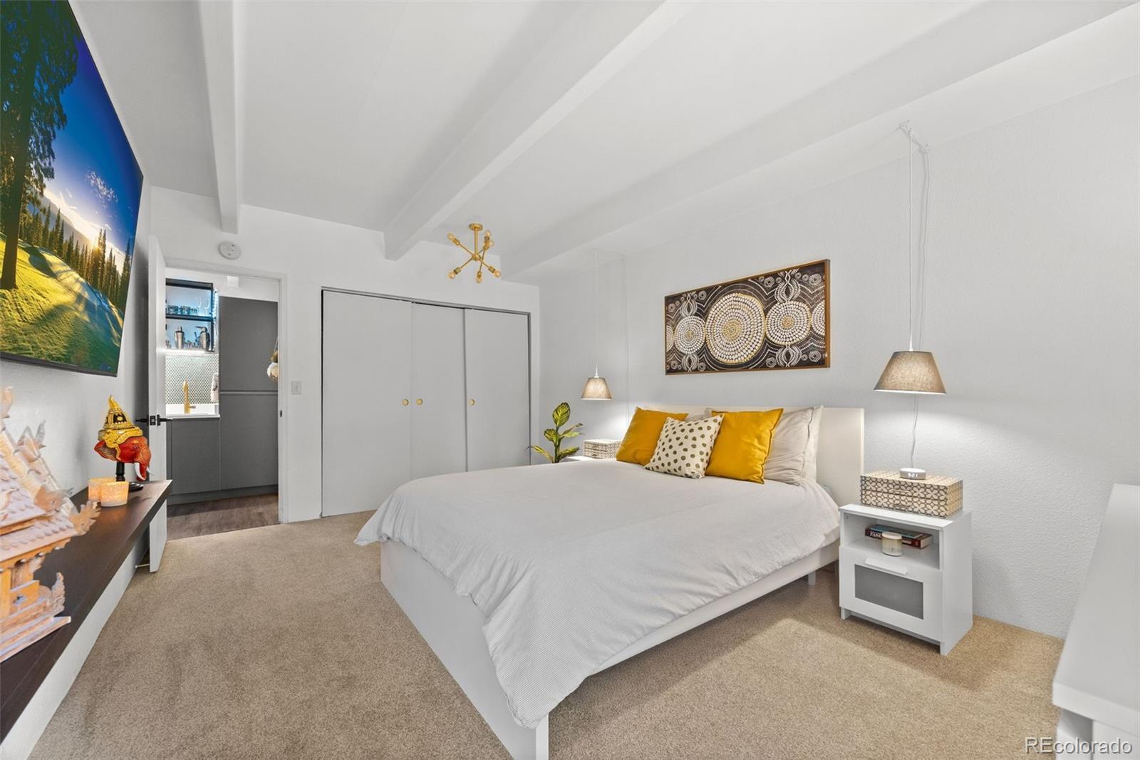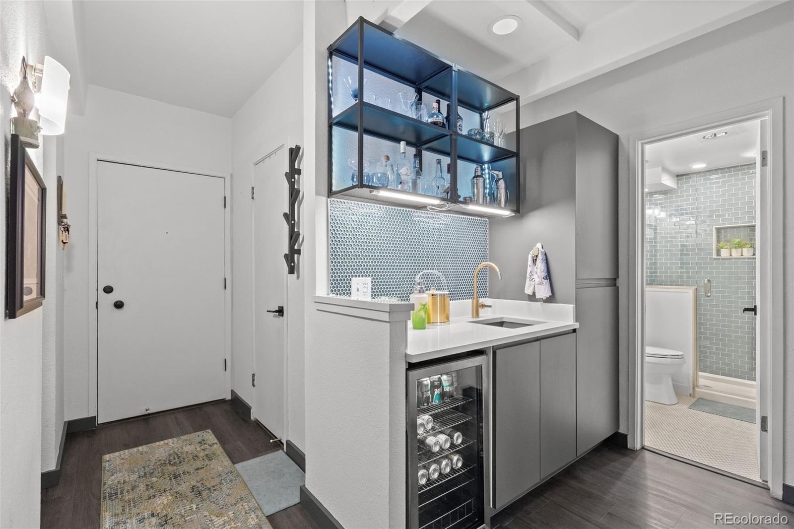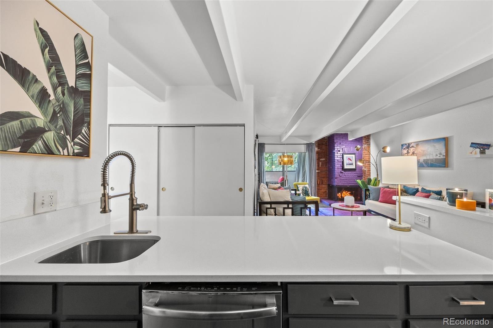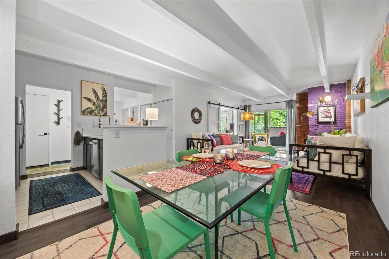Stylish Urban Living in the Heart of Bonnie Brae. Welcome to the House of Rothschild, an intimate, 38-residence condominium community nestled in one of Denver’s most beloved neighborhoods. Perfectly positioned between Washington Park, Cherry Creek, South Gaylord, and the charm of Bonnie Brae, this location offers walkability, culture, and convenience at your doorstep. Inside this thoughtfully reimagined condo, classic design meets modern sophistication. The owner has opened up the floor plan to create seamless flow between the kitchen, dining, and living spaces, perfect for entertaining or quiet nights in. The kitchen is beautifully updated with sleek finishes and a contemporary aesthetic. Stylish wet bar featuring a beverage refrigerator and statement penny tile backsplash. Additional upgrades include new flooring, modern built-ins in the dining area, barn doors between the second bedroom and living room that add both function and flair. The spacious living room centers around a cozy fireplace, leading to an expansive, enclosed sunroom that adds substantial 3 season flex space, ideal as a home office, reading lounge, or creative studio. Dual bedrooms offer privacy and comfort, each with generous closet space. The building offers exceptional amenities: year-round indoor pool, hot tub, fitness center, game room, clubhouse with kitchenette, hobby room, bicycle storage, and a secure underground garage with reserved parking and additional storage. With all utilities except electricity included in the HOA and laundry just steps from your door, every detail has been designed for ease. Whether you're strolling to Bonnie Brae Ice Cream, enjoying a bike ride through Wash Park, or shopping in Cherry Creek, this is Denver living at its best