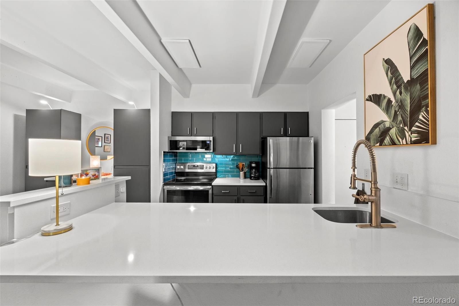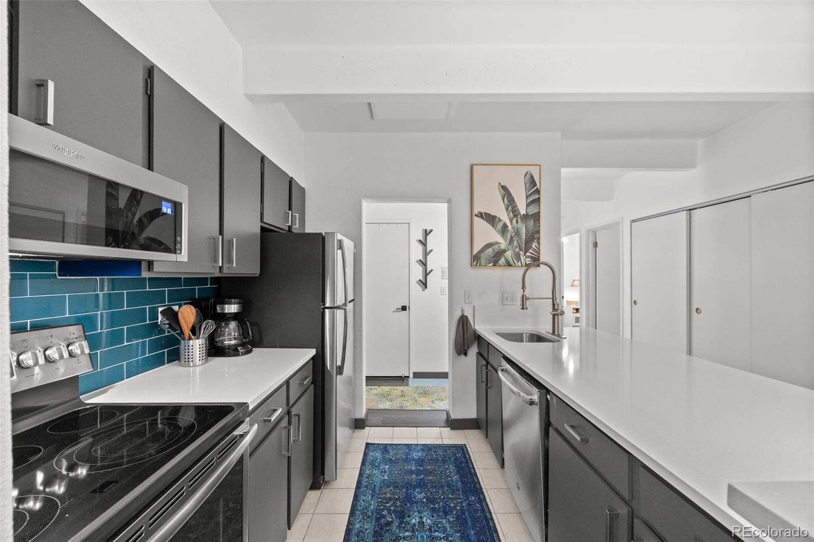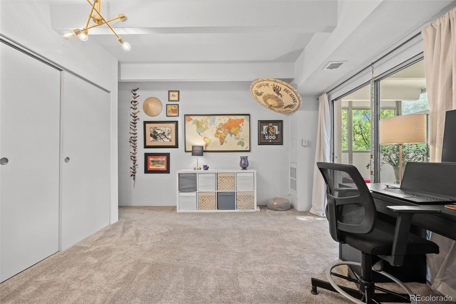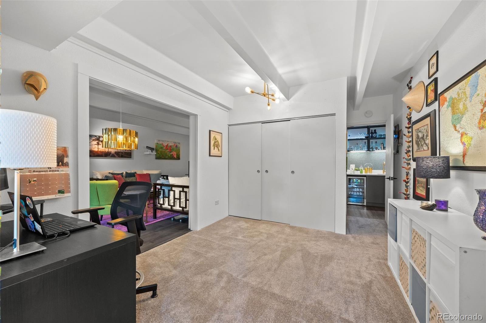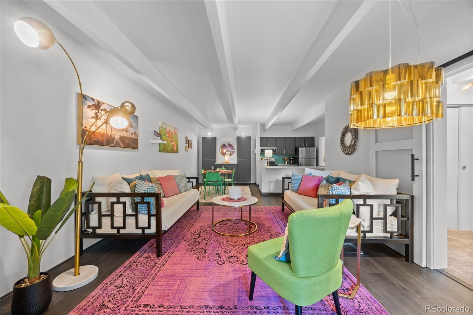 Stylish Urban Living in the Heart of Bonnie Brae. Welcome to the House of Rothschild, an intimate, 38-residence condominium community nestled in one of Denver’s most beloved neighborhoods. Perfectly positioned between Washington Park, Cherry Creek, South Gaylord, and the charm of Bonnie Brae, this location offers walkability, culture, and convenience at your doorstep. Inside this thoughtfully reimagined condo, classic design meets modern sophistication. The owner has opened up the floor plan to create seamless flow between the kitchen, dining, and living spaces, perfect for entertaining or quiet nights in. The kitchen is beautifully updated with sleek finishes and a contemporary aesthetic. Stylish wet bar featuring a beverage refrigerator and statement penny tile backsplash. Additional upgrades include new flooring, modern built-ins in the dining area, barn doors between the second bedroom and living room that add both function and flair. The spacious living room centers around a cozy fireplace, leading to an expansive, enclosed sunroom that adds substantial 3 season flex space, ideal as a home office, reading lounge, or creative studio. Dual bedrooms offer privacy and comfort, each with generous closet space. The building offers exceptional amenities: year-round indoor pool, hot tub, fitness center, game room, clubhouse with kitchenette, hobby room, bicycle storage, and a secure underground garage with reserved parking and additional storage. With all utilities except electricity included in the HOA and laundry just steps from your door, every detail has been designed for ease. Whether you're strolling to Bonnie Brae Ice Cream, enjoying a bike ride through Wash Park, or shopping in Cherry Creek, this is Denver living at its best