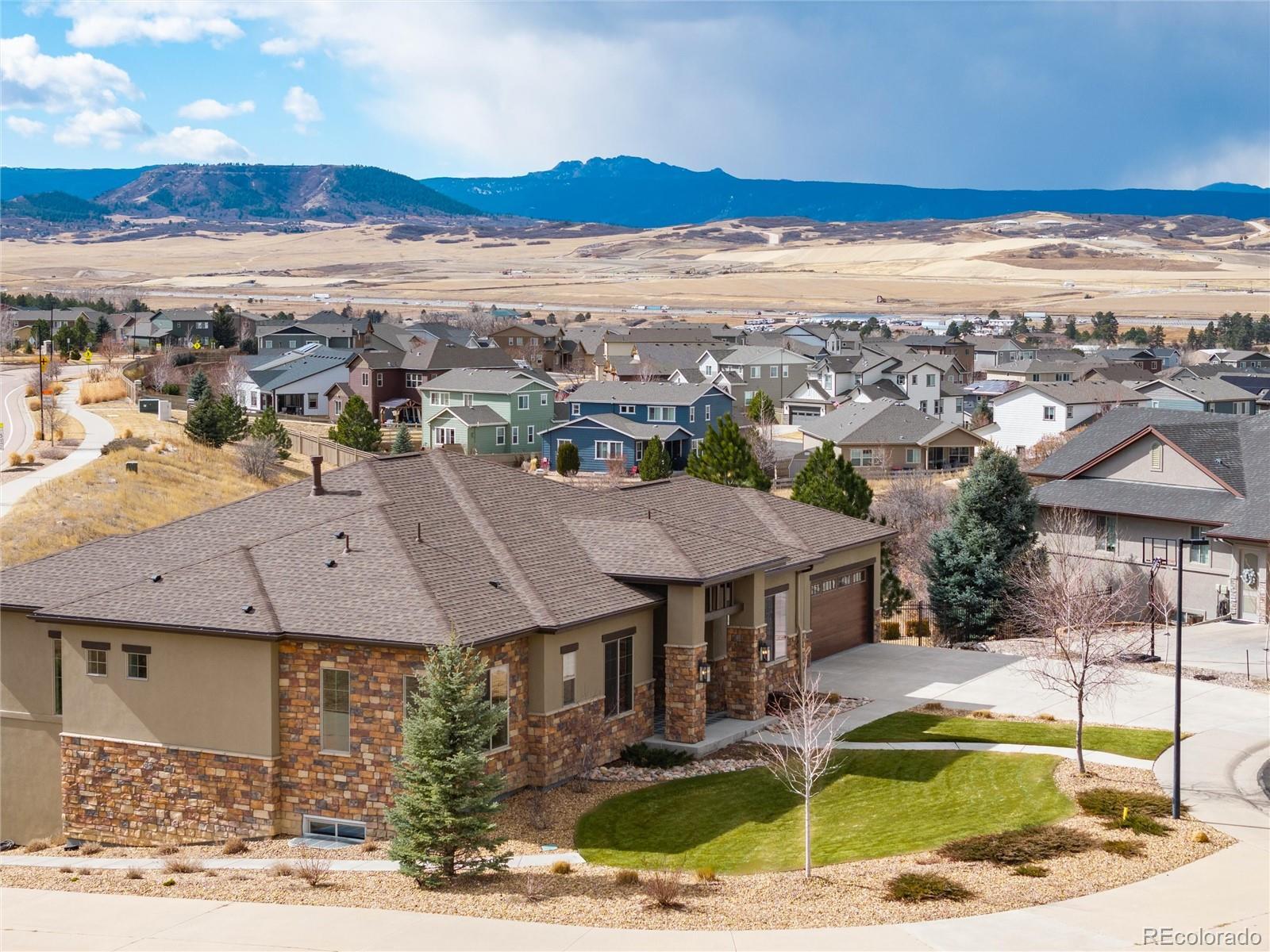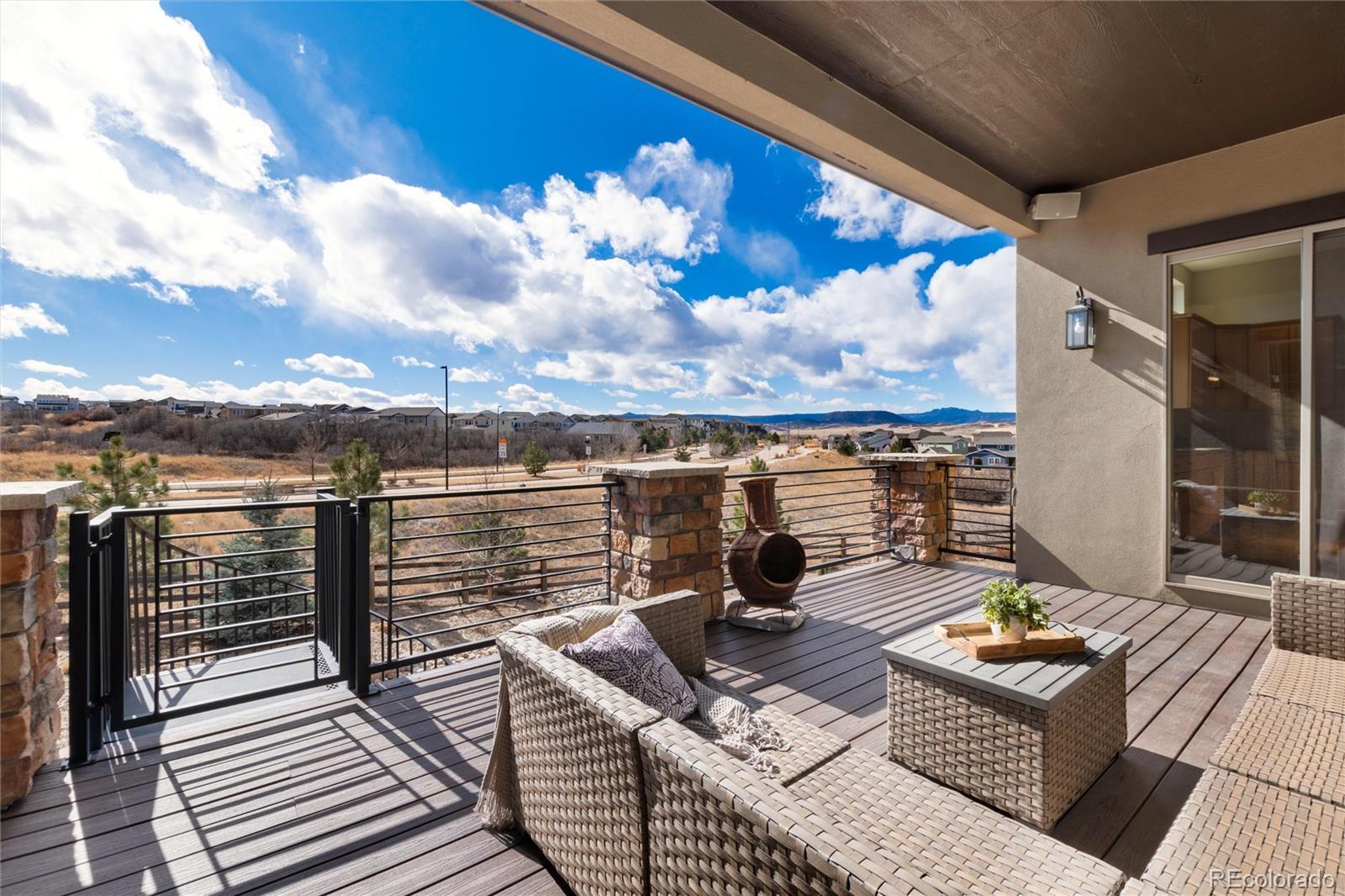 Welcome to Plum Creek in Castle Rock, where Colorado beauty meets elevated living. Perfectly situated on nearly a half acre at the end of a private cul de sac, this custom-built home has sweeping views of Devil’s Head and Quarry Mesa - a breathtaking backdrop from sunrise to sunset. With a brand new Class-4 roof and fresh exterior and interior paint, this home is move-in ready! Upon entry, you’ll appreciate the refinished hardwood floors, soaring 10’ ceilings, 8’ doors, and an open floorplan designed for both everyday living and entertaining. Expansive windows in the living room frame the views, while a welcoming fireplace and modern stair railing add clean architectural detail. The functional kitchen features upgraded Bosch appliances, ample prep space, a walk-in pantry and seamless flow to the covered Trex deck for a la cart dining or into the dining and living areas. You'll love the private primary suite with access to the upper deck - the perfect place to enjoy morning coffee or unwind in the evening while taking in the views. Your sanctuary extends into the primary bath with an upgraded freestanding tub to soak your cares away. With six bedrooms and four bathrooms, there’s flexibility for guests, work-from-home needs, or multigenerational living. The expansive finished walk-out basement adds versatility, featuring two additional bedrooms, a huge rec room, dedicated game area, theater or exercise room, and an entertainer's wet bar with new appliances - ideal for hosting or fun family nights. Step outside to professional landscaping and enjoy the views from your newer hot tub (negotiable). An oversized 3-car garage offers plenty of room for vehicles and gear, and with NO HOA, you’ll appreciate the money saved! Located minutes from outdoor recreation and activities including Plum Creek Golf Club, Rhyolite Bike Park, Quarry Mesa Open Space trails, Philip S. Miller Park and amphitheater, outlet shopping, and the charming Historic Downtown Castle Rock!