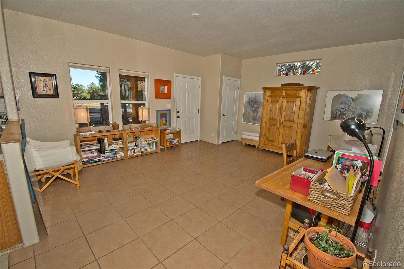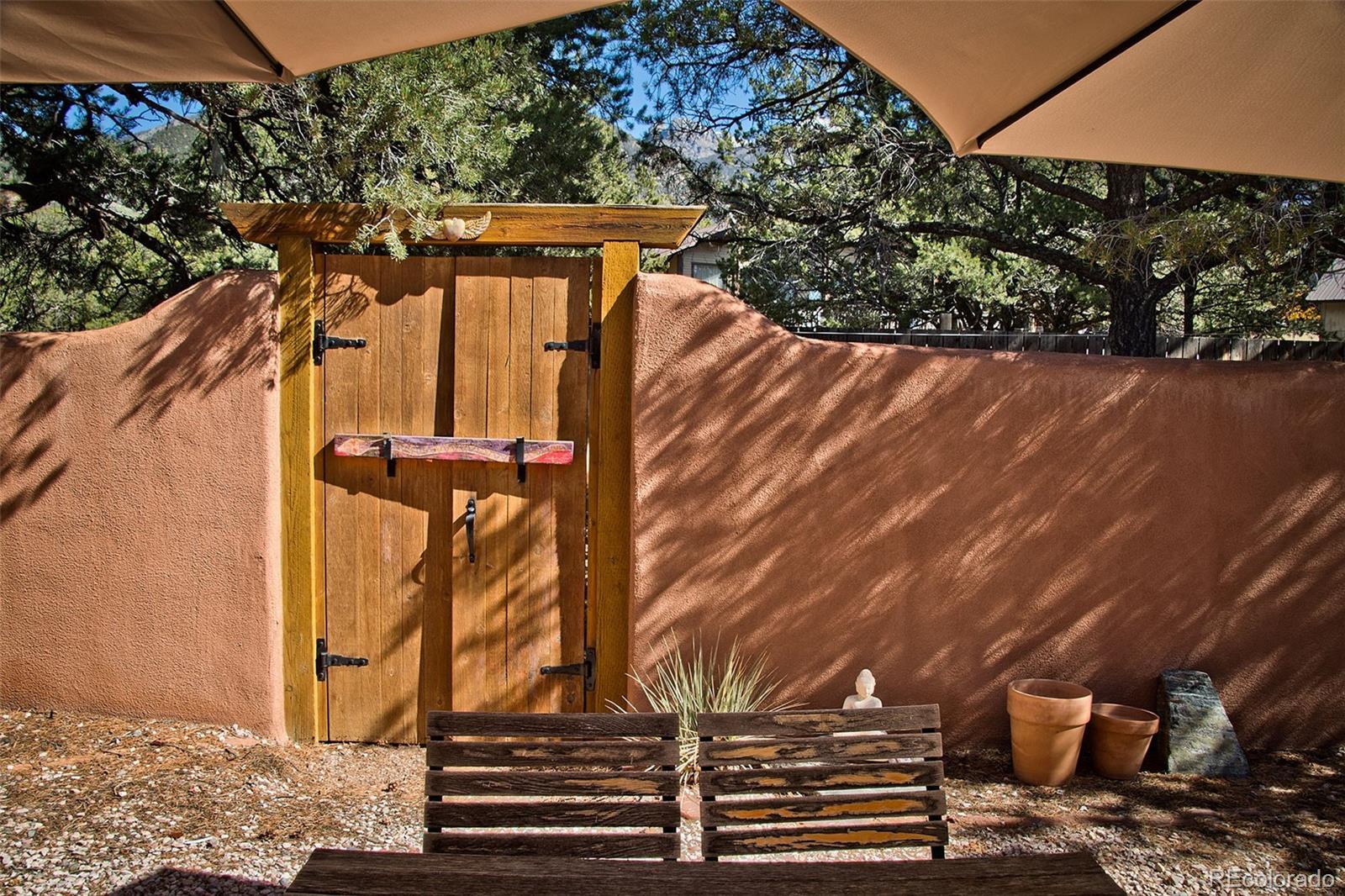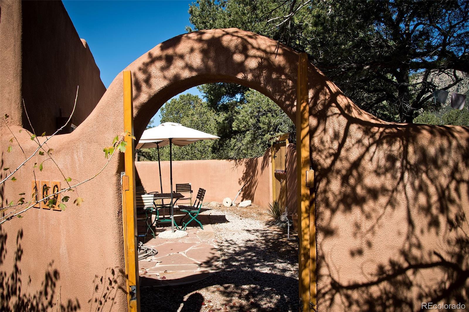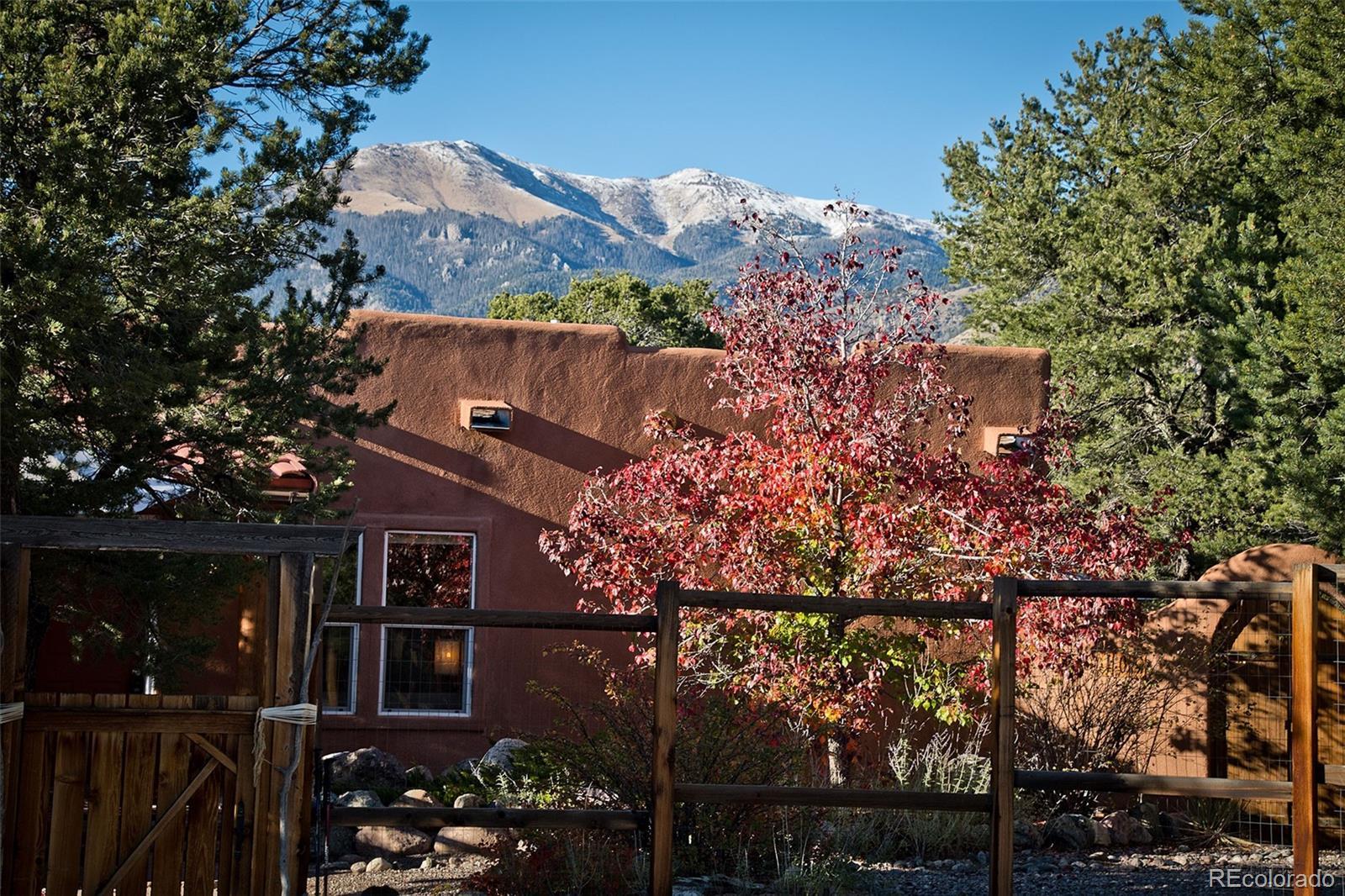 This home blends comfort, ease, and a sense of community, with its easy walk or bike to town, cozy cul-de-sac neighborhood, and serene treed lot. Inside you walk into a warm interior open floor plan , with sliding doors from the kitchen, to a fenced, landscaped patio area to enjoy morning coffee, or quiet sunsets. This 2 bedroom 2 bath home is a nice size for the retiree who doesn't want a large home to maintain. The popular SW style of this home, gives it a quaint exterior, with a peaceful oasis in the fenced front and side garden. The inspiring landscape invites you to explore the vegetation, and reading or meditation spaces. This is a Dark Sky Community so the stars will amaze you at night. There are several healing hot springs in the area, the community is known for the quiet lifestyle. The Town of Crestone has several grocery stores, bank, restaurants, and quaint shops. There is a newly paved sidewalk to town nearby. This community has all underground utilities, high speed internet, well maintained roads, free golf and tennis to members, and parks within walking distance.