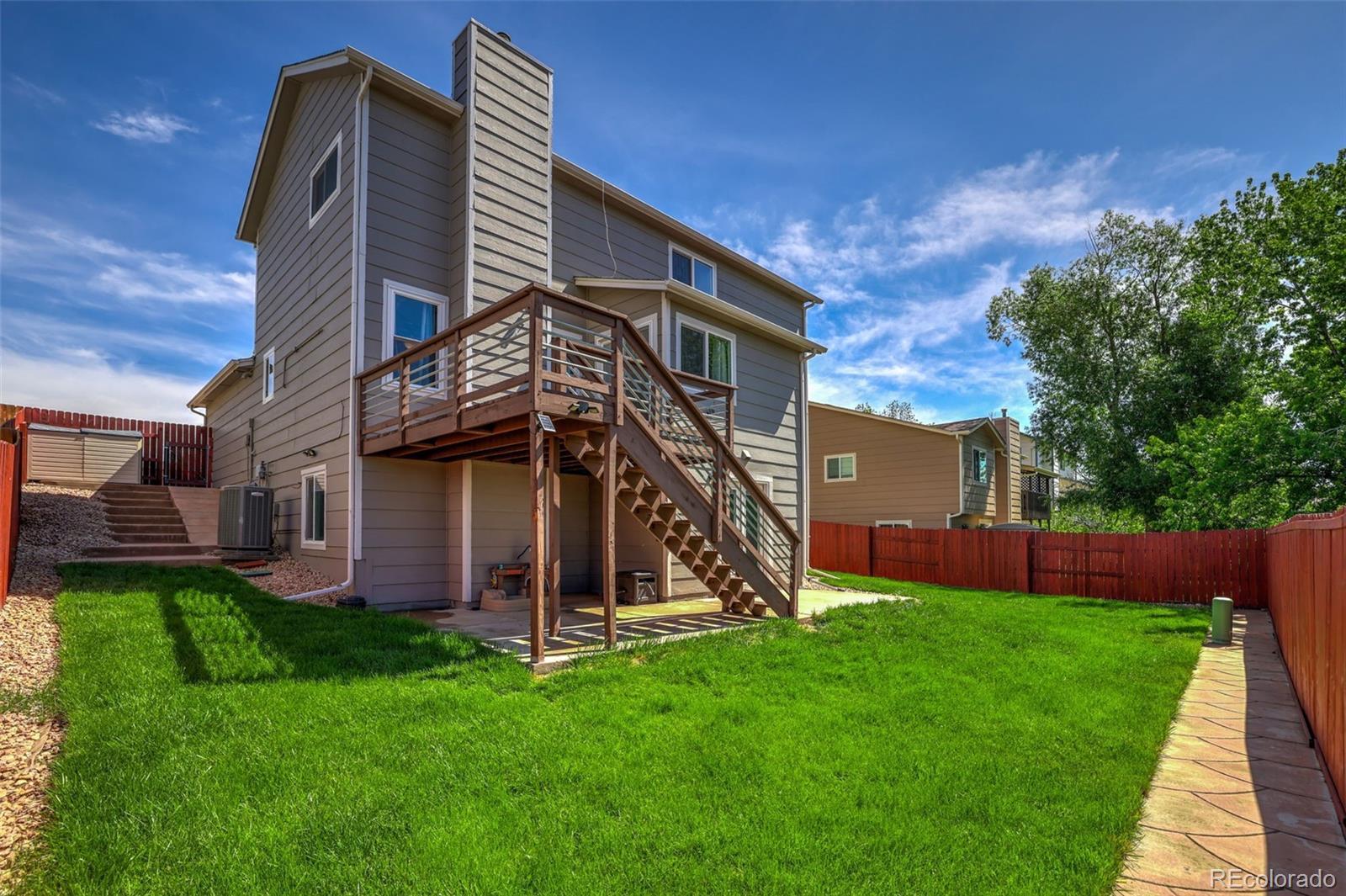 5 Bedroom, three level house in Fountain Valley Ranch. The main level features the living room, formal dining room, kitchen, and family room with a gas fireplace. The kitchen also has granite counters, great storage space, a gas range, large center island, eat in area, and it opens onto the deck. Upstairs hosts three bedrooms including the master which features a walk in closet and an adjoining 5 piece bath. The walkout basement can function as a secondary family room or a private retreat for the two bedrooms. The backyard is exceptional with a deck, patio, and great landscaping. Close to shopping, restaurants, Fort Carson, Peterson Air Force Base, and more!