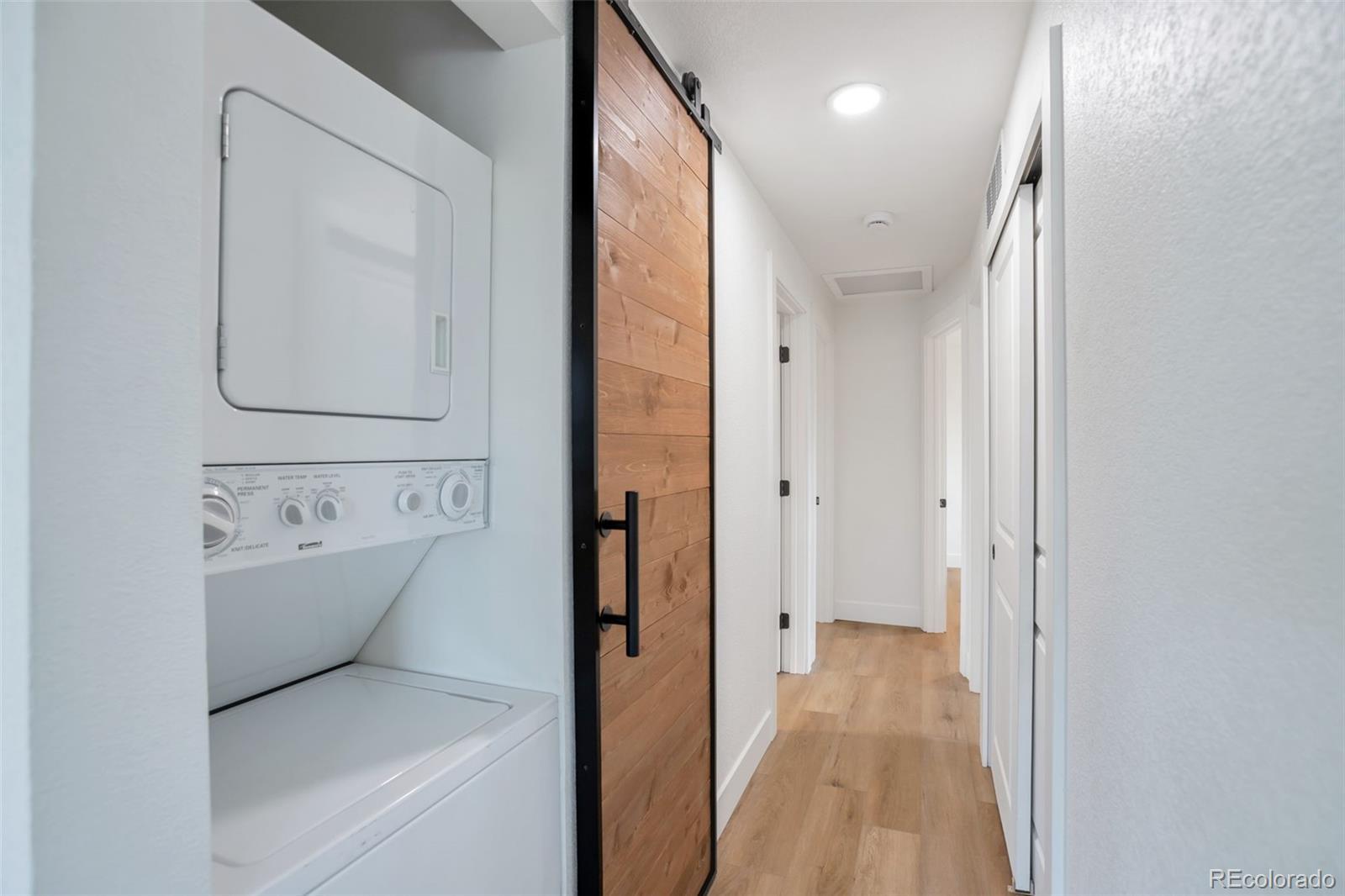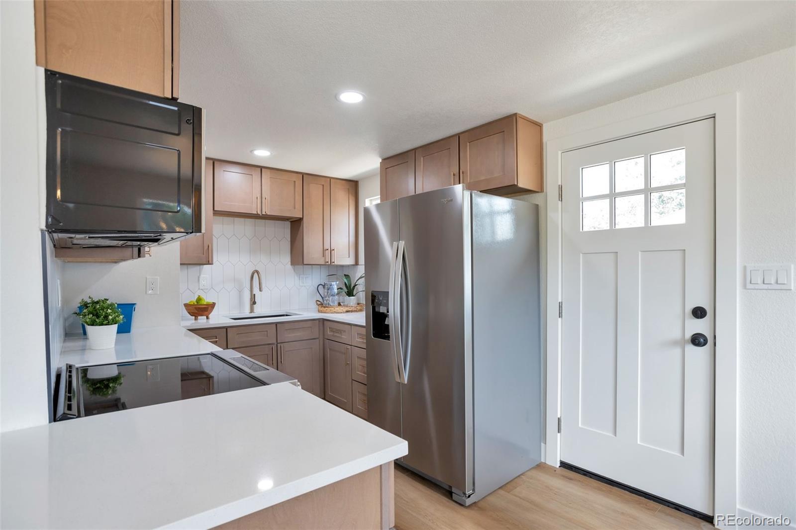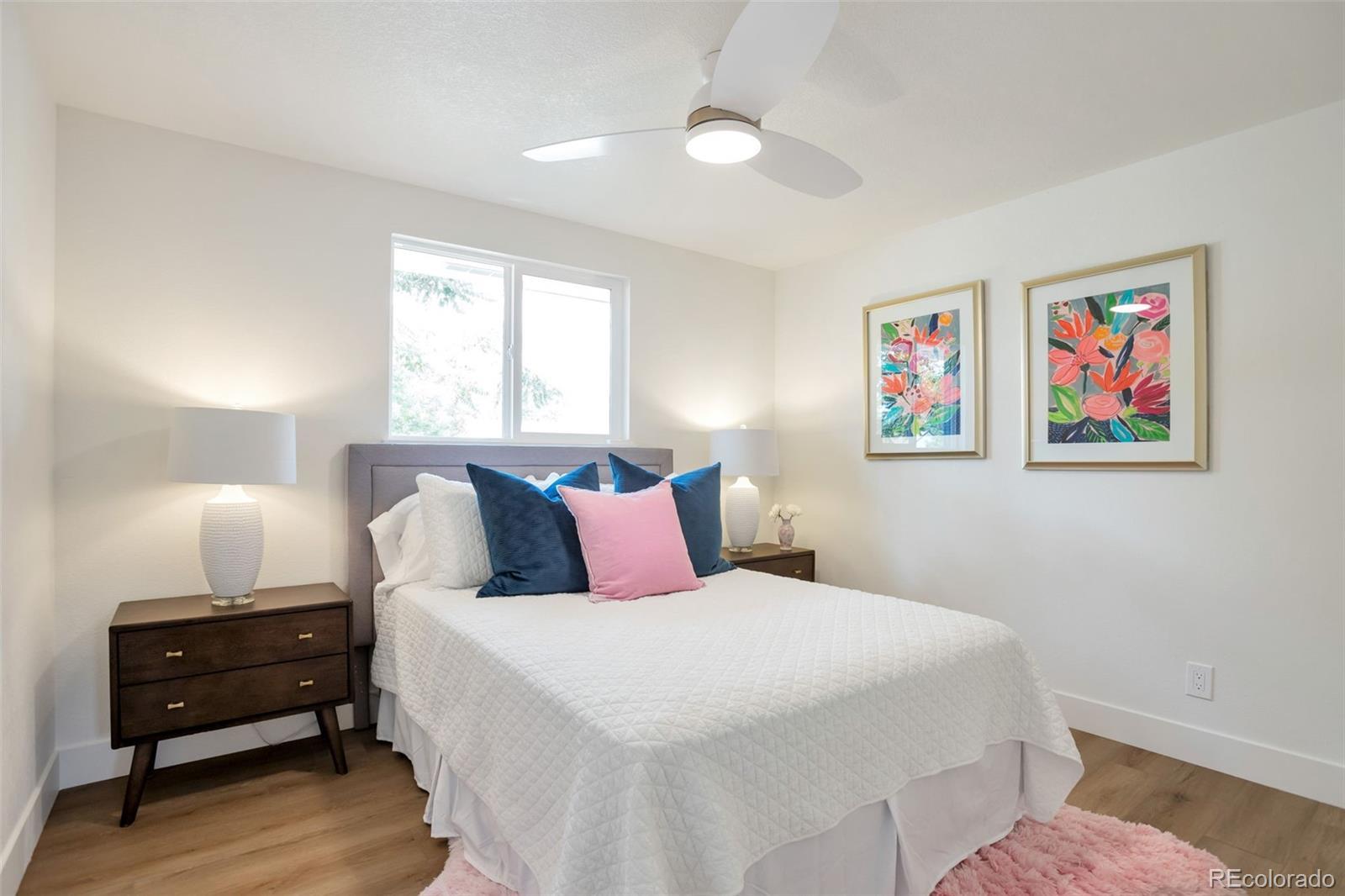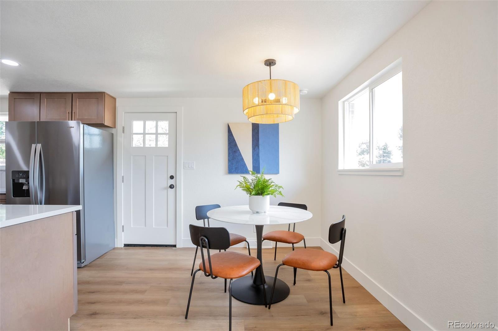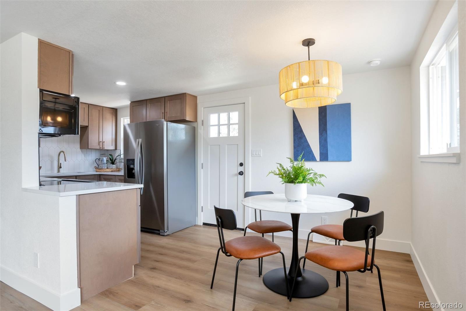 Nestled on a desirable corner lot in the Columbine Acres neighborhood, this beautifully updated home blends modern finishes with comfortable living. Featuring 3 bedrooms and 1 bathroom, the home offers an open and inviting layout with luxury vinyl plank flooring throughout. The kitchen has been fully remodeled with quartz countertops, stainless steel appliances, and custom cabinetry. The kitchen opens directly onto the dining area, making it perfect for everyday meals and gatherings. The living room is warm and inviting, making it the ideal spot for cozy movie nights. The bathroom showcases custom tilework, adding a touch of elegance and detail. Additional highlights include central AC, new windows, and a convenient stackable washer and dryer tucked neatly behind a stylish barn door. Step outside to enjoy the private patio, where you can entertain, dine, or simply relax. Its convenient location provides easy access to shopping, dining, and everyday amenities. This move-in-ready gem is a wonderful opportunity to own a fully updated home in a highly sought-after community. This property qualifies for a free temporary 1-0 buydown where you will receive a 1% lower interest rate for the first year. Please contact the Listing Agent for further lender details.