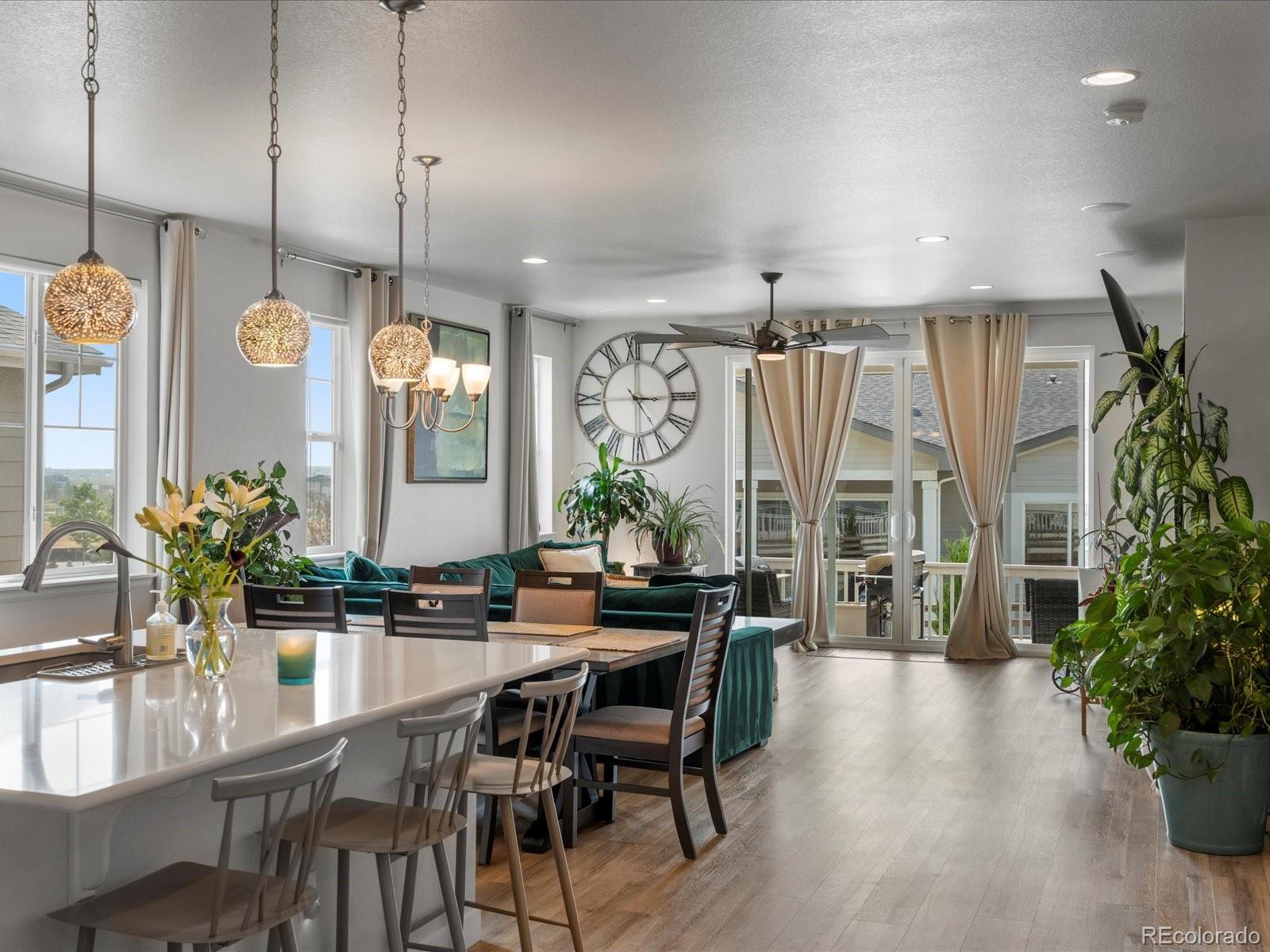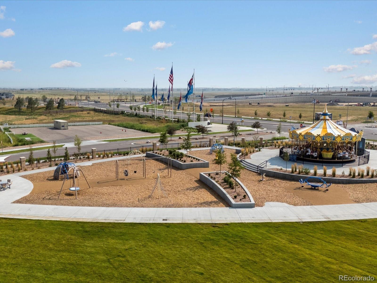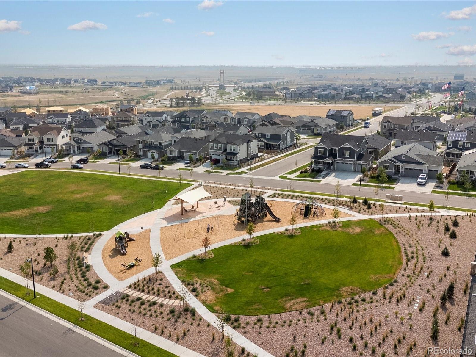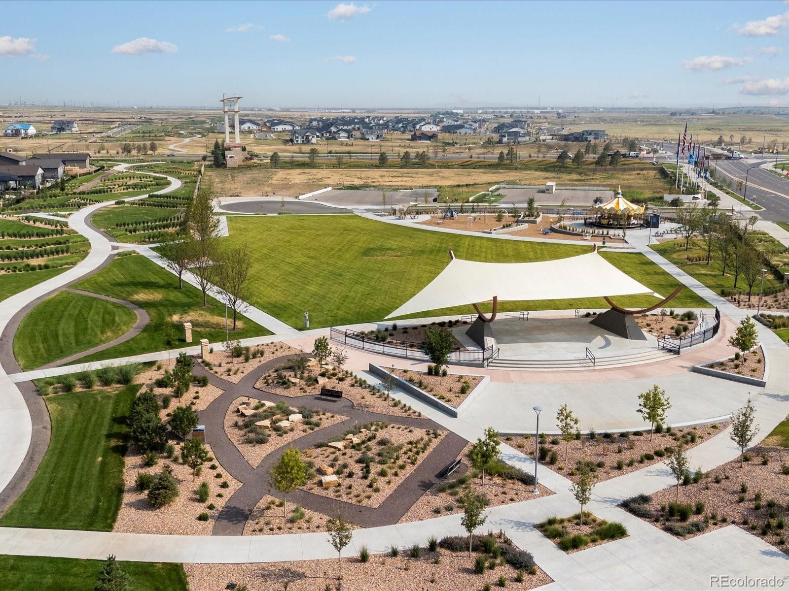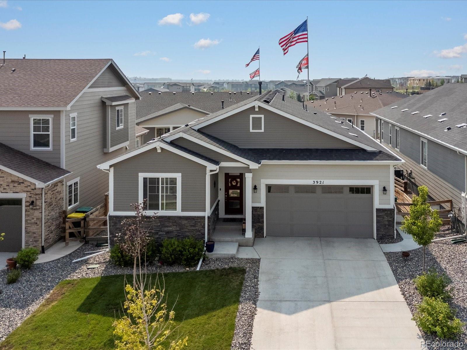 Live at the center of it all in The Aurora Highlands, just steps from the new Beach Club opening in January and the free AERO shuttle that zips you around the neighborhood and to nearby shops and restaurants. This barely lived in ranch gives you the feel of a new build without the wait, dust, or extra cost of finishing it out yourself. The open kitchen truly anchors the home, with an extended island, gas range, and plenty of prep and storage space. All window coverings stay, landscaping is complete, and the spacious deck includes a privacy screen, shade, outdoor ceiling fan, and evening lighting so you can relax outside from day one. The private connection from the deck to the primary suite adds an easy indoor outdoor flow. Need more room to spread out. The full finished basement is ready for movie nights, hobbies, or game days, and it includes plumbing in place for a future wet bar plus an included fridge. Love your garage. Cabinets and a sealed floor keep everything organized and tidy. What really sets this home apart is the community. The Aurora Highlands offers parks, paths, a carousel, active social events, book club, seasonal celebrations, dog friendly gatherings, school activities, and a strong neighborhood network. With the Beach Club opening soon, future medical campus plans, and new roads and services coming online, you get a growing, connected community right at your doorstep. Save thousands compared to building new and start enjoying the Aurora Highlands lifestyle the day you move in.