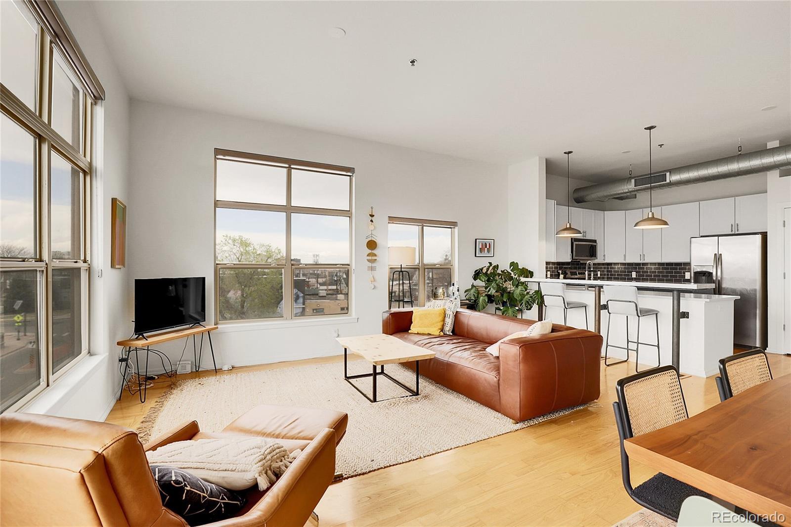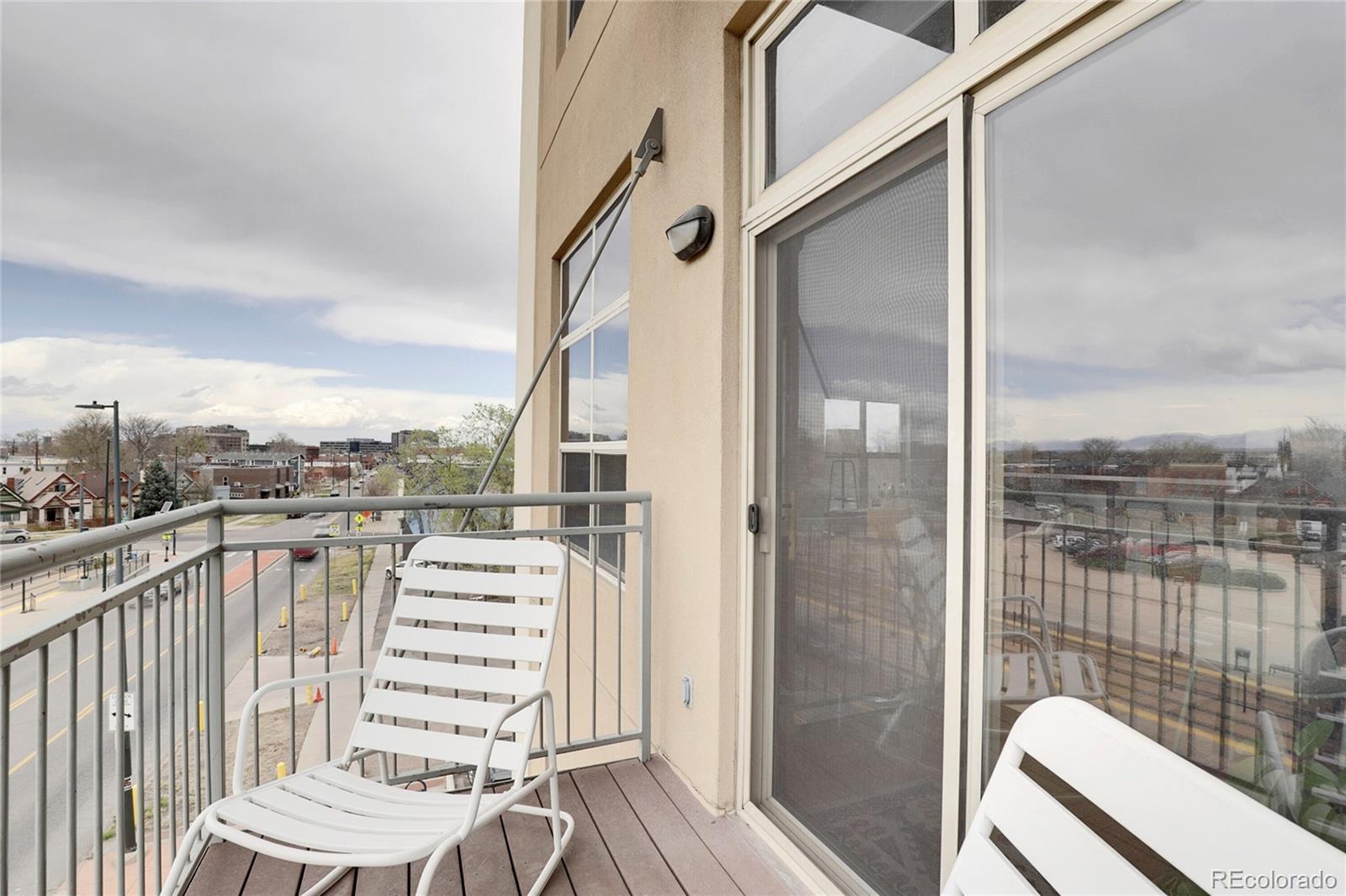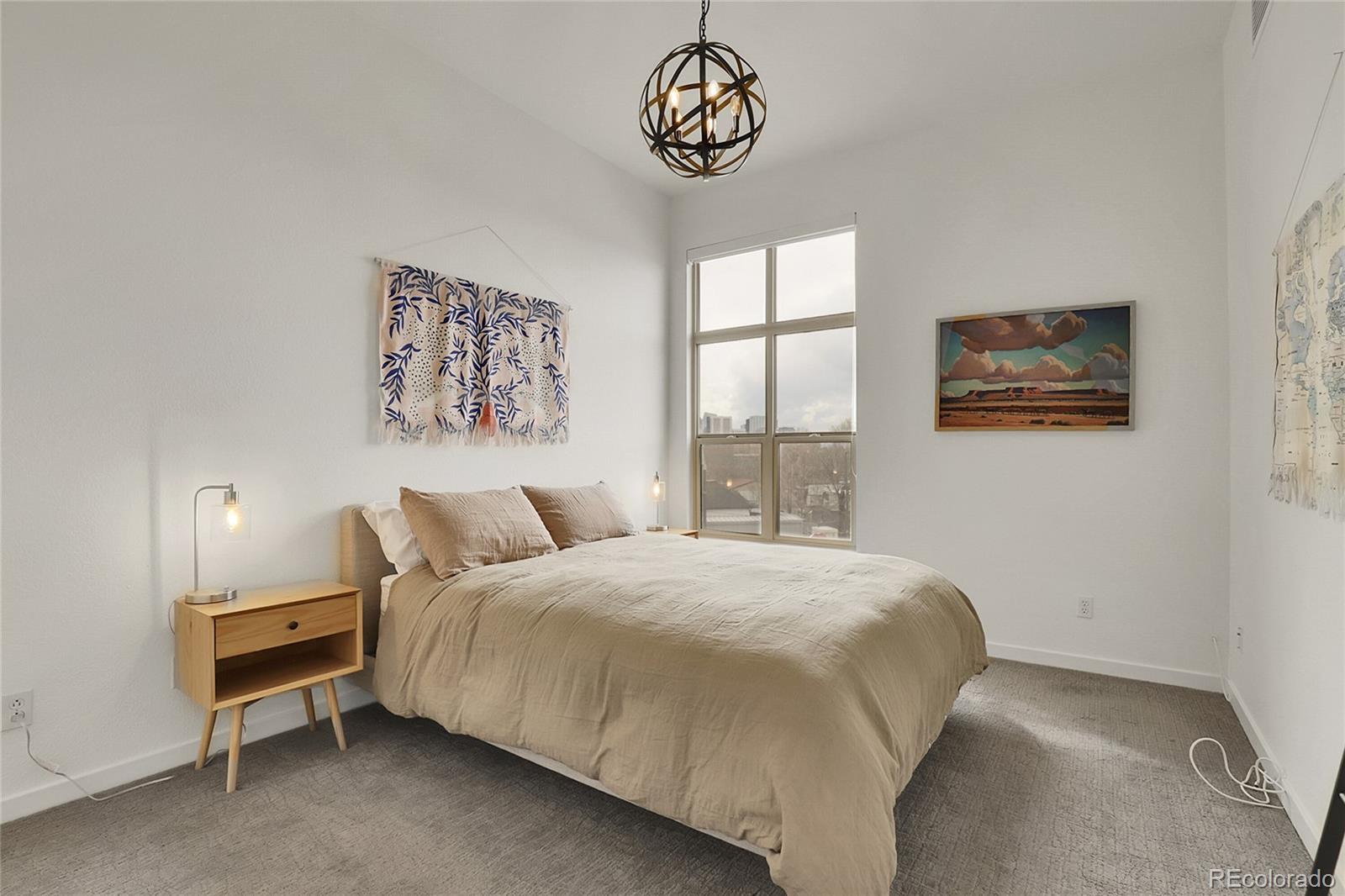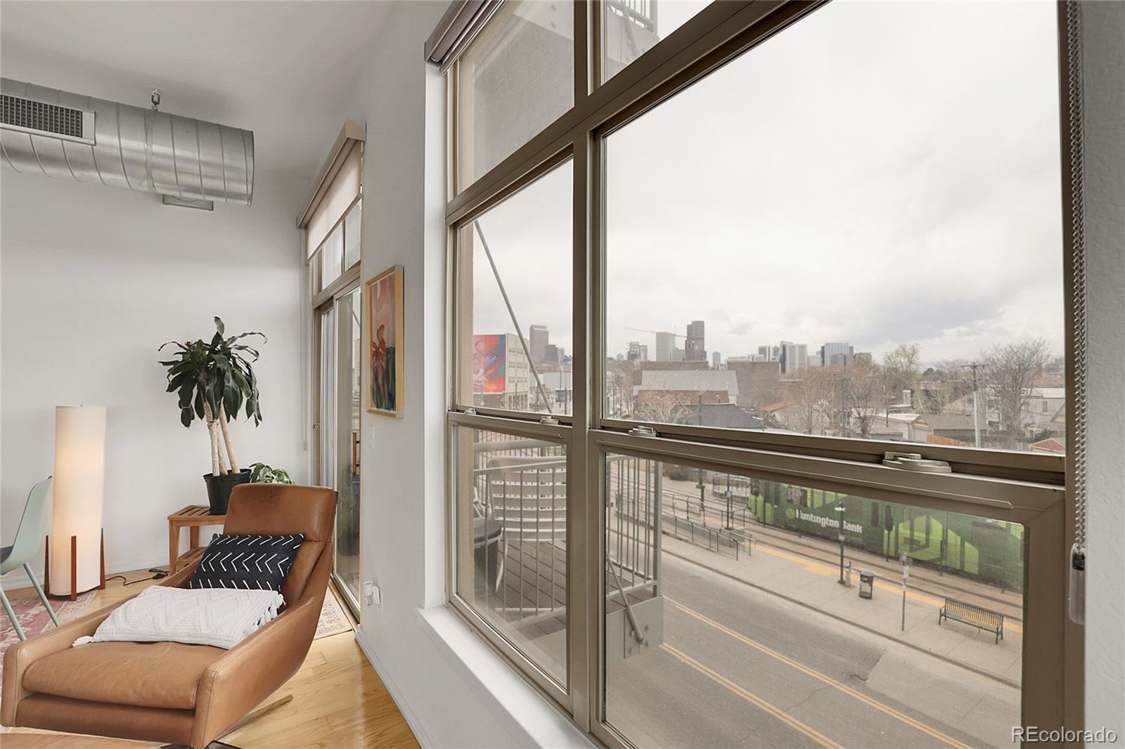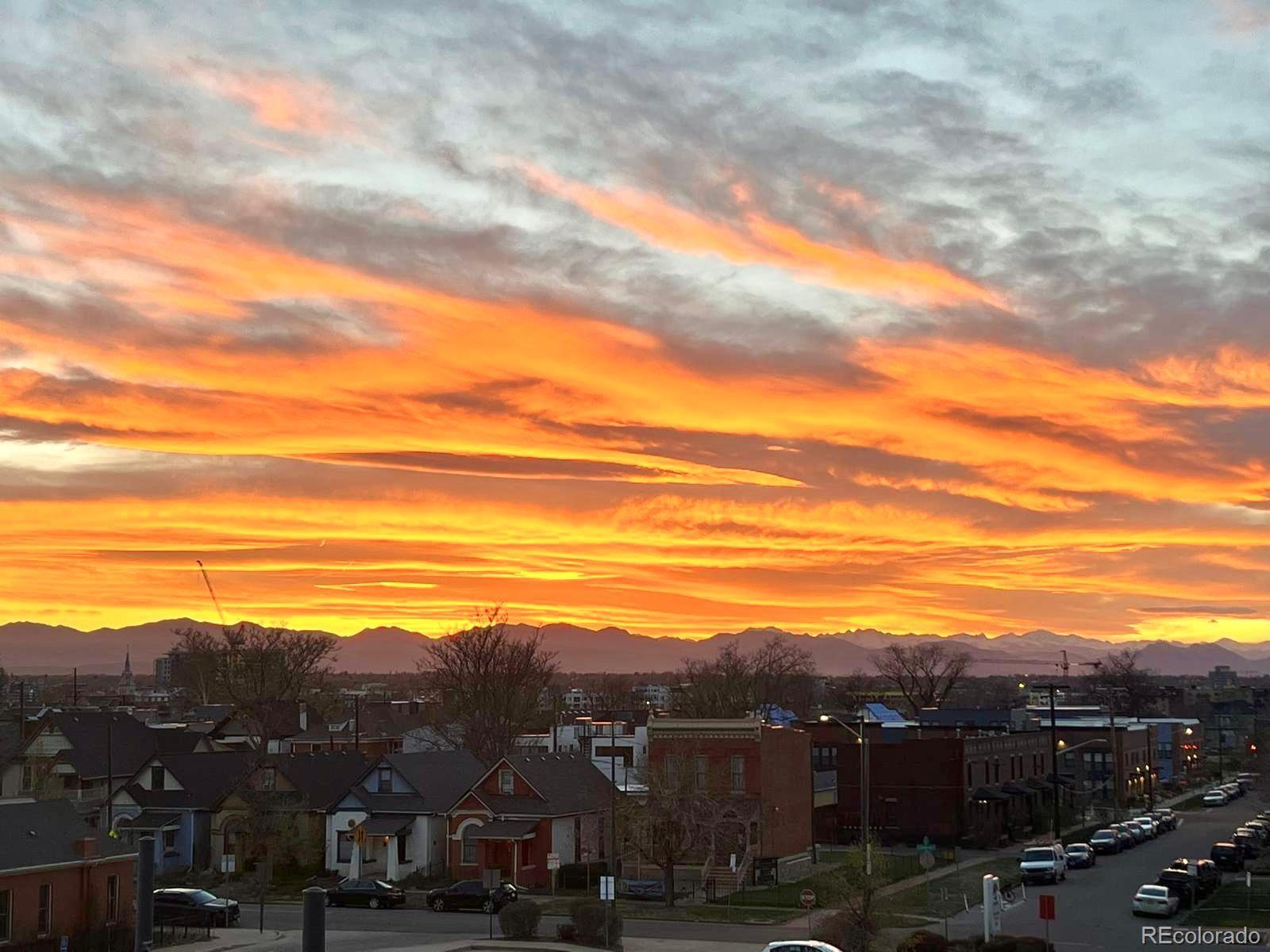 SHOWINGS BEGIN NOON 2/20! Welcome home to your cozy yet sophisticated urban oasis! Situated in the heart of one of the most dynamic and hip neighborhoods in Denver this beautiful and affordable condo is perfect for anyone looking for a great city location and contemporary comfort. Soak in the city and mountain views and enjoy gobs of natural light through the large windows situated throughout the entire unit. The large and spacious living area includes space for a comfortable living room, a dining area, and flows seamlessly into the modern kitchen. This large main living area, includes oak hardwood floors, fifteen-foot ceilings and tasteful industrial accents throughout creating a spacious loft feel but still cozy and comfortable. The kitchen is equipped with stainless steel appliances, a large sink, quartz countertops, along with fashionable white shaker and steel blue cabinets and a stainless bar top. The primary suite features large west-facing windows, Berber carpet, and a spacious walk-in closet with wire shelving. The in-suite bathroom features double sinks, modern cabinetry, stylish deep gray tile flooring, large soaking tub/shower. The roomy guest bedroom/office includes Berber carpet and has a large closet with sliding doors. The second bathroom, which is equipped with a large vanity, tons of counter space, and under-the-sink storage and single shower with glass door. Positioned in the heart of the ever-evolving and beautifully eclectic Whittier/Curtis Park Neighborhoods. Steps away from some of the most popular and creative new shops, restaurants, bars, and art studios not to mention the neighborhood staples, many of which are Denver classics. You are just minutes from some of the hottest neighborhoods in Denver, a short bike ride to both City Park and Cheeseman Park and finally, a short commute to the airport, many of the sporting & music venues, along with convenient Lightrail access to many of these destinations.