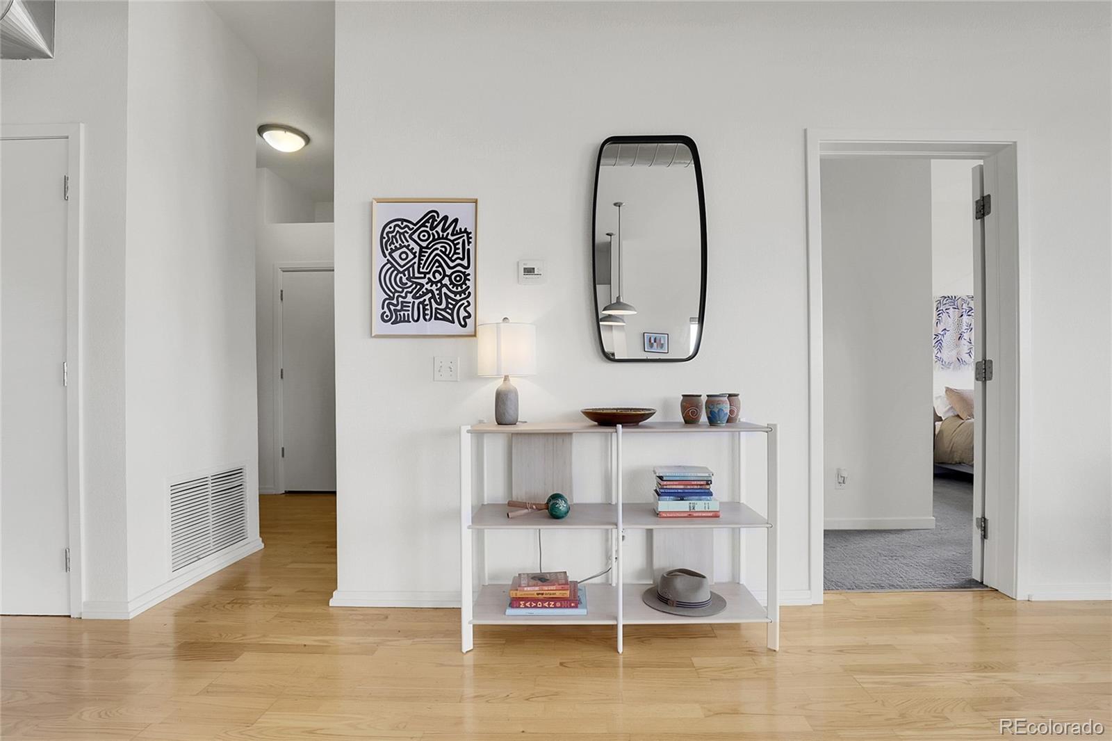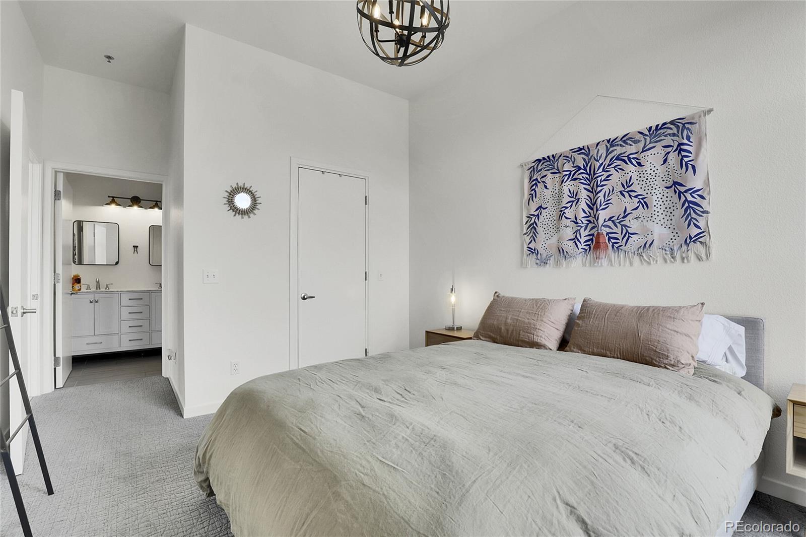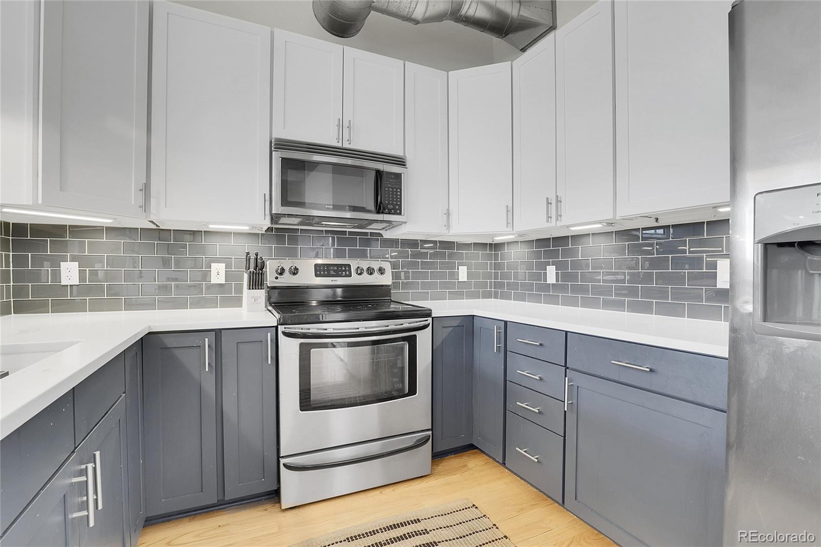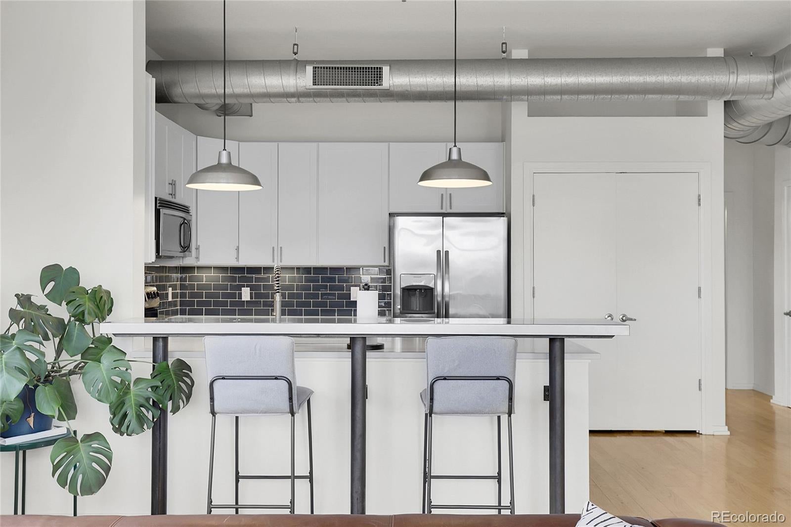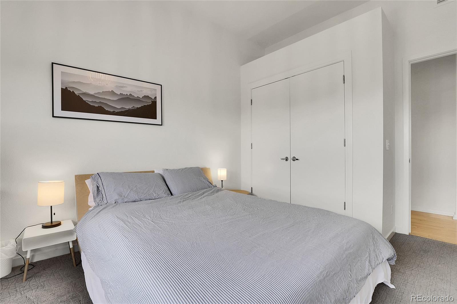 SHOWINGS BEGIN NOON 2/20! Welcome home to your cozy yet sophisticated urban oasis! Situated in the heart of one of the most dynamic and hip neighborhoods in Denver this beautiful and affordable condo is perfect for anyone looking for a great city location and contemporary comfort. Soak in the city and mountain views and enjoy gobs of natural light through the large windows situated throughout the entire unit. The large and spacious living area includes space for a comfortable living room, a dining area, and flows seamlessly into the modern kitchen. This large main living area, includes oak hardwood floors, fifteen-foot ceilings and tasteful industrial accents throughout creating a spacious loft feel but still cozy and comfortable. The kitchen is equipped with stainless steel appliances, a large sink, quartz countertops, along with fashionable white shaker and steel blue cabinets and a stainless bar top. The primary suite features large west-facing windows, Berber carpet, and a spacious walk-in closet with wire shelving. The in-suite bathroom features double sinks, modern cabinetry, stylish deep gray tile flooring, large soaking tub/shower. The roomy guest bedroom/office includes Berber carpet and has a large closet with sliding doors. The second bathroom, which is equipped with a large vanity, tons of counter space, and under-the-sink storage and single shower with glass door. Positioned in the heart of the ever-evolving and beautifully eclectic Whittier/Curtis Park Neighborhoods. Steps away from some of the most popular and creative new shops, restaurants, bars, and art studios not to mention the neighborhood staples, many of which are Denver classics. You are just minutes from some of the hottest neighborhoods in Denver, a short bike ride to both City Park and Cheeseman Park and finally, a short commute to the airport, many of the sporting & music venues, along with convenient Lightrail access to many of these destinations.