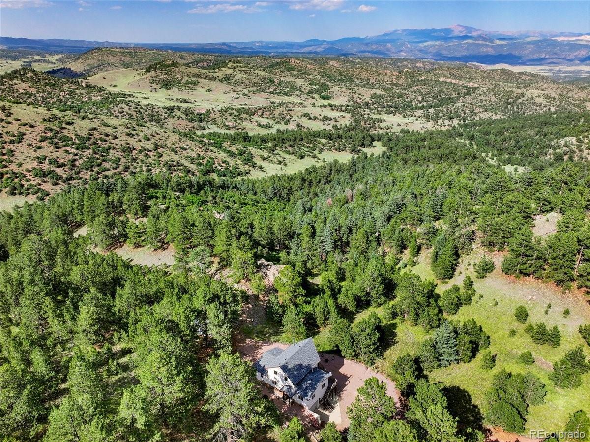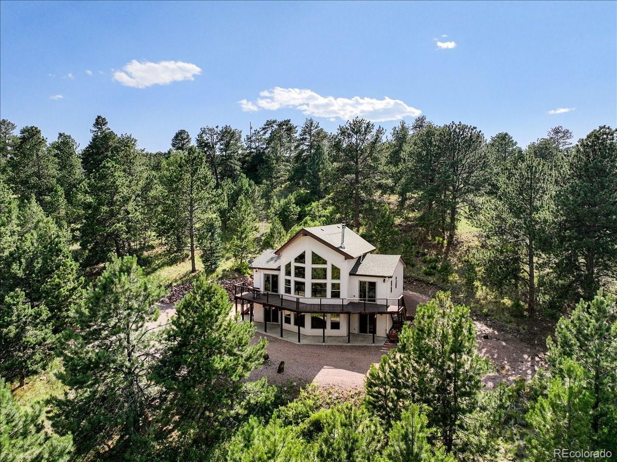 Tucked away at the end of a gated private road, this 43.42-acre former cattle ranch offers unmatched privacy, timeless charm, and modern comfort. Surrounded by mature trees and frequented by elk, mule deer, eagles, and even the occasional bear or mountain lion, this is Colorado living at its wild and wonderful best. The custom home is offered fully furnished and welcomes you with vaulted ceilings, white oak flooring, and a sun-filled great room anchored by a cozy wood stove—perfect for relaxing or entertaining. A main-level master suite provides convenience and privacy, while the upper loft offers flexible space for guests, work, or hobbies. The kitchen is a chef’s dream, featuring custom cabinetry, a cooktop island, and a breakfast bar—all crafted for both beauty and function. Step out onto your walk-out patio to take in breathtaking views of Pikes Peak, Cripple Creek, and the sweeping landscape. Whether you're looking for a full-time residence, a second home, or a turn-key short-term rental opportunity, this property is ready to enjoy from day one. It also offers ample space and flexibility to build a guest house or additional structures—ideal for extended family, rental income, or private retreats. Its quiet setting, natural beauty, and wildlife-rich surroundings make it a true escape—and a guest favorite. This is more than just a home—it’s a fully equipped mountain sanctuary. Don’t miss your chance to own a rare piece of Colorado’s untouched splendor.