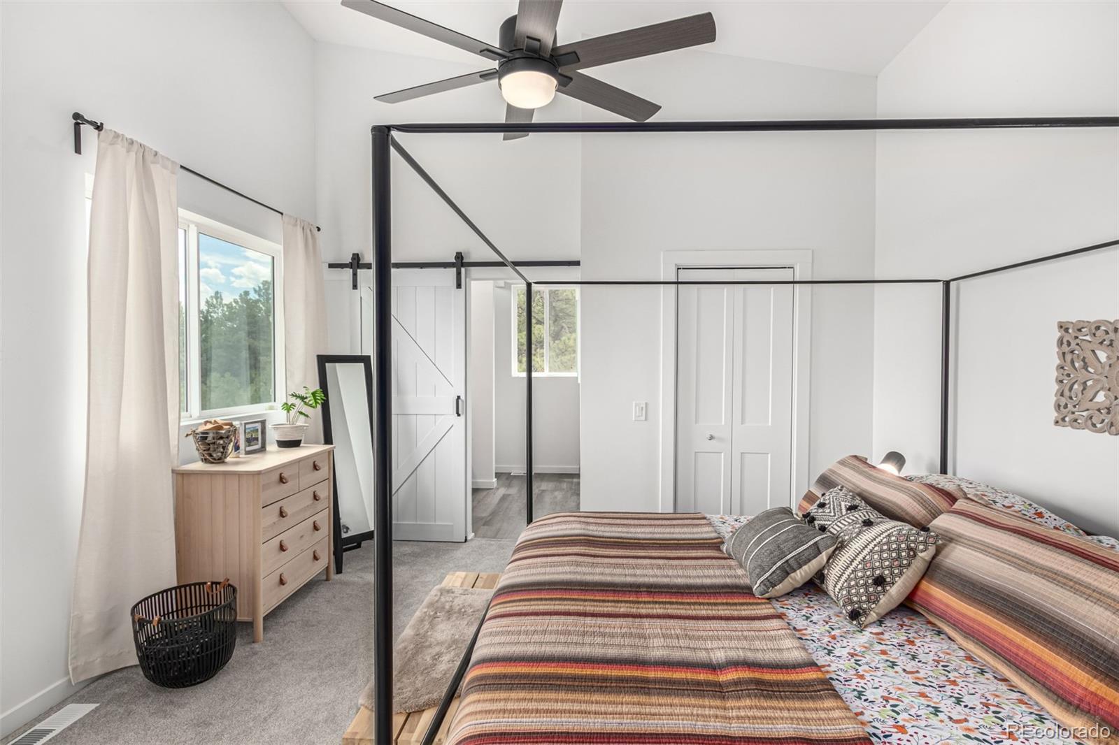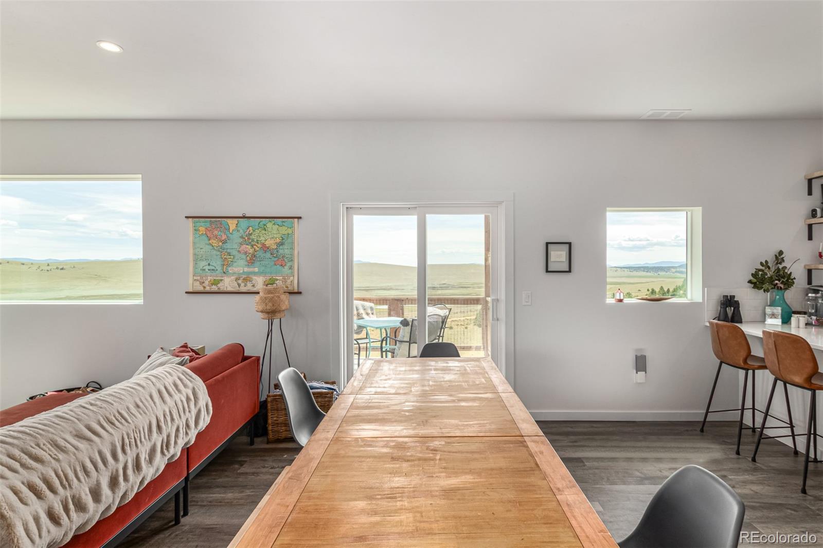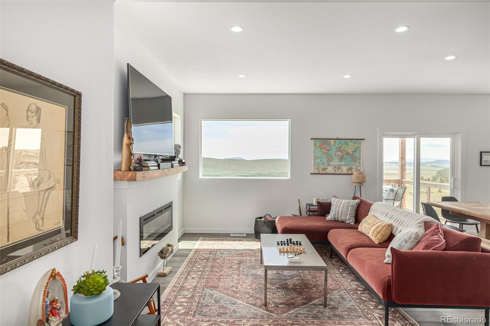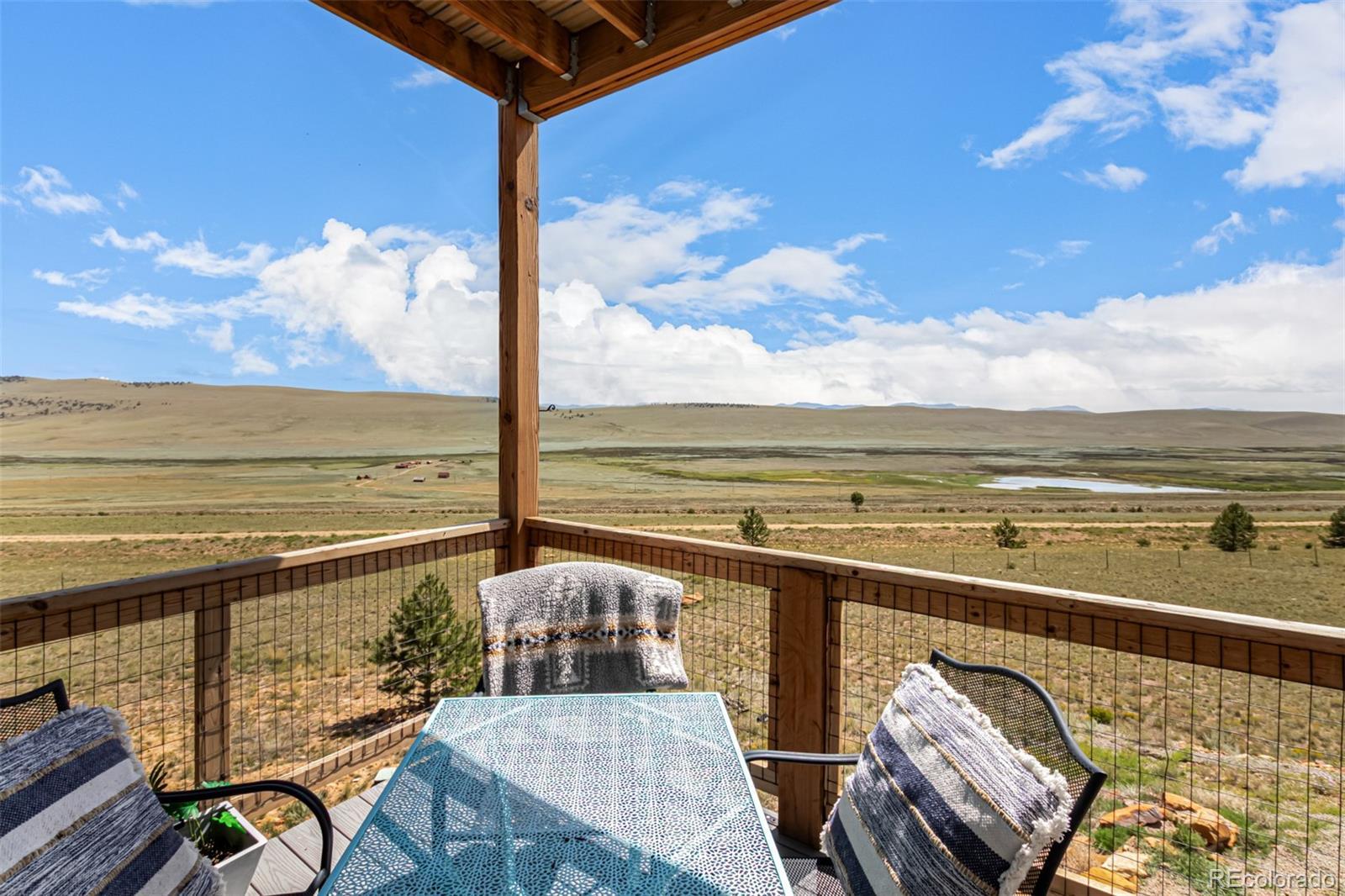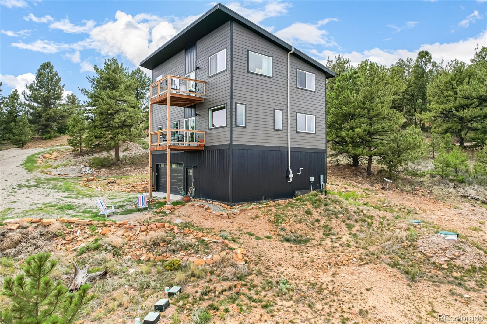 Welcome to this stunning modern mountain retreat in Redhill Forest, offering sweeping valley views and effortless access to everything you love about the Rockies, including 5.5 miles of private fishing rights of the Middle Fork of the South Platte River. Built in 2022 and meticulously maintained by its original owners, this 3-bedroom home also includes two versatile bonus rooms currently used as an office and a family room—both easily convertible into additional bedrooms. The main level features an open-concept layout with a sunlit living room anchored by a cozy gas fireplace, a dining area that opens to a covered balcony with panoramic views, a stylish sitting area, and a beautifully designed kitchen with quartz countertops and stainless steel appliances. A full bathroom and dedicated office complete the main floor. Upstairs, French doors open to a spacious family room, along with the private primary suite featuring its own balcony, two additional bedrooms, and another full bathroom. The lower level includes a two-car garage and generous storage space. Located on a paved road near the community entrance, this home offers both convenience and serenity—plus the bonus of reliable cell service. Only 10 minutes from Fairplay and 45 minutes from Breckenridge, you’ll enjoy the perfect blend of peaceful country living and easy access to dining, shopping, and world-class mountain recreation. All furniture is negotiable.