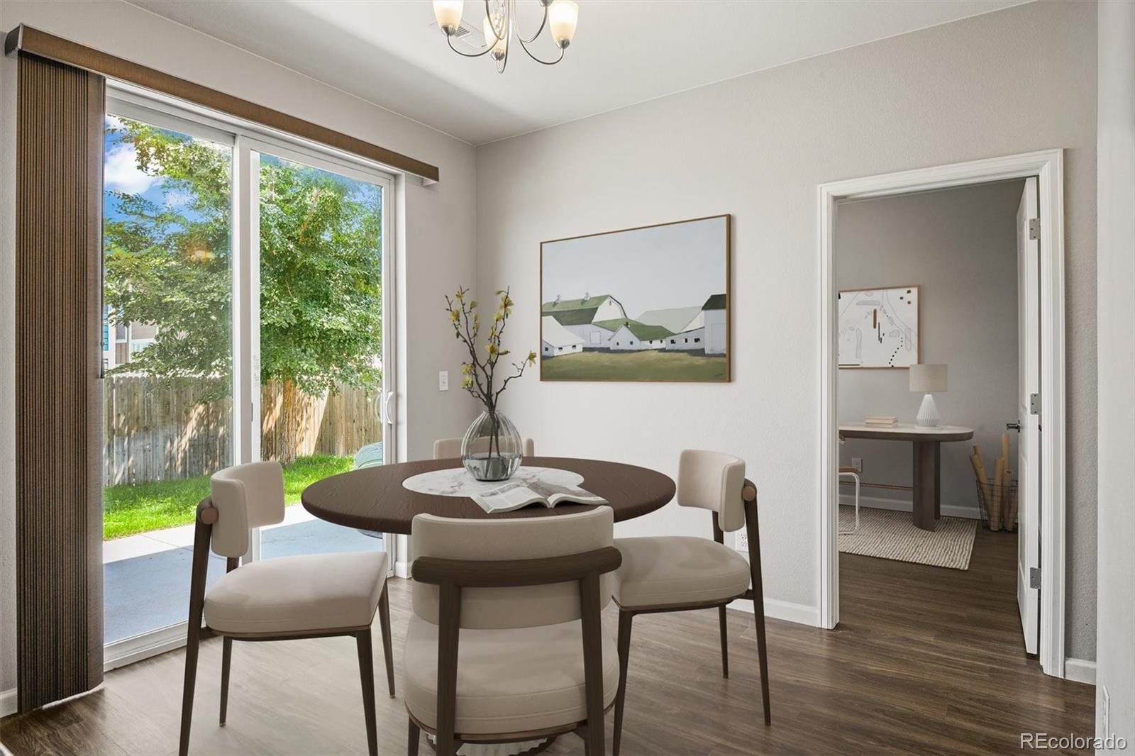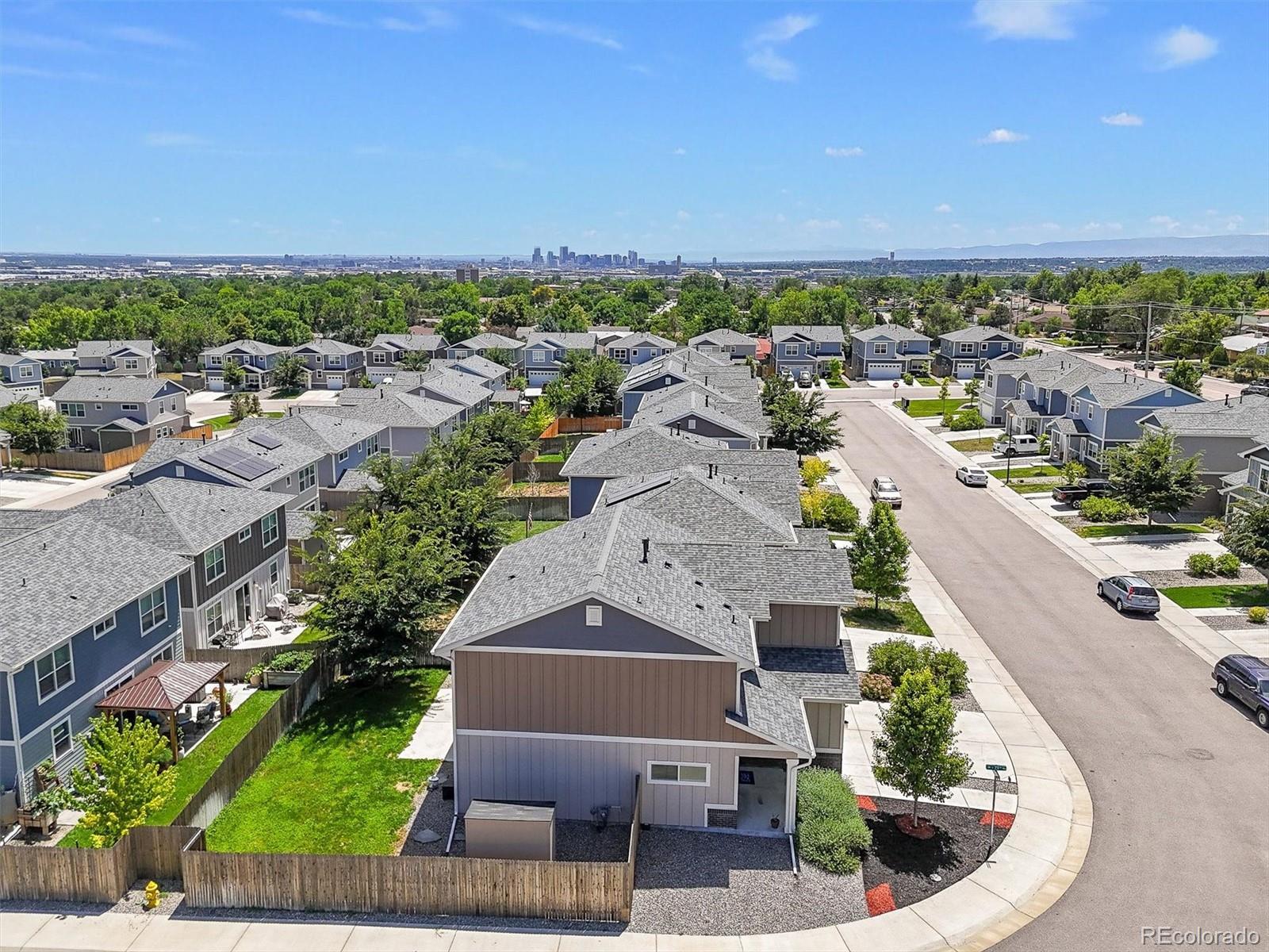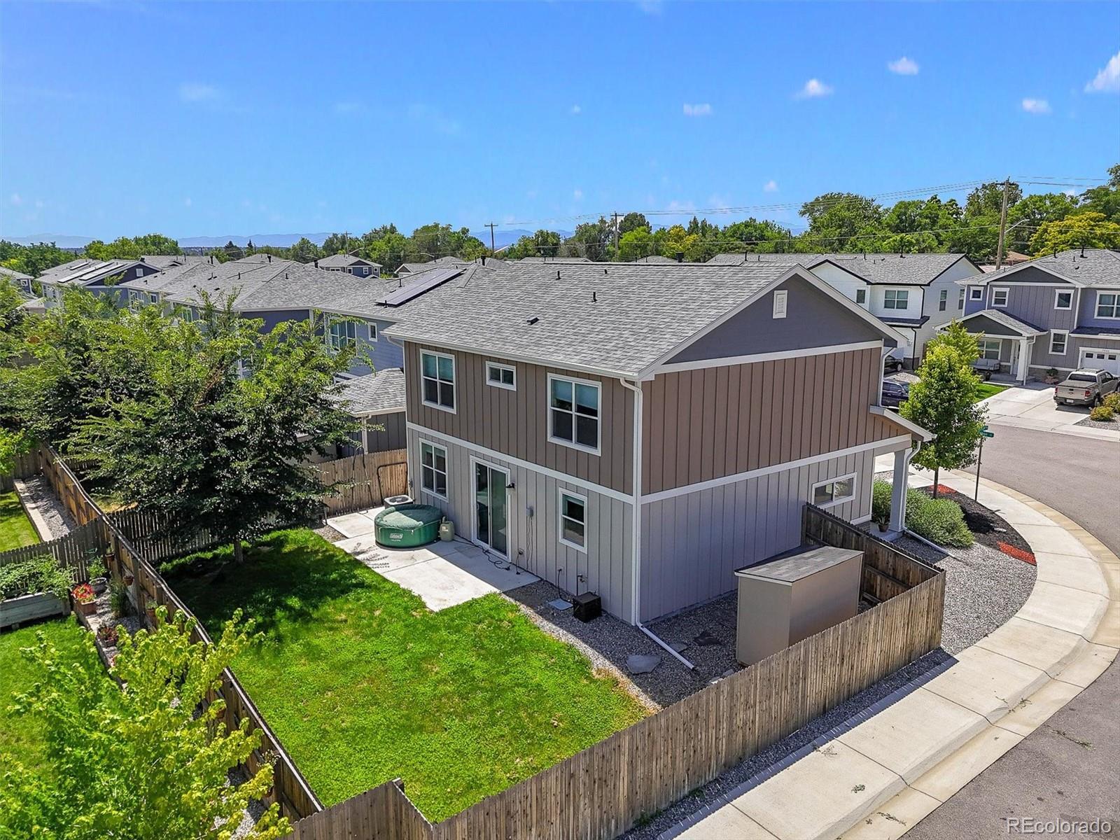 Enjoy spacious living in this turn-key city-lover's dream without the bustle of city living; welcome home to 7956 Osage Street, located on a premium corner lot in Sherrelwood Village. The main level unfolds to an open floor plan with plenty of room for hosting and gathering. Tall ceilings, abundant natural light, and LVP flooring seamlessly connect the main living areas. The heart of the home is the upgraded kitchen, comprised of a large center island with decorative pendant lights, granite counters, and a stainless steel appliance package. Enjoy hosting guests or intimate family dinners in the dining room, steps from the kitchen and your private backyard. The spacious patio offers room for family BBQs with a dining and lounging area, shaded by a mature tree and overlooking a fenced lawn, just waiting for your personal touch. The included utility shed is the ideal spot for all your tools and toys. Upstairs reveals three generously sized bedrooms, a full bath, convenient laundry, and the primary suite. This sanctuary is complete with a sizeable walk-in closet and an ensuite 4-piece bath with a walk-in shower. Additional features of this residence include a bonus room – ideal for guests, a home office, or playroom, endless functional storage space, a zero-maintenance xeriscape front yard, and an attached 2-car garage. 7956 Osage Street is situated a short drive from Old Town Arvada, Downtown Denver, DIA, and walking distance to Hyland Hills Recreation District and Water World, only 1 mile away (Get a resident ID and get discounts on your tickets to the water park!). Sherrelwood Village backs to the community park and neighborhood schools, while also being only minutes from shopping, dining, public transportation, and major roadways. This is true contemporary living in a sought-after area; the only thing missing in this home is you. Plus, the Sellers are offering a 14-month home warranty to transfer to the new owners at closing! $7,000 lender credit offered!