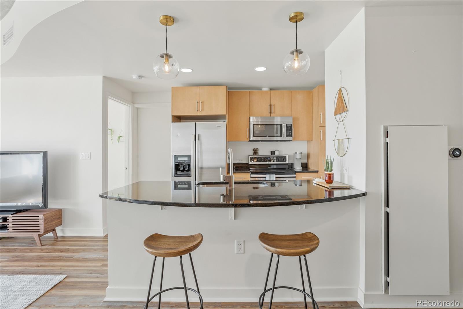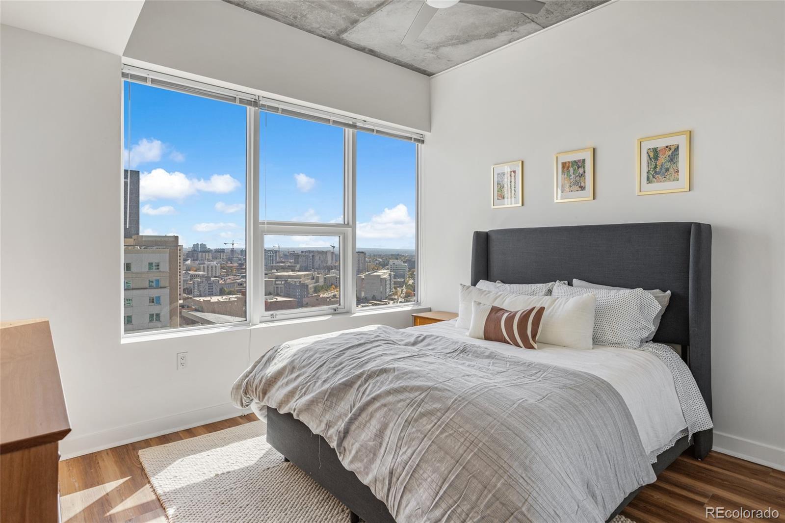 Discover a captivating home in the heart of Denver with this fully furnished and upgraded 1 bedroom, 1 bathroom residence. Perched on the 21st floor, soak in breathtaking mountain and city views while enjoying generous interior spaces. Step inside to find newly installed hard surface flooring throughout the living areas and bedroom, providing a clean and modern ambiance without any carpet. The furnishings, decor, and art have been carefully curated to offer a blend of contemporary style and warm hospitality, creating a space that feels instantly inviting. The private bedroom is a rare find, fully enclosed for privacy and featuring storage in the closet, dresser, and a convenient desk for remote work. Sleep well with fresh linens and cozy bedding. The sleek kitchen is equipped with stainless steel appliances, granite countertops, and everything you need to make a delicious meal. Choose between two dining areas - a cozy kitchen island setup or a separate dining area that comfortably seats four, perfect for hosting intimate gatherings or enjoying meals with loved ones. Additional conveniences include a full-sized washer and dryer within the unit, ensuring a seamless and comfortable stay. Experience the vibrant lifestyle offered by Spire, a premier residential community in Downtown Denver. Enjoy access to a 24-hour fitness facility, spacious lounges, guest suites, and year-round outdoor pools. With its central location, you're just steps away from Denver's bustling dining, entertainment, and shopping scene, including the iconic Union Station and the convenient A-Line train to DIA. Your rental includes one reserved parking space in the attached garage, as well as all utilities such as water, electricity, steam, internet, and DirecTV services.