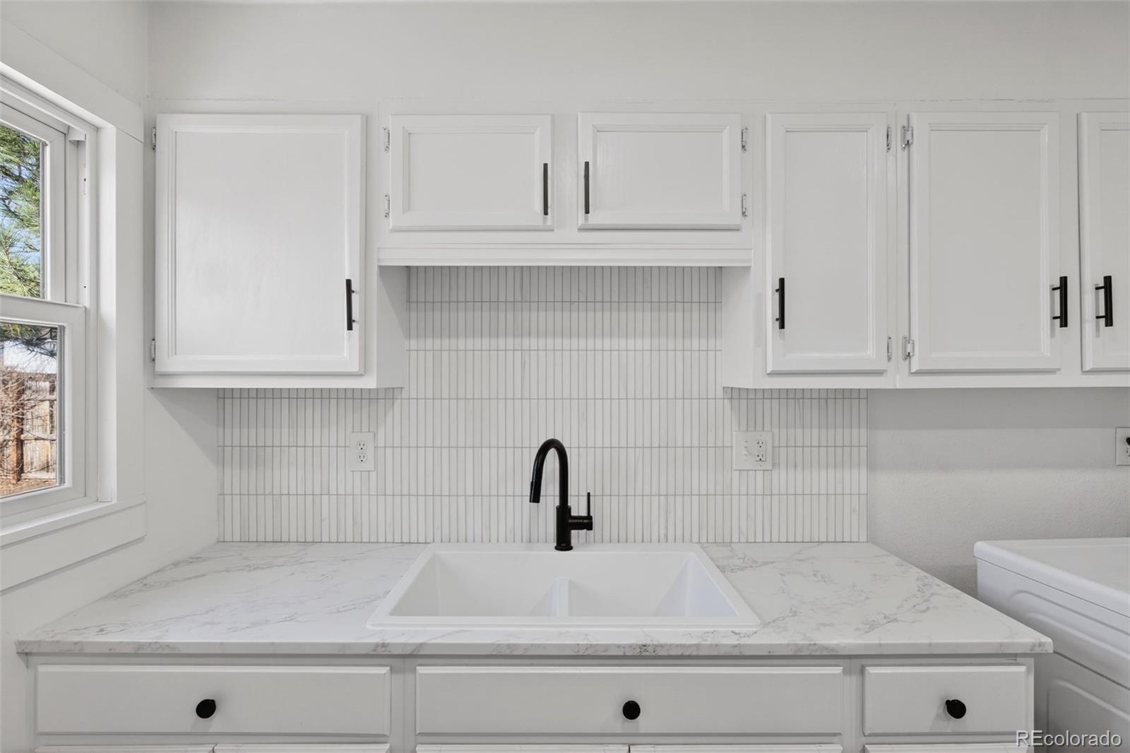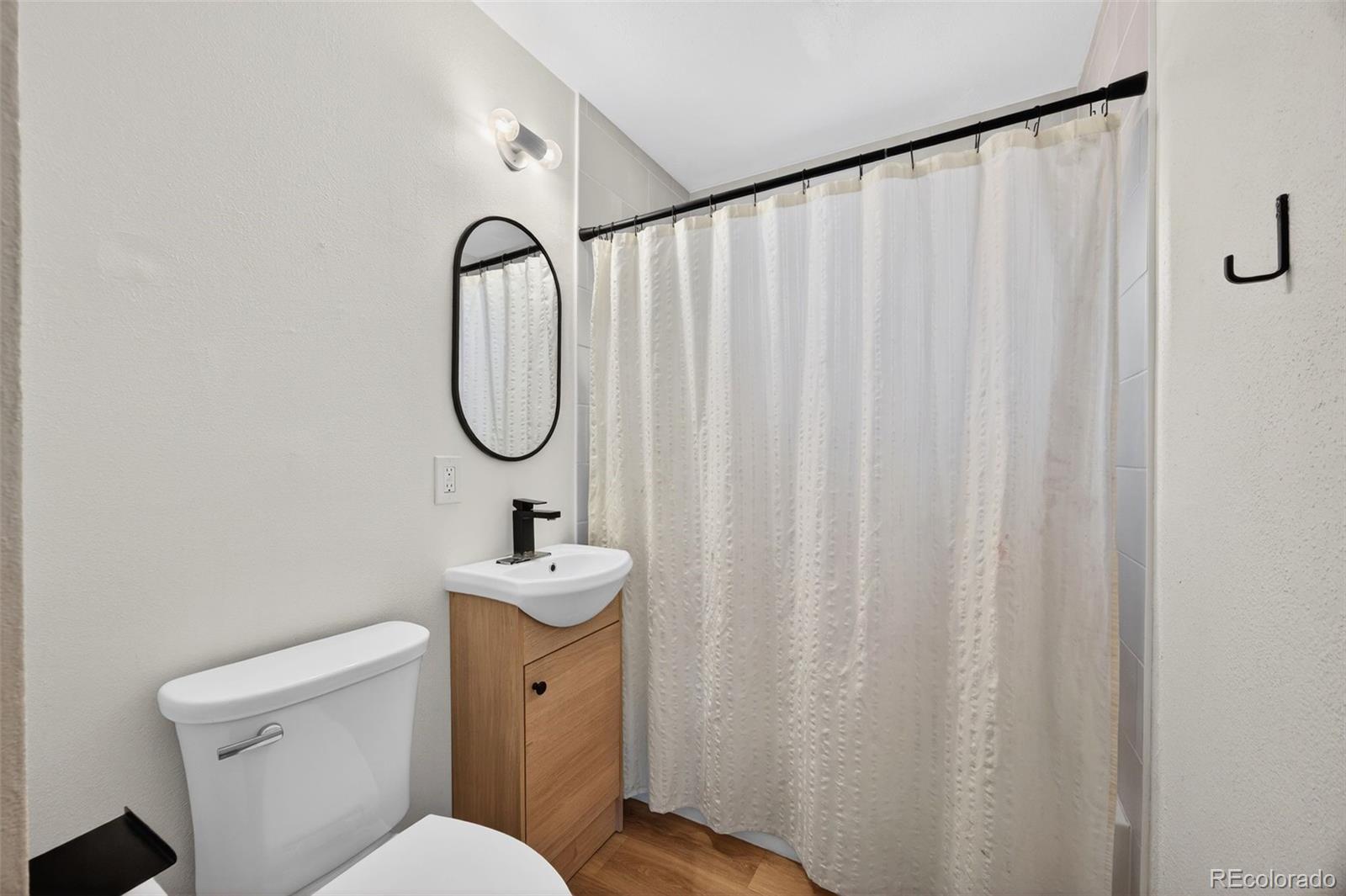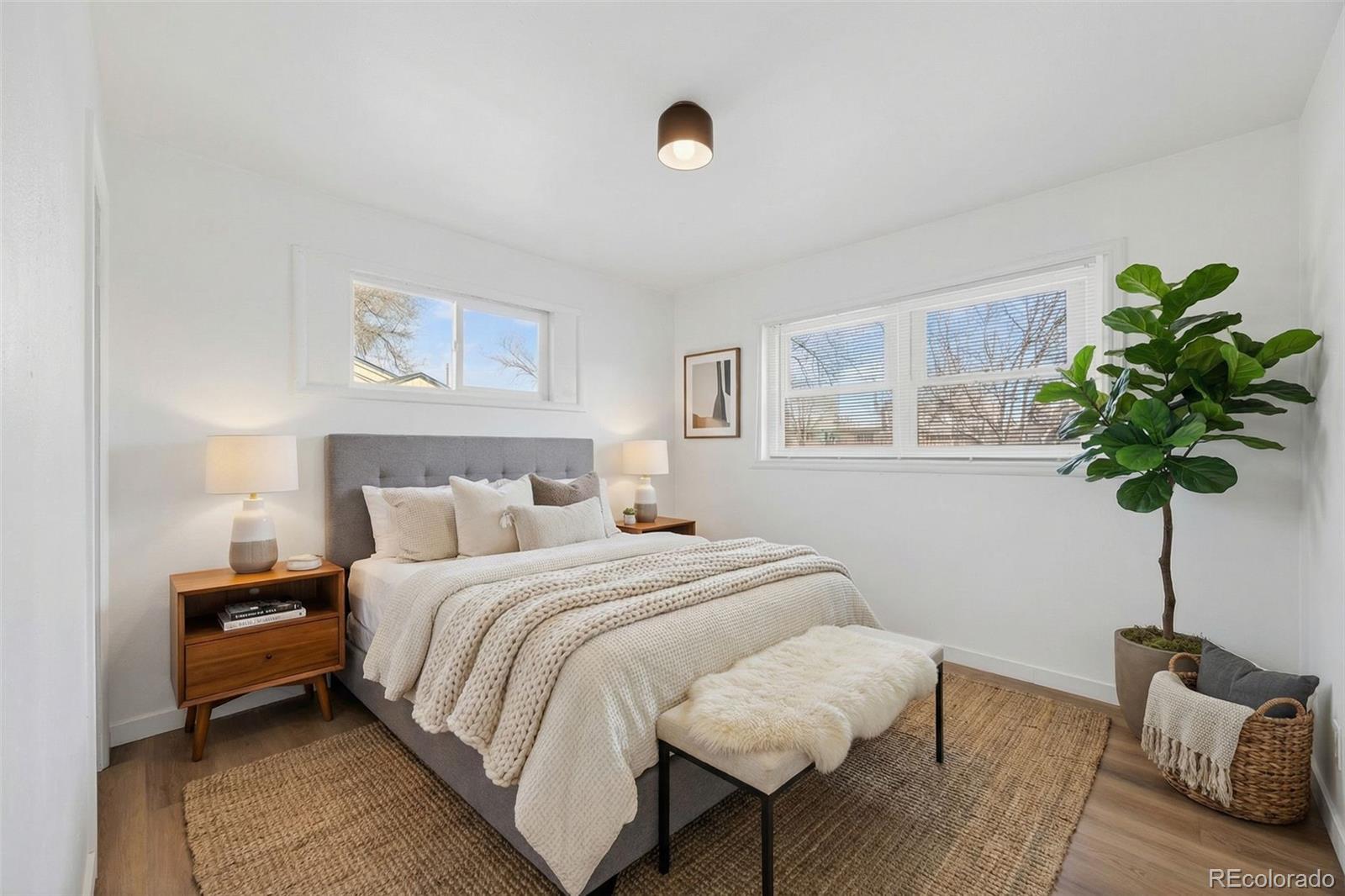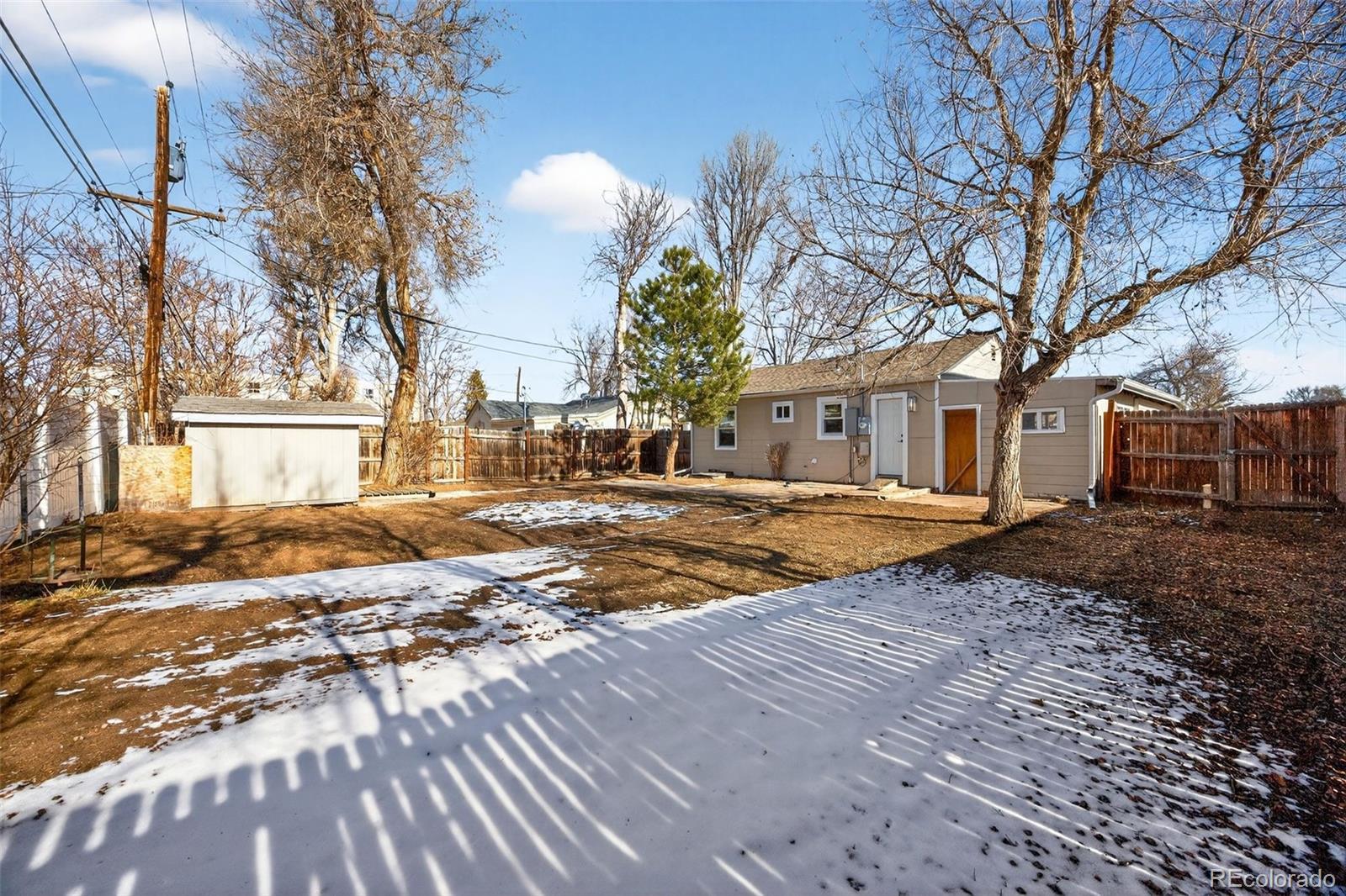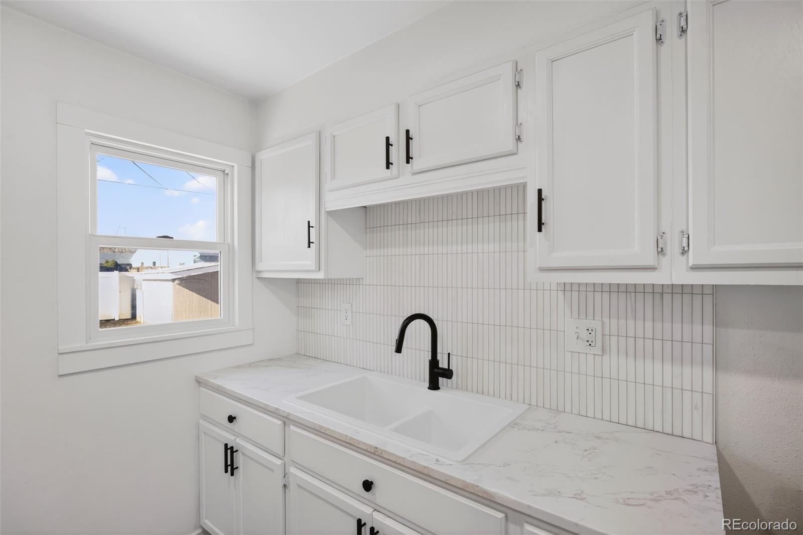 Welcome to 2621 S Federal Boulevard, a thoughtfully updated two bedroom, one bathroom home that proves great things come in well designed packages. From the moment you step inside, you’ll feel how intentionally every space has been refreshed to balance comfort, style, and functionality. The heart of the home is the stunning kitchen, designed to impress with crisp white cabinetry, sleek marble look quartz countertops, a farmhouse sink, and modern black hardware that ties the space together beautifully. A vertical tile backsplash and updated lighting add a designer touch, making this kitchen just as perfect for entertaining as it is for everyday living. The open flow into the living area creates a bright and welcoming atmosphere filled with natural light. Both bedrooms offer cozy retreats with clean finishes and warm wood look flooring that runs throughout the home. The bathroom is a true standout, featuring bold black fixtures that create striking contrast against soft neutral tones. The modern vanity, statement mirror, and updated lighting complete a space that feels elevated, stylish, and thoughtfully designed. Step outside and discover one of this home’s best features. The expansive backyard offers endless possibilities for entertaining, gardening, pets, or future expansion. With mature trees and ample space to customize your outdoor vision, this yard is a rare find and adds incredible value to the home. Harvey Park is just five minutes away, offering easy access to trails, green space, and outdoor recreation. Conveniently located with easy access to downtown Denver, shopping, dining, and major routes, this home is perfect for those who want great design and a location that keeps daily life easy and accessible. Come fall in love with a space that feels fresh, inviting, and ready to be your own.