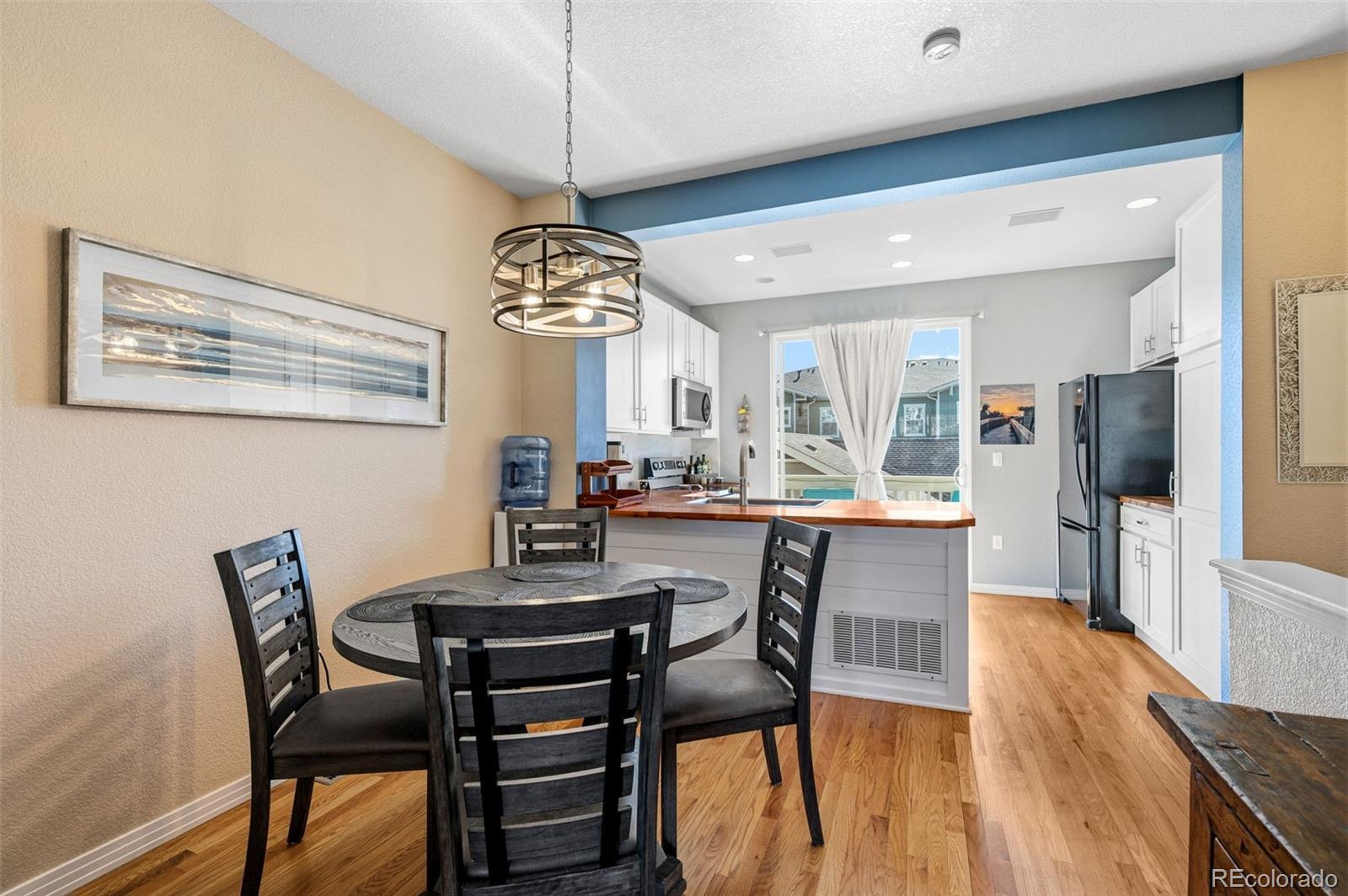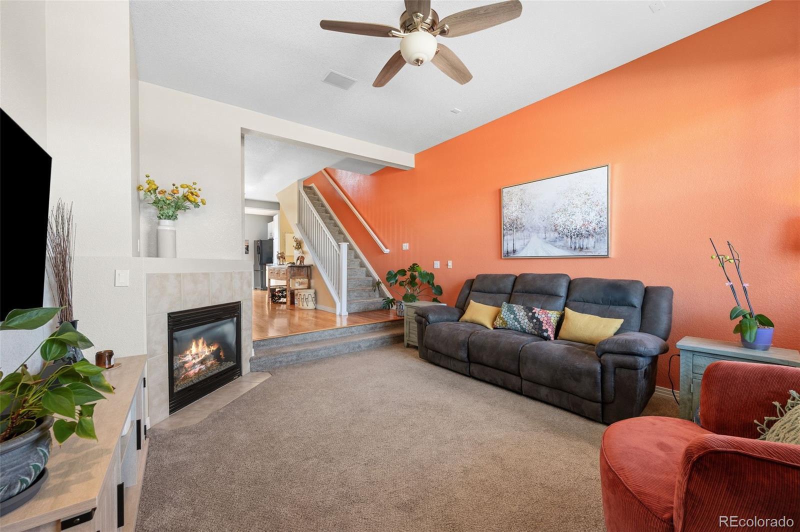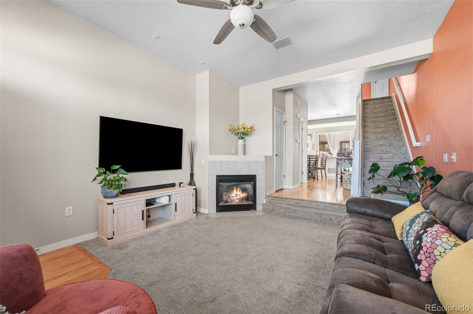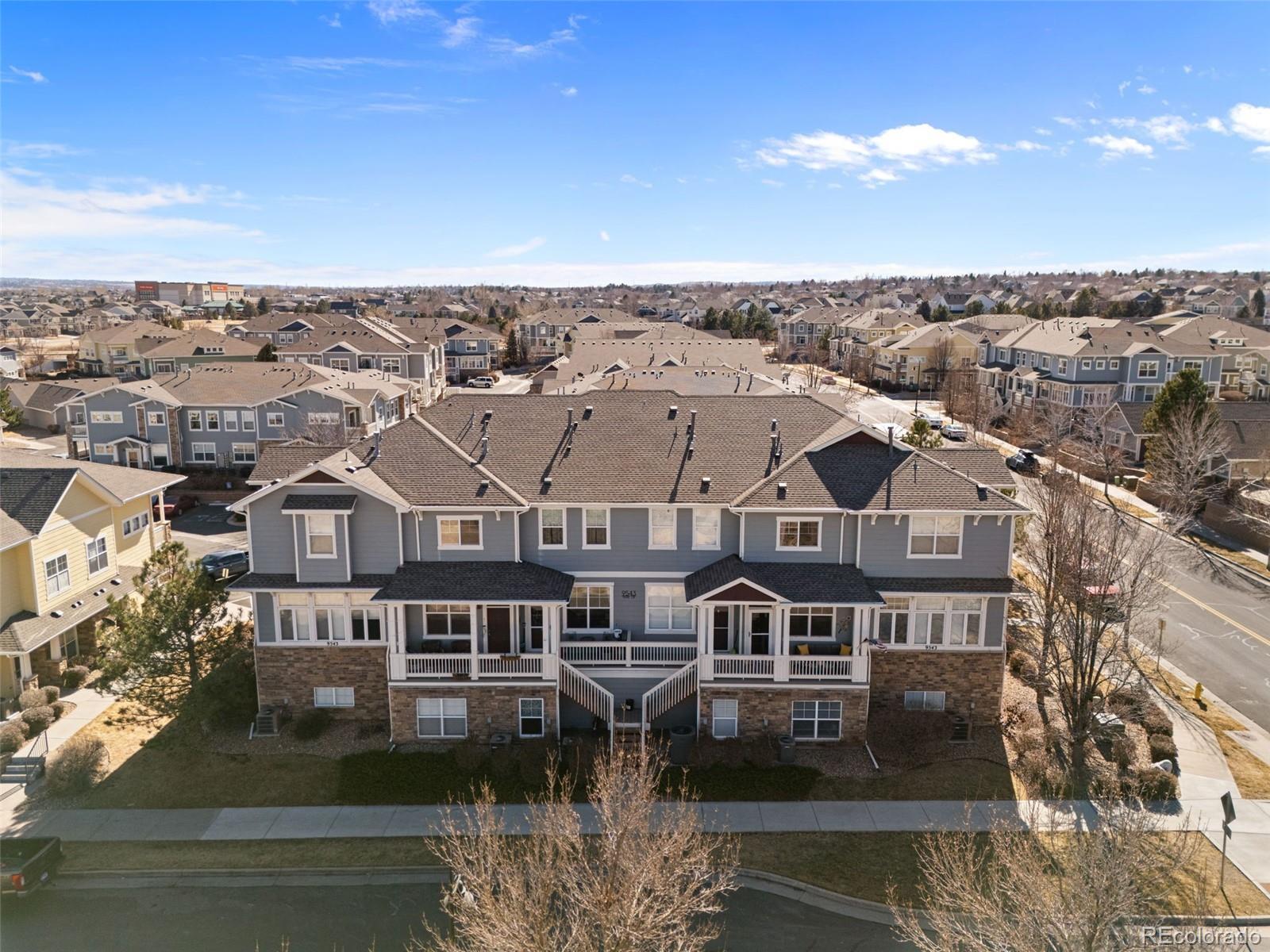 Welcome to Pearl Circle in the desirable Highlands at Stonegate community. This thoughtfully designed condominium offers 1,417 square feet of finished living space, featuring 3 bedrooms and 4 bathrooms across two upper levels plus a fully finished lower level. Step inside to an open and inviting main level complete with real wood flooring, tasteful tile, and a cozy fireplace in the living room. Once through the living room you are taken to the beautifully curated kitchen, where you will find butcher block counters, eat-in dining area, and generous storage space with soft close cabinetry and rollout shelving perfectly positioned for everyday living and entertaining. Just off the kitchen, you have access to a private deck, creating the ideal spot for morning coffee or evening relaxation. Upstairs, there are two spacious bedrooms each offering their own ensuite bathroom. The primary suite boasts a walk in closet providing ample storage for all seasons. The laundry area is conveniently located between the two upper bedrooms for added ease. The finished walk-out lower level includes a private guest suite with its own full bathroom. The lower level brings you into a two car tandem garage with plenty of room for tools and toys. The Stonegate neighborhood affords you access to three pools, hot tubs and plenty of walking paths. With quick access to E-470, getting around the metro is seamless making commutes to Denver Tech Center, Castle Rock, and downtown Denver refreshingly easy. Designed for ease and flexibility, this home is ideal for a true lock-and-leave lifestyle. Low maintenance living with grounds maintenance and snow removal means more time enjoying Colorado and less time worrying about upkeep — perfect for busy professionals, frequent travelers, or anyone who wants a simplified daily life without sacrificing location or comfort. Schedule your showing today, you’ll appreciate how effortless life feels here!