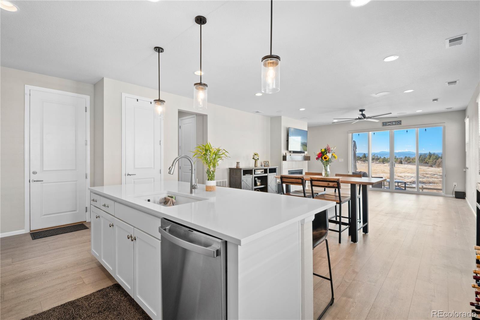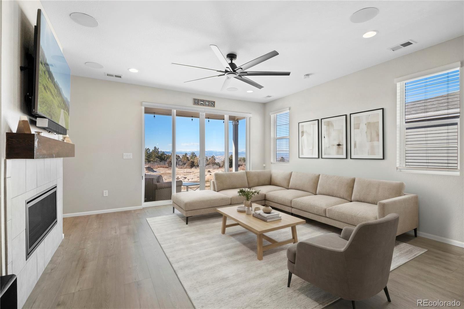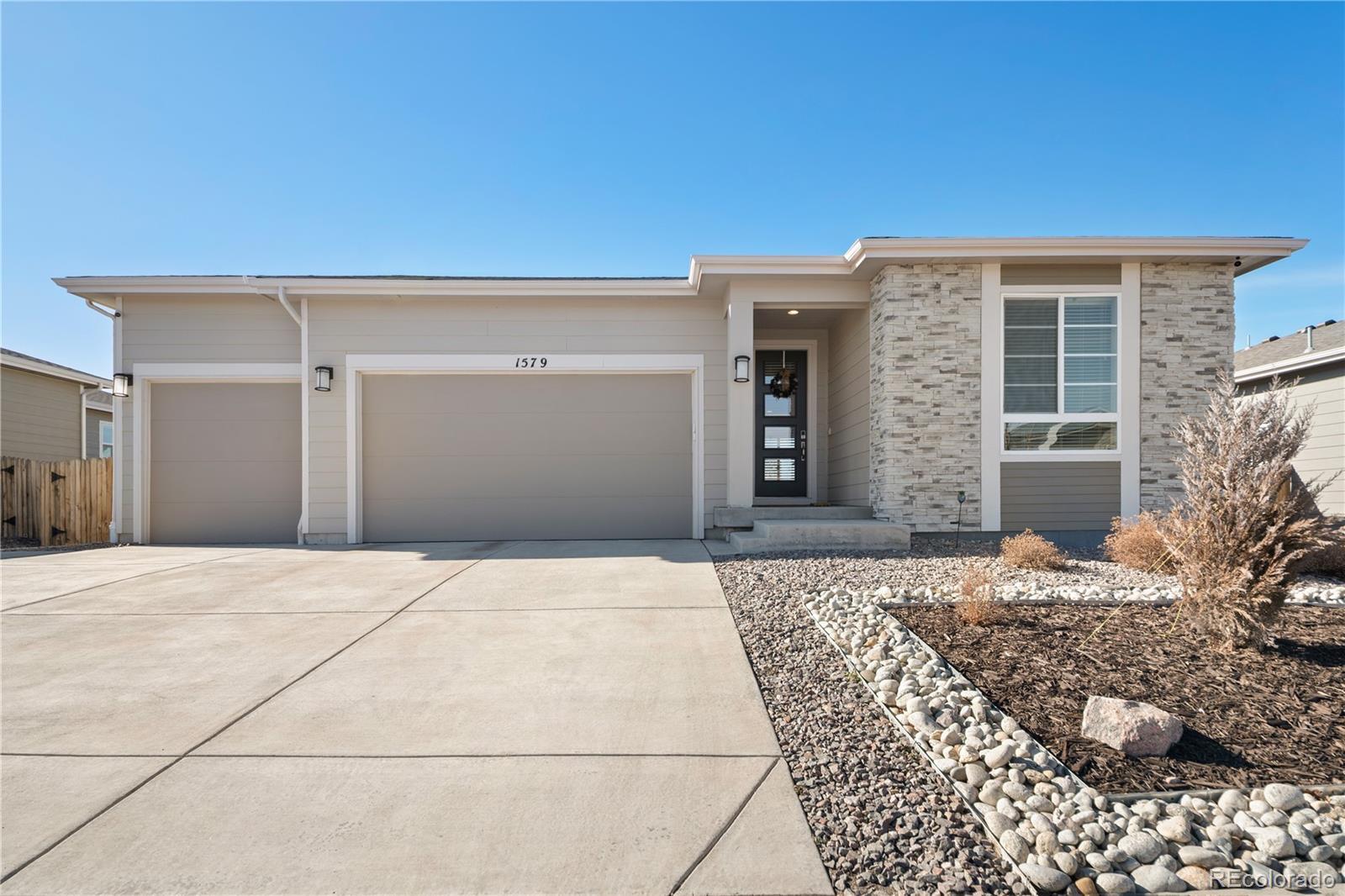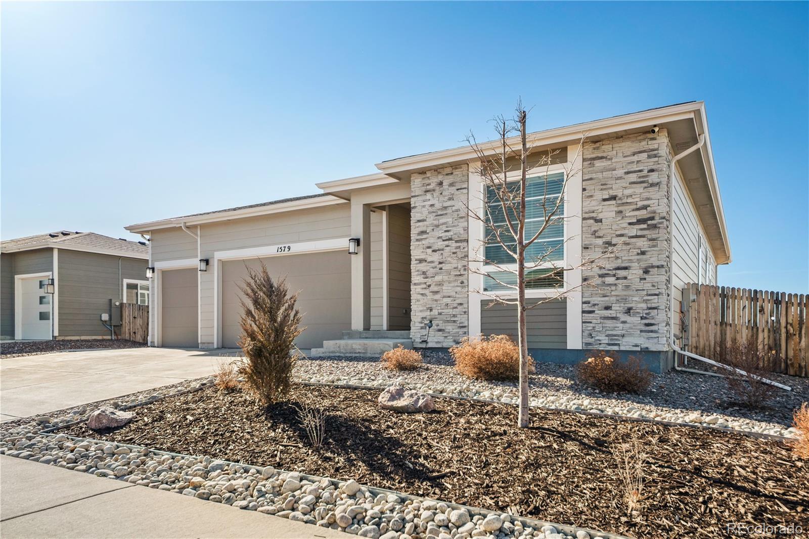 Sitting on a spacious lot with gorgeous, unobstructed mountain views, this ranch-style home offers 3 bedrooms plus an office, 2 bathrooms, and a roomy 3-car garage with a polyaspartic-coated garage floor. Built in 2021, its open, airy design is bathed in natural light and finished with upscale touches. The kitchen, featuring quartz countertops and stainless-steel appliances, centers around an island perfect for late-morning brunch. It flows easily into the dining area and living room, complete with a tiled fireplace and surround sound, making it great for entertaining. A large sliding glass door leads to a covered patio overlooking a big backyard with a hot tub and stunning scenery. The primary suite is a peaceful escape with a double vanity, walk-in shower, and direct hot tub access, while two additional bedrooms offer flexible space. Thoughtfully designed with ample storage. The low-maintenance zero-scape yard is ideal for a busy lifestyle, and you're just 10 minutes from downtown Castle Rock, with easy access to shopping, dining, and Festival Park events. Please Note: 1. A prospective tenant has the right to provide to the landlord a tenant screening report, as defined in section 38-12-902(2.5), Colorado Revised Statutes; and 2. If a prospective tenant provides the landlord with a portable tenant screening report, the landlord is prohibited from: Charging the prospective tenant a rental application fee; or Charging the prospective tenant a fee for the landlord to access or use the tenant screening report.