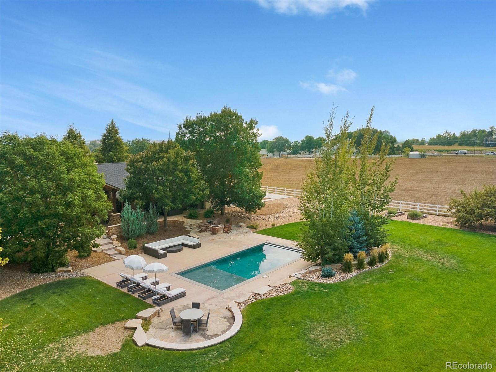 Stunning and fully renovated estate in the sought-after Coeur D’Alene neighborhood in South Fort Collins! This 5-bed, 4-bath home sits on 1.27 acres and blends luxurious updates with everyday comfort. On the main level, you’ll find the primary suite with a dual-sided walk-in closet featuring custom storage for two, as well as a large mudroom, bonus room, and office nook. The chef’s kitchen features an eat-in dining space, walk-in pantry, custom cabinetry and vast functional storage surrounding a massive island for entertaining. The finished basement includes a newly added kitchenette, additional family room, updated flooring, and three large bedrooms. Natural light floods the spacious interior through oversized windows, and breathtaking views of the Rocky Mountains. Step outside to your private backyard oasis, complete with a sparkling in-ground pool, hot tub, fire pit, and multiple seating areas — ideal for Colorado evenings under the stars. Enjoy the privacy and tranquility of mature landscaping and open space while still being minutes from Fort Collins amenities. The expansive garage offers built-in storage, a dedicated workspace, Epoxy floors, heating and cooling, and even a private bathroom — combining function and convenience for projects, hobbies, and storage. This turnkey home is a rare gem with thoughtful updates inside and out — don’t miss it!