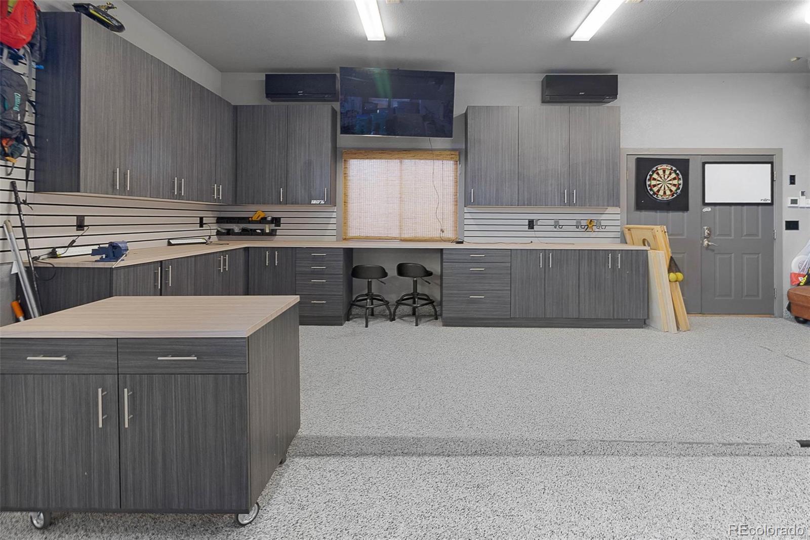 Concrete, Exterior Access Door, Finished Garage, Floor Coating, Heated Garage, Lighted, Storage