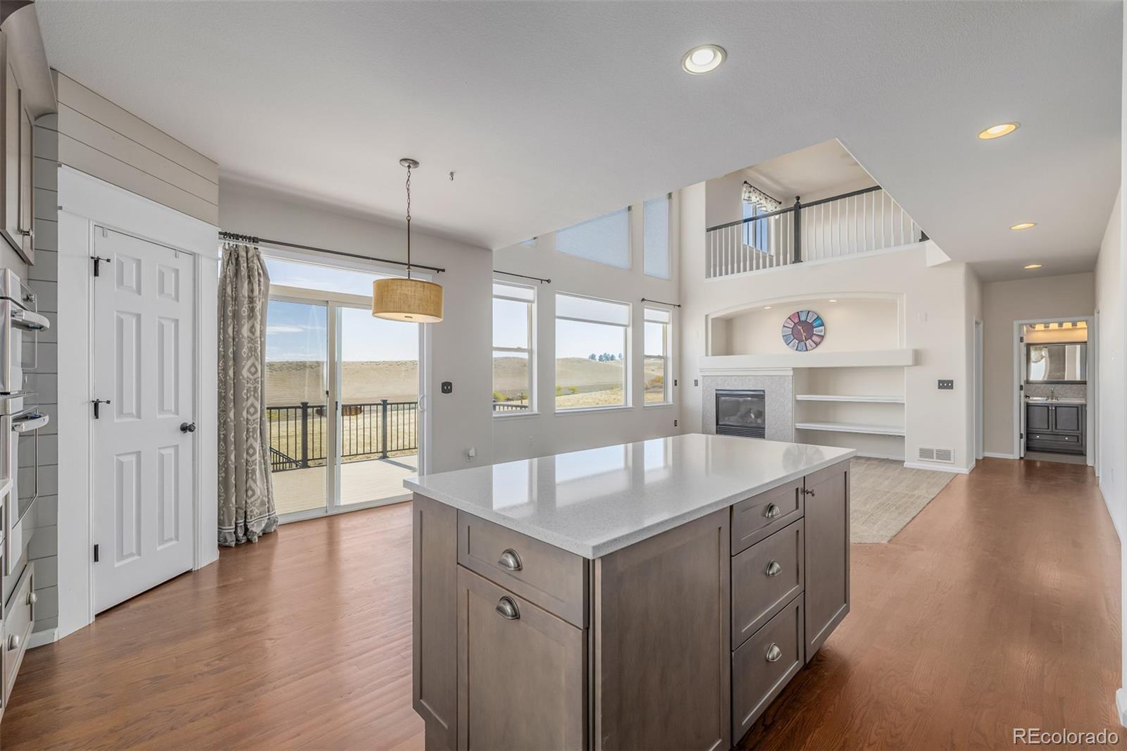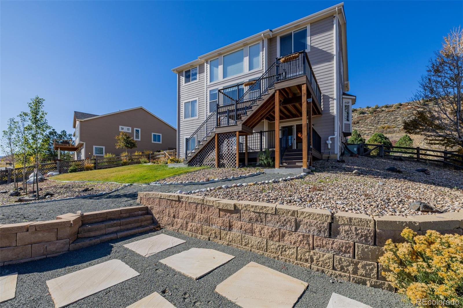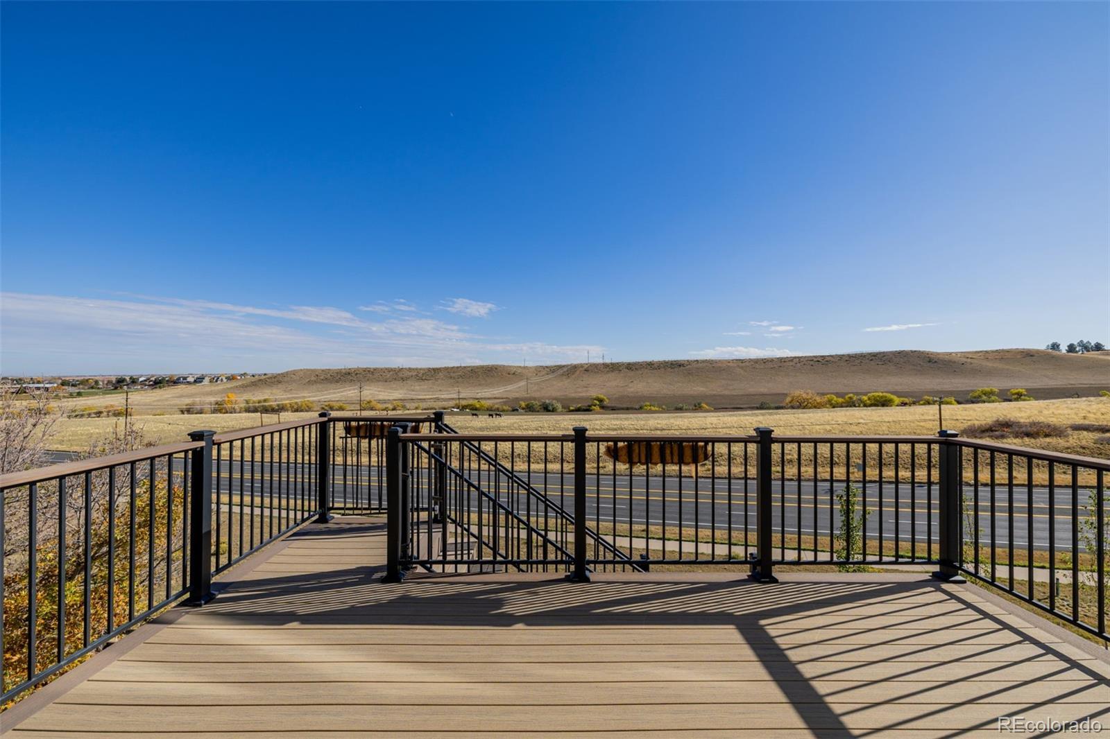 Get ready to enjoy the best Colorado has to offer the most breathtaking view of the foothills while being immersed in nature. This stunning 5-bed 4-bath home is divinely located in Roxborough Ridge! Step inside to a bright, open floor plan featuring a fully remodeled eat-in kitchen with beautiful quartz countertops, a custom backsplash, soft-close cabinetry, custom walk-in pantry, 5-burner gas range, oven, and stainless-steel appliances. The main level includes a spacious family room, guest bedroom, ¾ bath with step-in shower, plus an additional living area, and laundry/mudroom with a large built-in folding counter and storage cabinets. This home features $150k in high-end upgrades. Upstairs, retreat to the primary suite with breathtaking views and an enormous walk-in closet with a custom island. Step into your luxurious five-piece private en suite bath that has a large custom vanity with concrete countertop and a custom dual mirror with shelving and storage. The upper level also offers a generous loft, two additional bedrooms, and another full bath. The fully finished walkout basement is an entertainer’s dream—featuring a media room (theatre equipment and furniture included!), wet bar that can easily convert to a kitchenette, additional living area, large bedroom, and full bath. Enjoy the Colorado sunsets on your two-level deck, fresh landscaping, and new sod in both the front and back yards. A newer driveway and updated rockwork complete this exceptional exterior. These thoughtful updates take this home from special to spectacular. With a Home Warranty included, this is the perfect place to call home in one of Littleton’s most scenic neighborhoods. Nestled in nature near located near Roxborough State Park, Deirdre Meyer Park, Arrowhead Golf Course, Sharptail Ridge Open Space, many walking trails plus grocery and dining options.