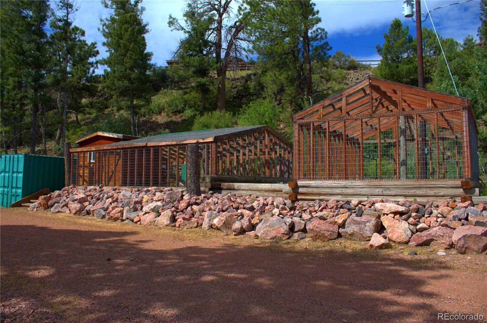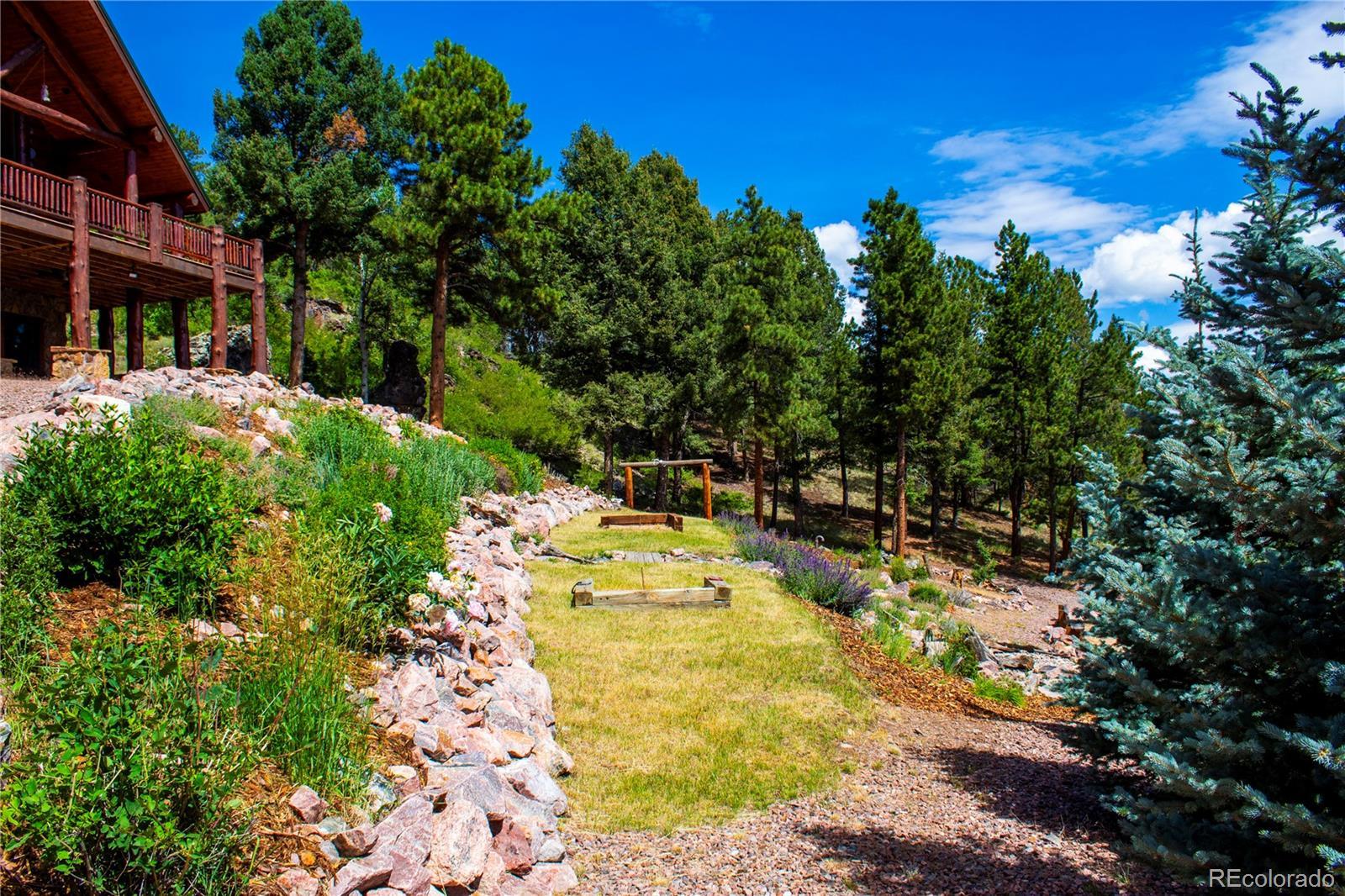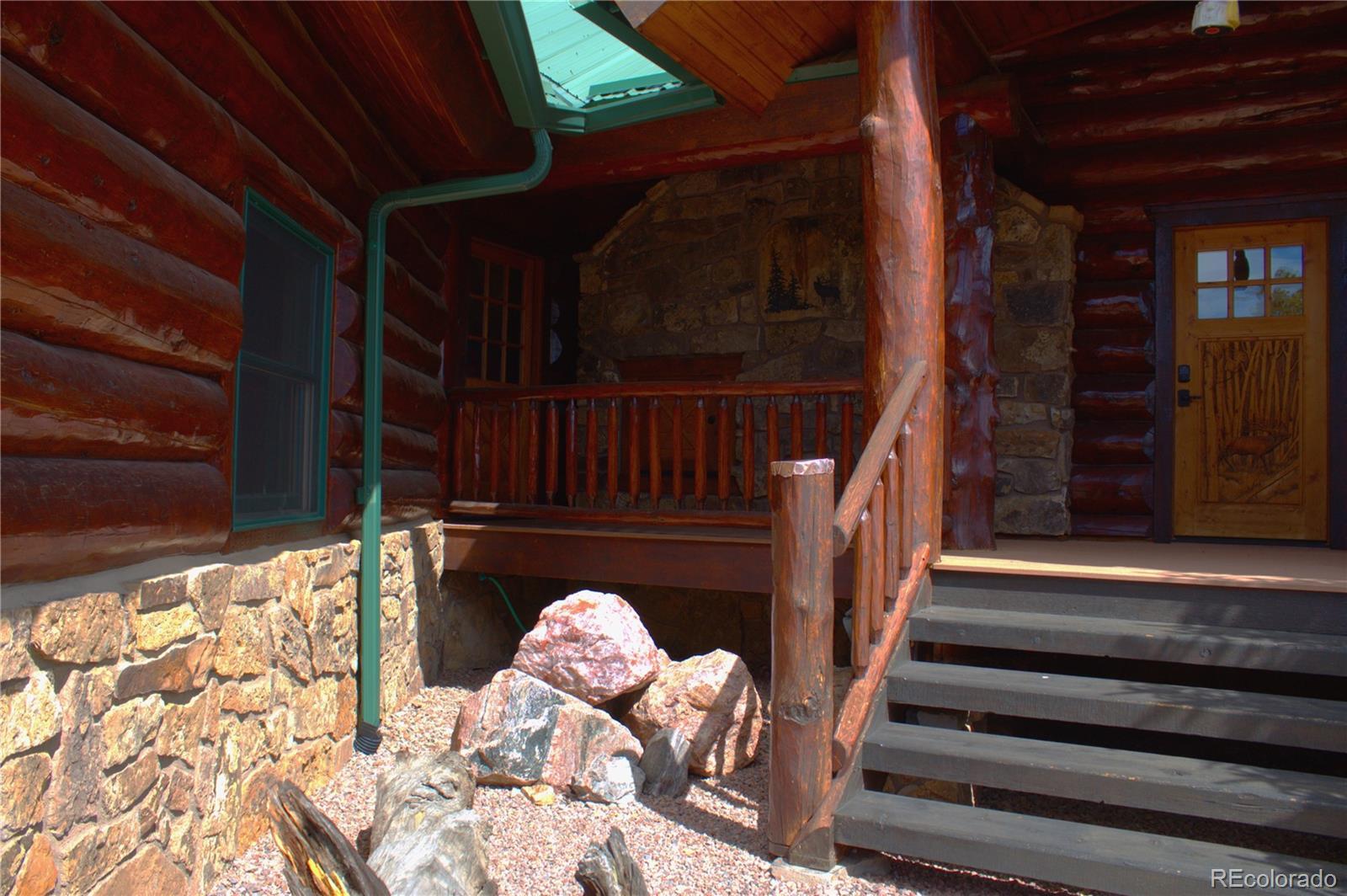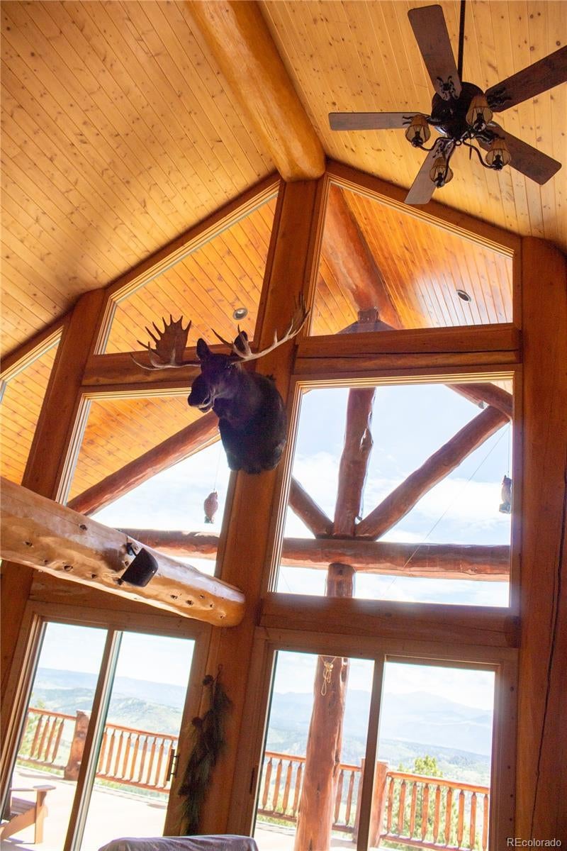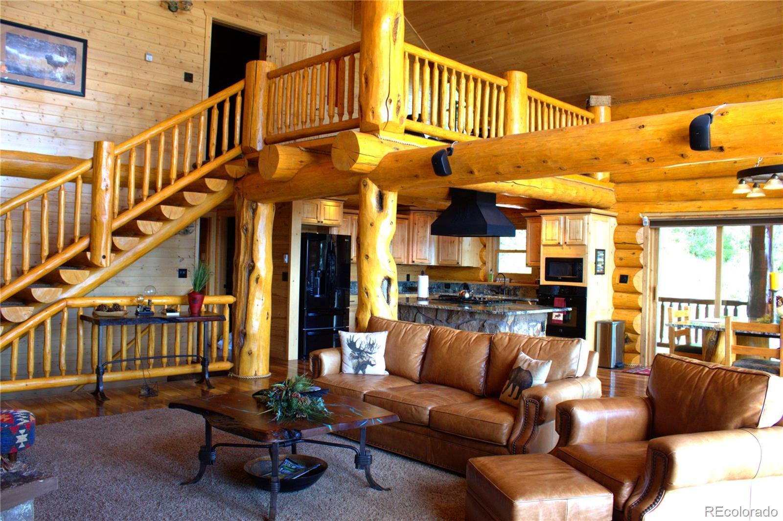 Spectacular Mtn Ranch on over 202 acres! 60 miles W of Colorado Springs! This magnificent log home Is perfectly designed around the landscape of 202 Deeded acres and includes an additional 640 acres of state lease for your private recreation and hunting pleasures! Plentiful, trophy deer, elk and turkey only 25 minutes to gold medal fishing! 3BR, 4 BA mountain paradise! The main floor great room boasts vaulted ceilings with gorgeous log beams and plenty of open space to showcase your trophy mounts. The focal point is a beautiful stone WB, FP featuring an incredible mantle with etched wildlife scene in the stone! A gourmet kitchen with extended walk in pantry! Granite countertops, stainless steel appliances, island with 5 burner gas cooktop/custom hood with an eat in dining area.Main floor laundry area and powder room from garage entry. This main area is completed by a guest bedroom suite that is reminiscent of a luxury Colorado cabin! WO main floor to wrap around deck with hot tub area and absolutely breathtaking views of the 640 acre valley and Pikes Peak! The entire upstairs is dedicated to a loft office area and master suite with all the amenities! The 5 piece master bath is gorgeous with custom tile wildlife scene in the shower, wall mounted TV, and a , walk in, cedar closet! On to the walk out lower level! This is a man cave like no other! Massive fireplace with built in gun cabinets on either side, a full bar for entertaining, mounted TVs for all to view! Reloading room that will “blow” your mind! The third and final bedroom and a full bath in the hall finish the space off perfectly! There are many more details regarding numerous features! Huge garage with built-in workbenches with plenty of room for everything! Great pastures, outbuildings, green houses, and a shop that every man dreams of! The shop also houses a kitchen for processing food and wildlife! Call today, this place is One Of A Kind and will not last, nor can it be replicated for the asking price!