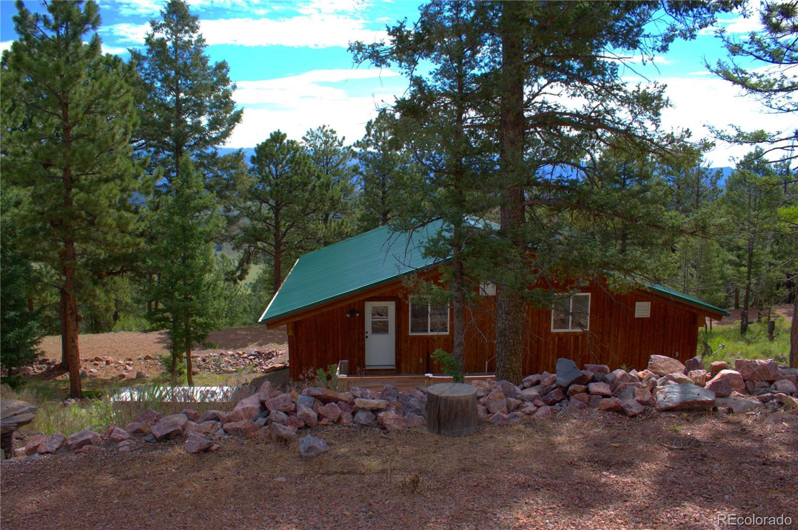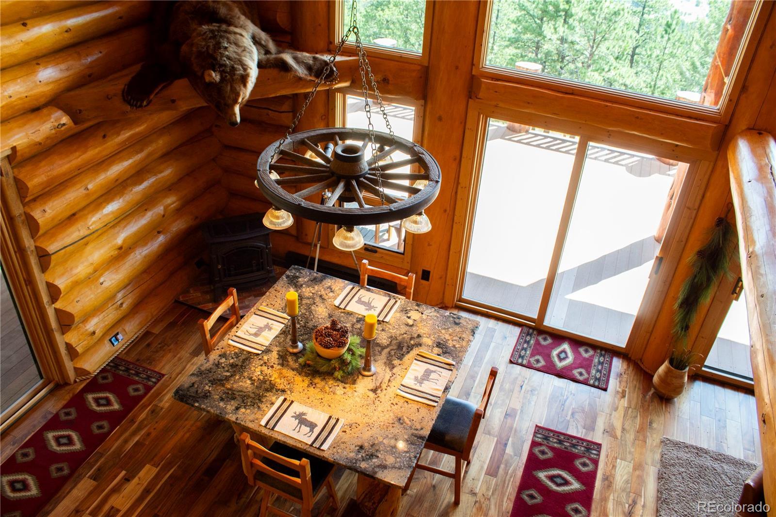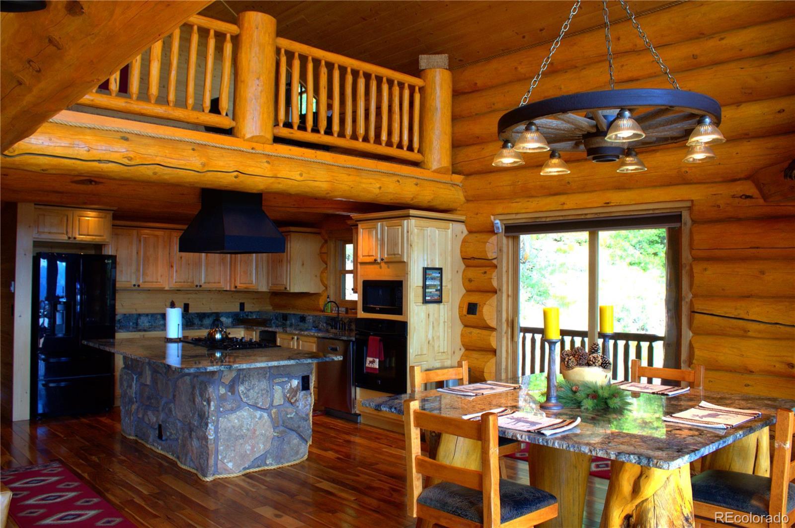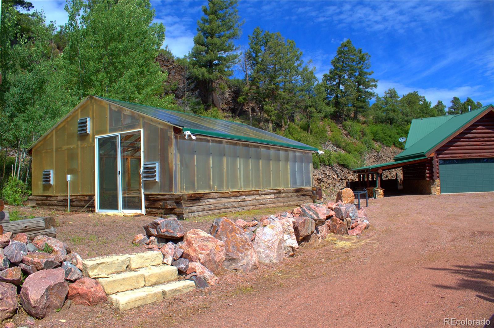 Spectacular Mtn Ranch on over 202 acres! 60 miles W of Colorado Springs! This magnificent log home Is perfectly designed around the landscape of 202 Deeded acres and includes an additional 640 acres of state lease for your private recreation and hunting pleasures! Plentiful, trophy deer, elk and turkey only 25 minutes to gold medal fishing! 3BR, 4 BA mountain paradise! The main floor great room boasts vaulted ceilings with gorgeous log beams and plenty of open space to showcase your trophy mounts. The focal point is a beautiful stone WB, FP featuring an incredible mantle with etched wildlife scene in the stone! A gourmet kitchen with extended walk in pantry! Granite countertops, stainless steel appliances, island with 5 burner gas cooktop/custom hood with an eat in dining area.Main floor laundry area and powder room from garage entry. This main area is completed by a guest bedroom suite that is reminiscent of a luxury Colorado cabin! WO main floor to wrap around deck with hot tub area and absolutely breathtaking views of the 640 acre valley and Pikes Peak! The entire upstairs is dedicated to a loft office area and master suite with all the amenities! The 5 piece master bath is gorgeous with custom tile wildlife scene in the shower, wall mounted TV, and a , walk in, cedar closet! On to the walk out lower level! This is a man cave like no other! Massive fireplace with built in gun cabinets on either side, a full bar for entertaining, mounted TVs for all to view! Reloading room that will “blow” your mind! The third and final bedroom and a full bath in the hall finish the space off perfectly! There are many more details regarding numerous features! Huge garage with built-in workbenches with plenty of room for everything! Great pastures, outbuildings, green houses, and a shop that every man dreams of! The shop also houses a kitchen for processing food and wildlife! Call today, this place is One Of A Kind and will not last, nor can it be replicated for the asking price!