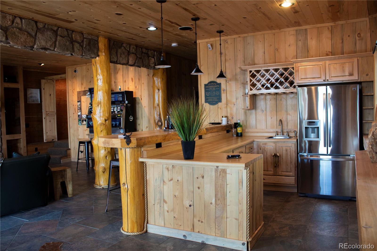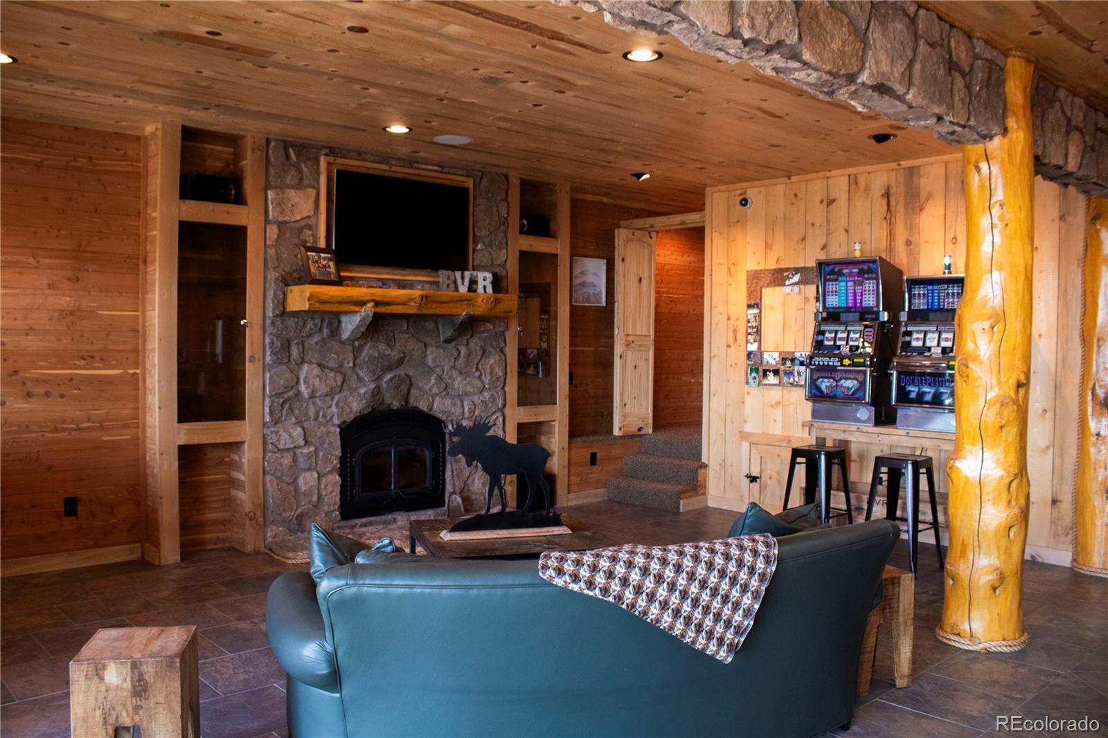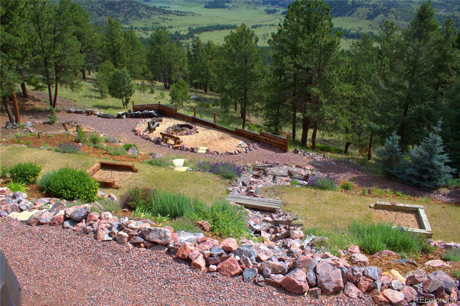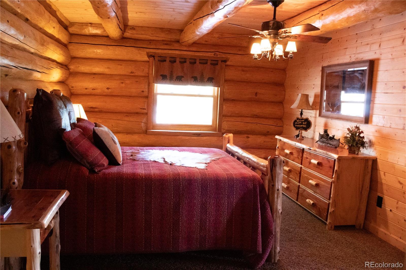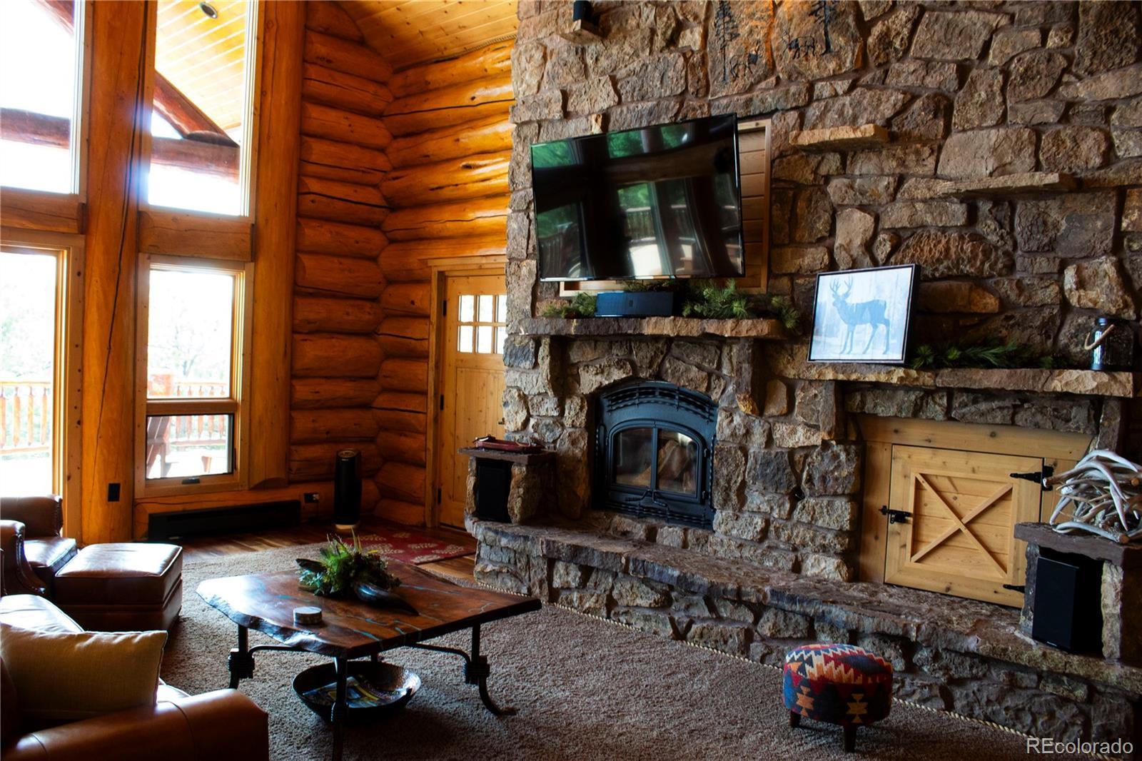 Spectacular Mtn Ranch on over 202 acres! 60 miles W of Colorado Springs! This magnificent log home Is perfectly designed around the landscape of 202 Deeded acres and includes an additional 640 acres of state lease for your private recreation and hunting pleasures! Plentiful, trophy deer, elk and turkey only 25 minutes to gold medal fishing! 3BR, 4 BA mountain paradise! The main floor great room boasts vaulted ceilings with gorgeous log beams and plenty of open space to showcase your trophy mounts. The focal point is a beautiful stone WB, FP featuring an incredible mantle with etched wildlife scene in the stone! A gourmet kitchen with extended walk in pantry! Granite countertops, stainless steel appliances, island with 5 burner gas cooktop/custom hood with an eat in dining area.Main floor laundry area and powder room from garage entry. This main area is completed by a guest bedroom suite that is reminiscent of a luxury Colorado cabin! WO main floor to wrap around deck with hot tub area and absolutely breathtaking views of the 640 acre valley and Pikes Peak! The entire upstairs is dedicated to a loft office area and master suite with all the amenities! The 5 piece master bath is gorgeous with custom tile wildlife scene in the shower, wall mounted TV, and a , walk in, cedar closet! On to the walk out lower level! This is a man cave like no other! Massive fireplace with built in gun cabinets on either side, a full bar for entertaining, mounted TVs for all to view! Reloading room that will “blow” your mind! The third and final bedroom and a full bath in the hall finish the space off perfectly! There are many more details regarding numerous features! Huge garage with built-in workbenches with plenty of room for everything! Great pastures, outbuildings, green houses, and a shop that every man dreams of! The shop also houses a kitchen for processing food and wildlife! Call today, this place is One Of A Kind and will not last, nor can it be replicated for the asking price!