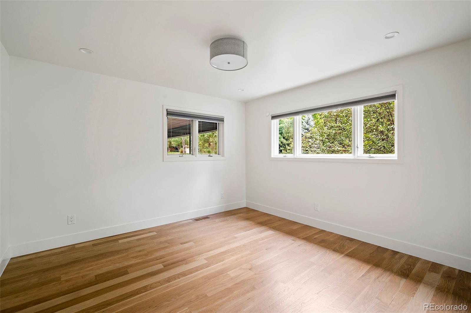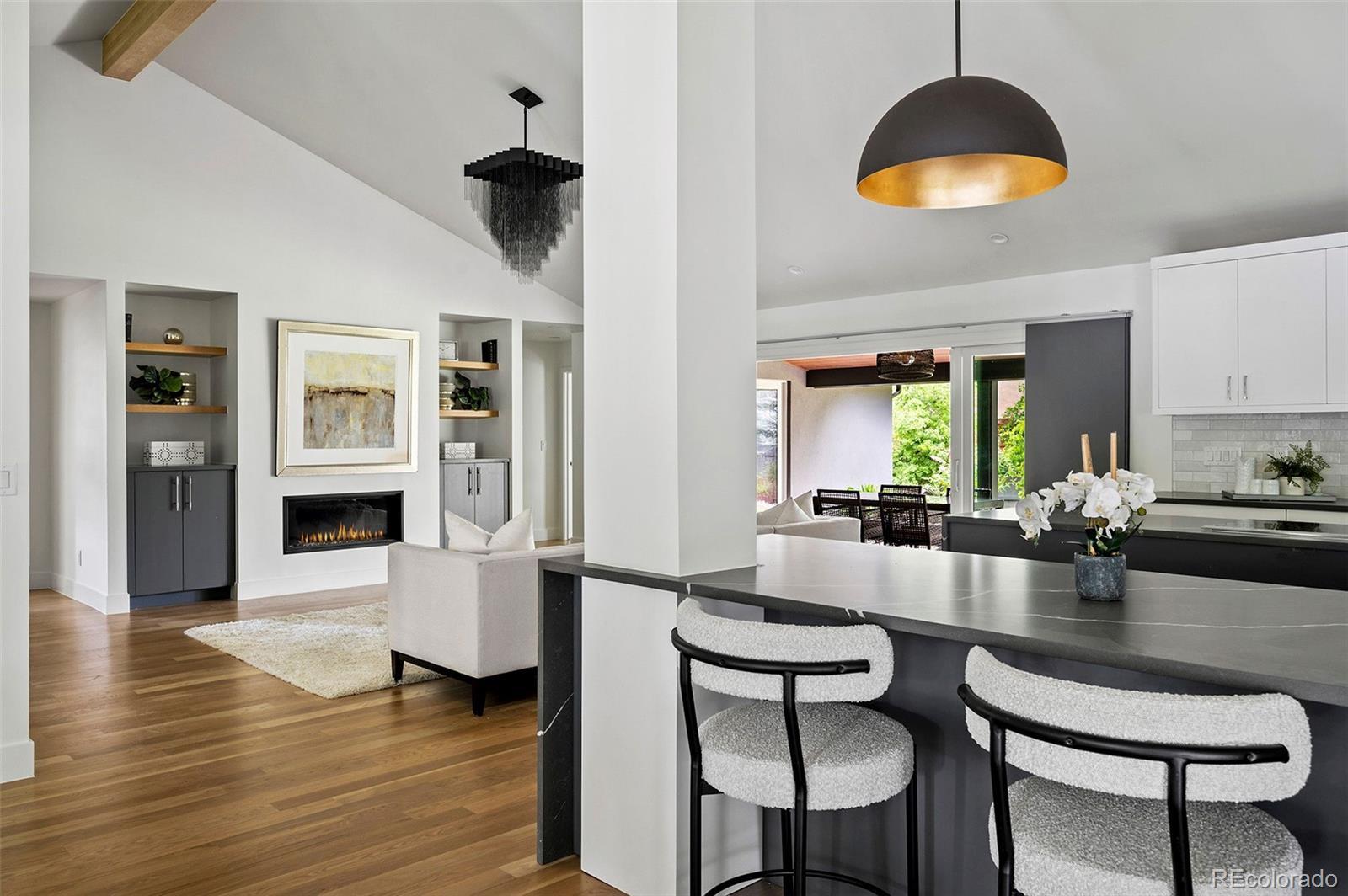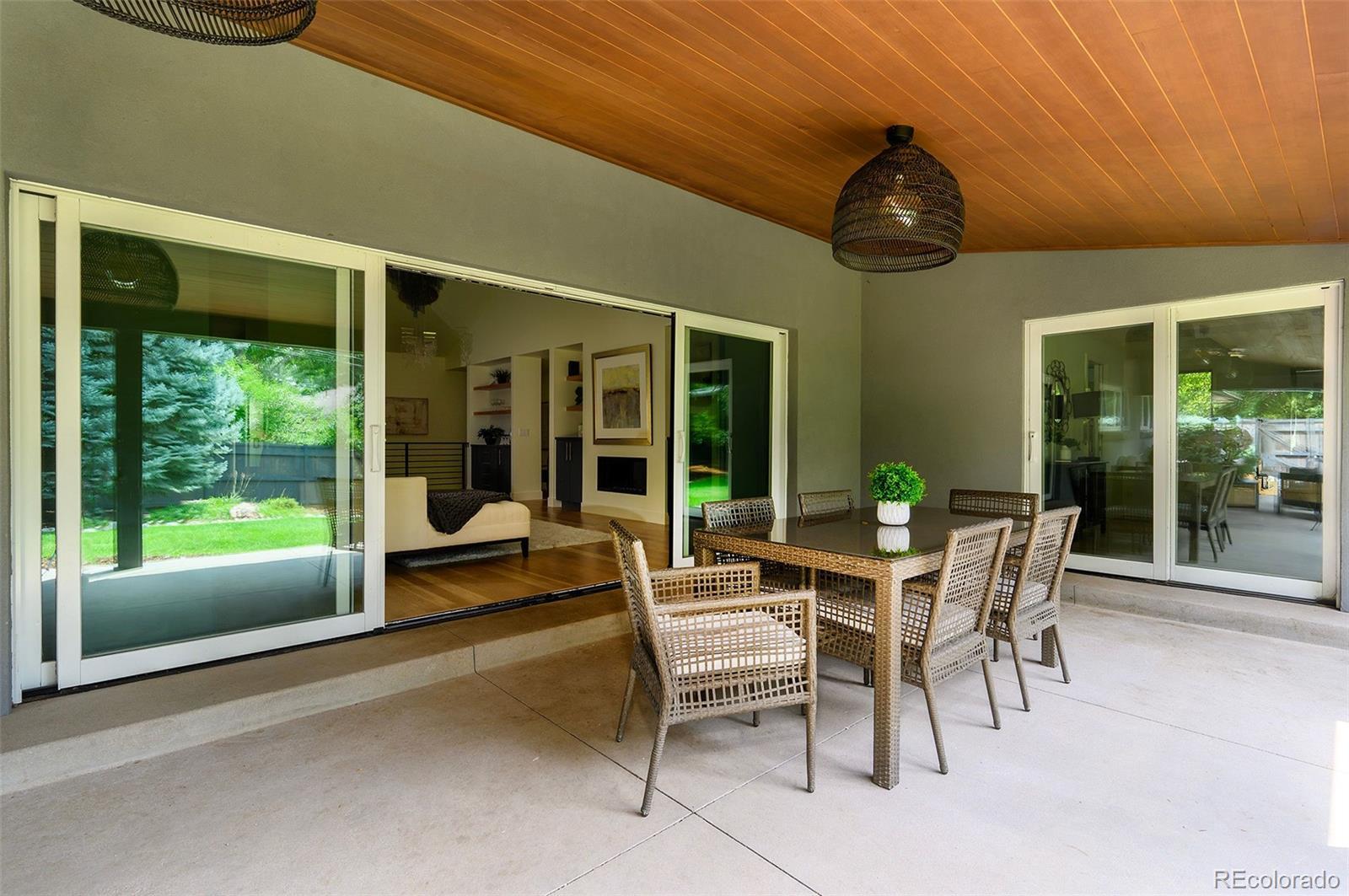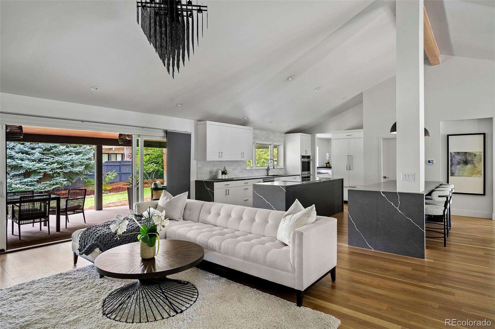 This is an elegant modern ranch home in Cherry Hills Village that was fully renovated to the studs and meticulously designed. The floor plan was completely altered from the original framing to have soaring valued ceilings, spacious flow, and an ensuite bathrooms for all 5 bedrooms. The family room seamlessly connects to the patio and kitchen, creating an exceptional entertainment area suitable for hosting gatherings, whether large or intimate. The office is a bright and inspiring space, flooded with natural light from expansive windows and adorned with a show stopping accent wall. It also includes a private bathroom and can easily be converted into the fourth main-floor bedroom if desired. The primary bedroom is a tranquil sanctuary, opening to a charming covered patio and a 5-piece bathroom that is a work of art, featuring an elegant wet room, high end toilet and a spacious closet that even includes a washer and dryer. Downstairs, the garden-level windows fill the basement great room and bar with sunlight, making it an inviting space for guests or family. This area even includes a bedroom, bathroom, and full bar. The private and peaceful backyard serves as a tranquil oasis, making this property the perfect retreat. This home also boasts a new tankless water heater, AC, and furnace, brought to current code standards. This home is owned by a non-profit organization, and all proceeds from the sale will benefit the Butterfly Foundation (coloradobutterflyfoundation.org)
