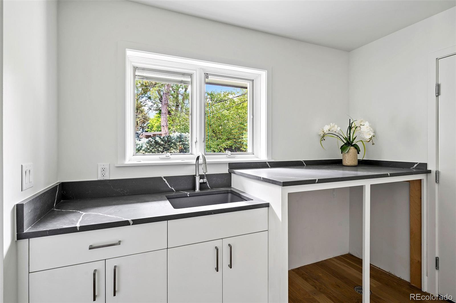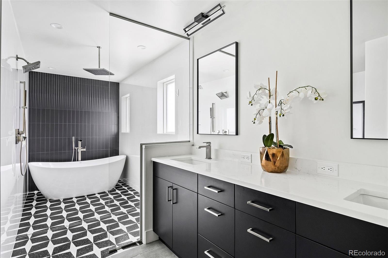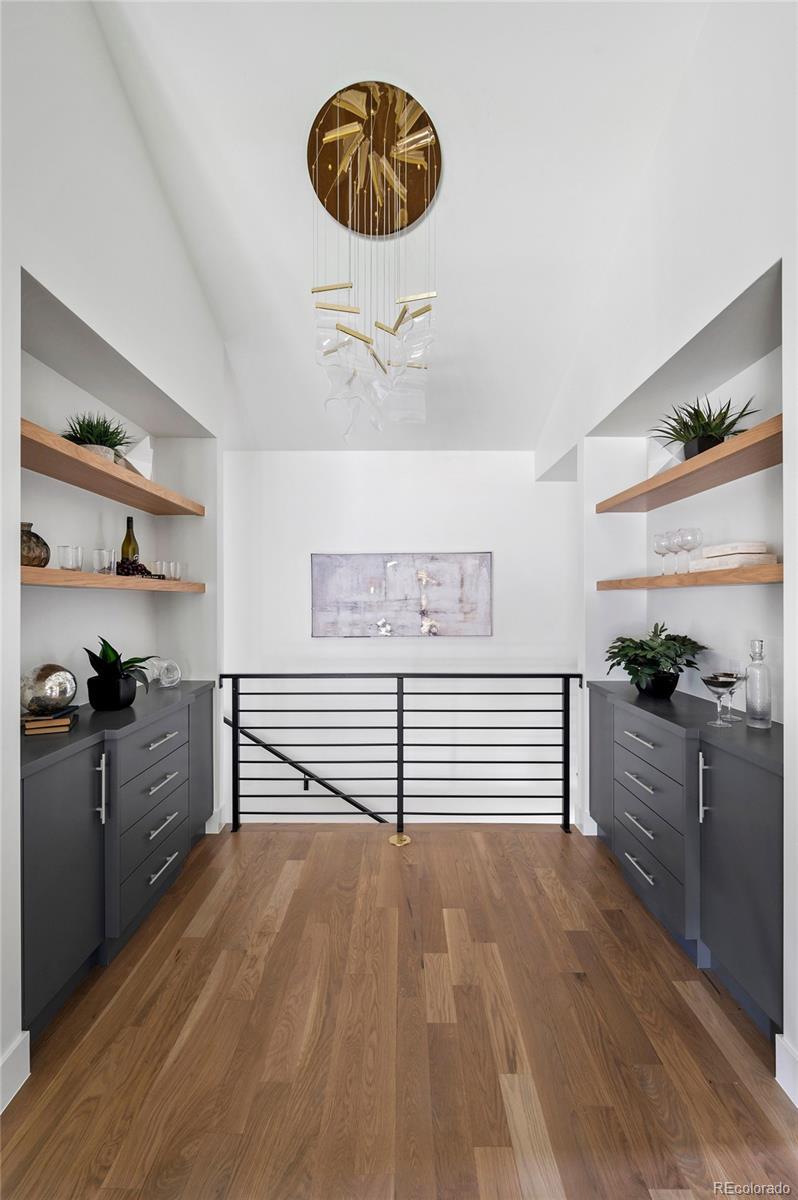 This is an elegant modern ranch home in Cherry Hills Village that was fully renovated to the studs and meticulously designed. The floor plan was completely altered from the original framing to have soaring valued ceilings, spacious flow, and an ensuite bathrooms for all 5 bedrooms. The family room seamlessly connects to the patio and kitchen, creating an exceptional entertainment area suitable for hosting gatherings, whether large or intimate. The office is a bright and inspiring space, flooded with natural light from expansive windows and adorned with a show stopping accent wall. It also includes a private bathroom and can easily be converted into the fourth main-floor bedroom if desired. The primary bedroom is a tranquil sanctuary, opening to a charming covered patio and a 5-piece bathroom that is a work of art, featuring an elegant wet room, high end toilet and a spacious closet that even includes a washer and dryer. Downstairs, the garden-level windows fill the basement great room and bar with sunlight, making it an inviting space for guests or family. This area even includes a bedroom, bathroom, and full bar. The private and peaceful backyard serves as a tranquil oasis, making this property the perfect retreat. This home also boasts a new tankless water heater, AC, and furnace, brought to current code standards. This home is owned by a non-profit organization, and all proceeds from the sale will benefit the Butterfly Foundation (coloradobutterflyfoundation.org)