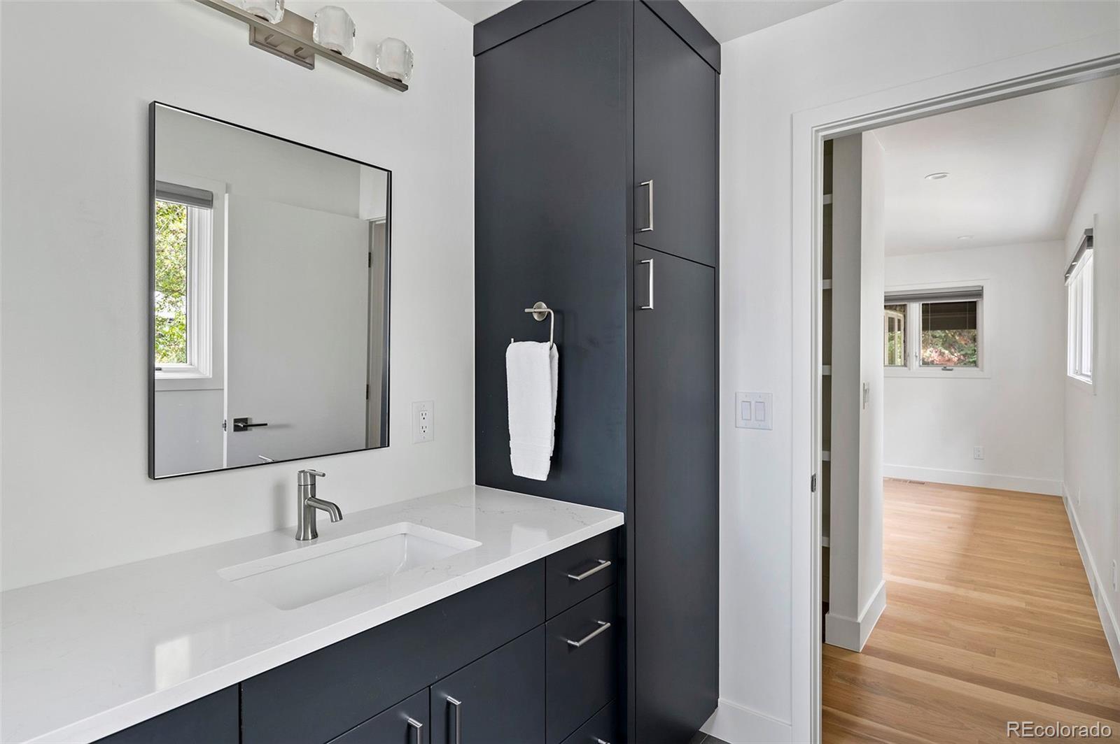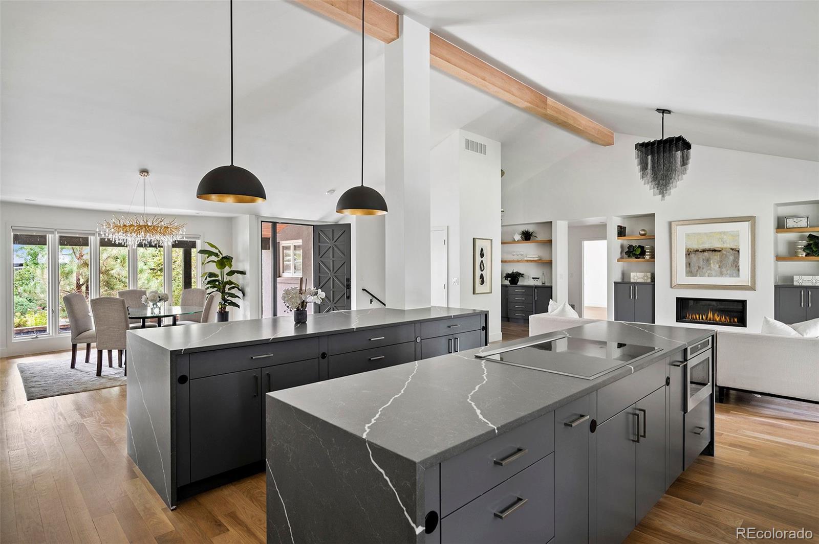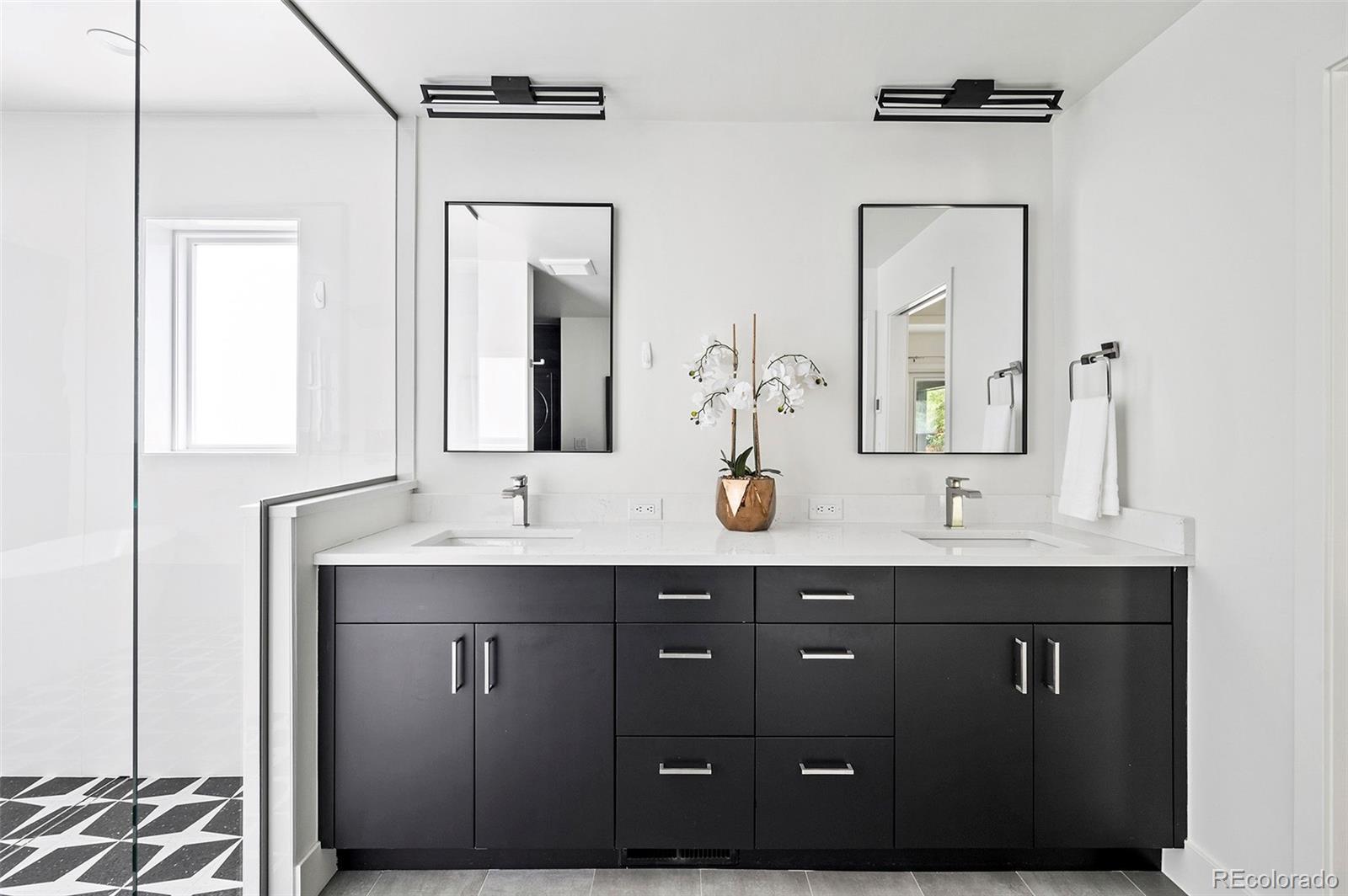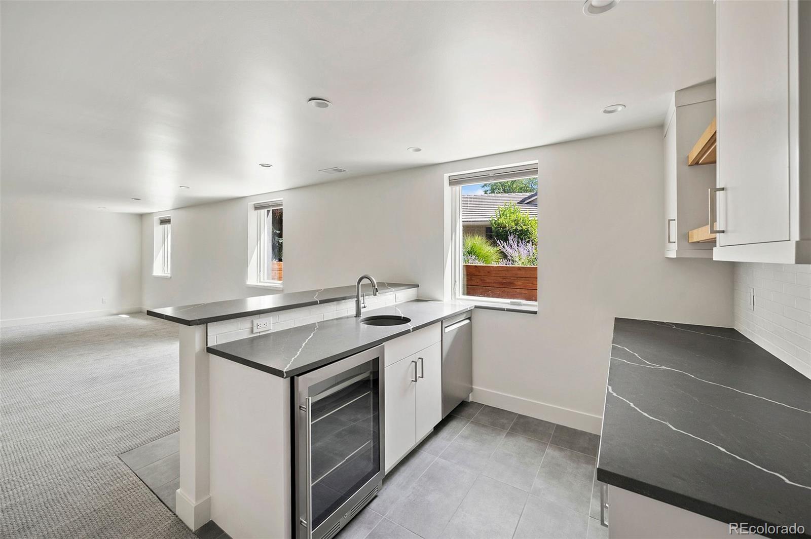 This is an elegant modern ranch home in Cherry Hills Village that was fully renovated to the studs and meticulously designed. The floor plan was completely altered from the original framing to have soaring valued ceilings, spacious flow, and an ensuite bathrooms for all 5 bedrooms. The family room seamlessly connects to the patio and kitchen, creating an exceptional entertainment area suitable for hosting gatherings, whether large or intimate. The office is a bright and inspiring space, flooded with natural light from expansive windows and adorned with a show stopping accent wall. It also includes a private bathroom and can easily be converted into the fourth main-floor bedroom if desired. The primary bedroom is a tranquil sanctuary, opening to a charming covered patio and a 5-piece bathroom that is a work of art, featuring an elegant wet room, high end toilet and a spacious closet that even includes a washer and dryer. Downstairs, the garden-level windows fill the basement great room and bar with sunlight, making it an inviting space for guests or family. This area even includes a bedroom, bathroom, and full bar. The private and peaceful backyard serves as a tranquil oasis, making this property the perfect retreat. This home also boasts a new tankless water heater, AC, and furnace, brought to current code standards. This home is owned by a non-profit organization, and all proceeds from the sale will benefit the Butterfly Foundation (coloradobutterflyfoundation.org)