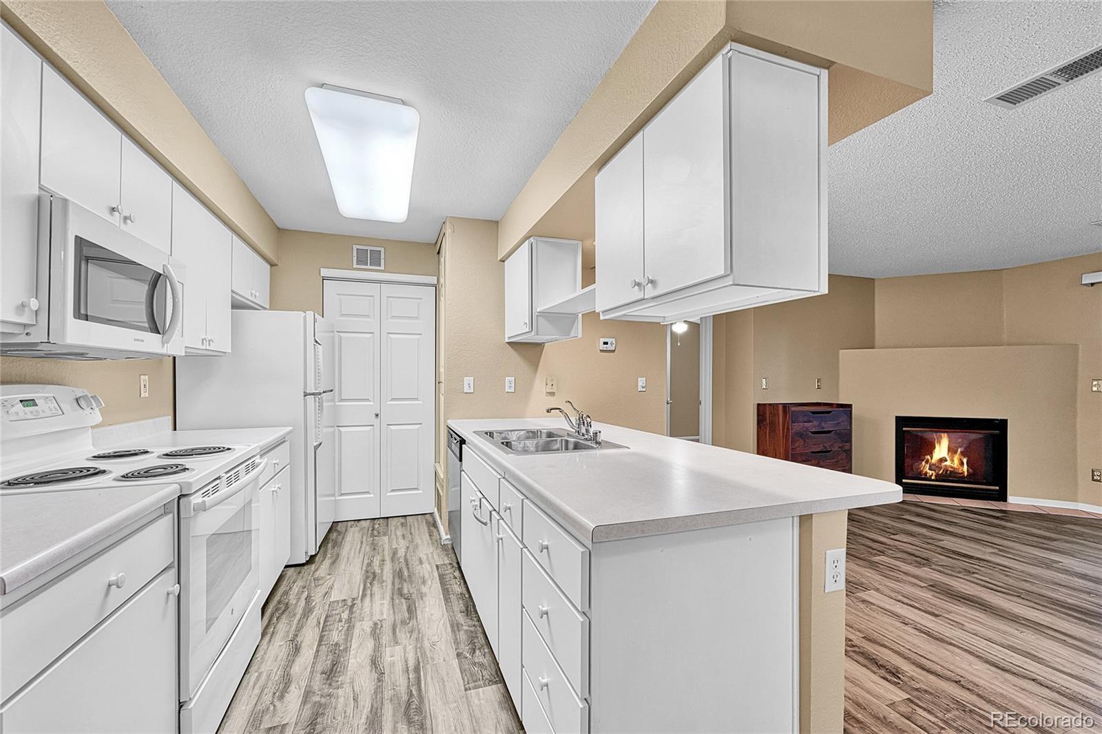 Welcome to your charming new home—this inviting condo offers unbeatable access to nearby parks and scenic trails! Step inside to a bright, open-concept layout, freshly repainted with freshly cleaned carpet in both bedrooms. The spacious living room features a cozy gas fireplace and opens to a large, private patio backing to peaceful open space. Enjoy the comfort of dual primary suites, each with its own en suite bath and walk-in closet. Additional highlights include central A/C, in-unit laundry, and stylish vinyl flooring throughout the main living areas. Come see it in person! Please contact Elizabeth Voorhees for any questions regarding the property. (303-570-3394)