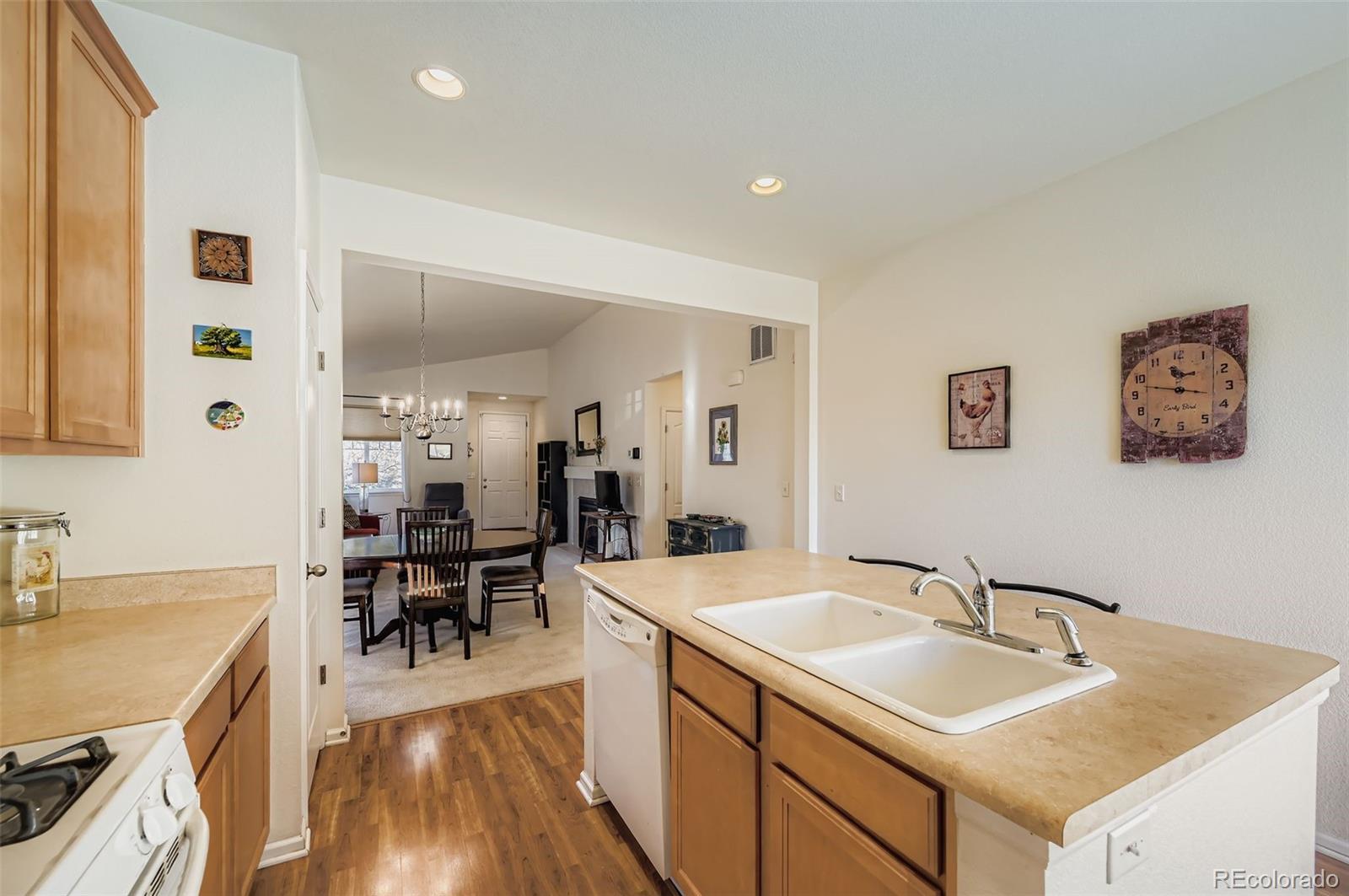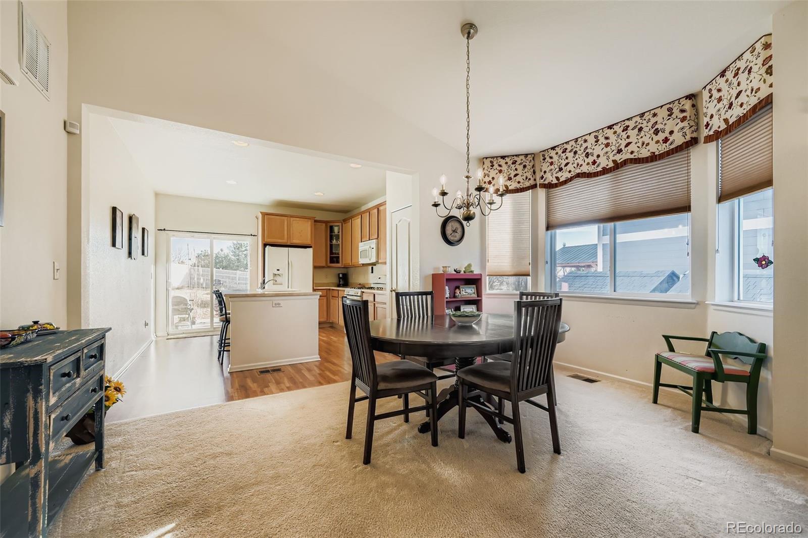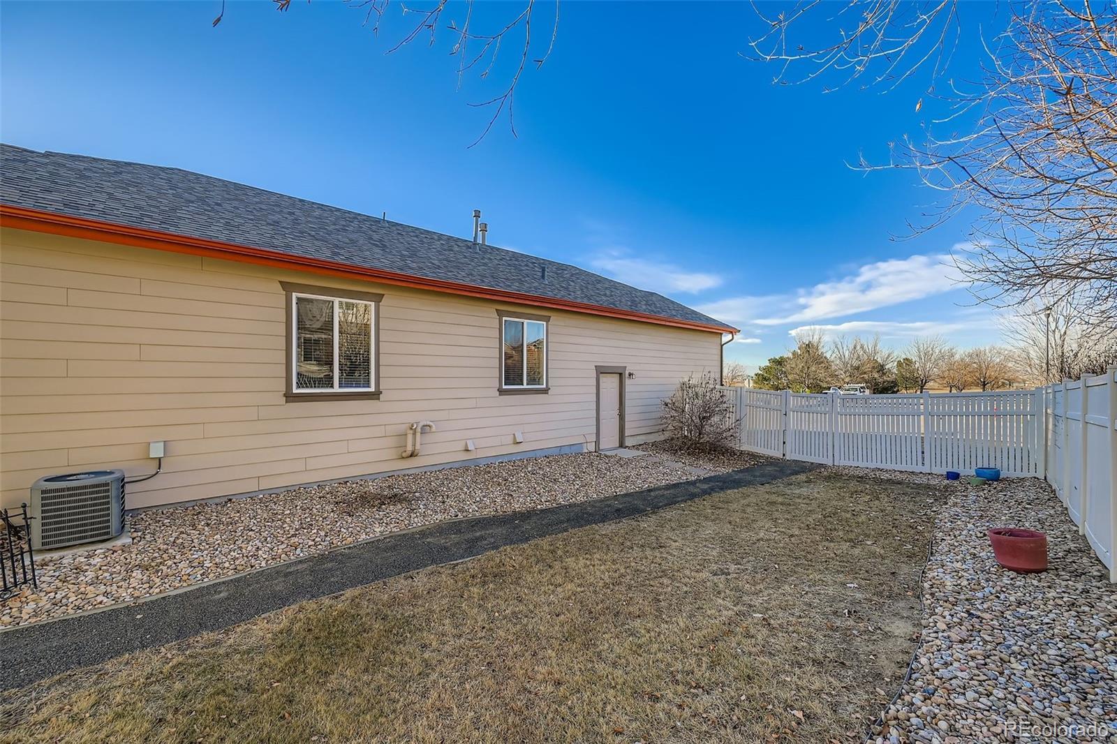 Well-maintained and loved original owner ranch-style home offering the best in comfortable, one-level living. Enjoy beautiful Front Range, walking path, and farmland views from the inviting front porch and large living room windows. The open floor plan is bathed in natural light and features vaulted ceilings in the main living area, creating a bright and welcoming atmosphere. The home offers three generously sized bedrooms and two bathrooms, along with a cozy gas fireplace that anchors the living space. A spacious formal dining room with a bay window bump-out provides an ideal setting for gatherings and showcases additional Front Range views. The open kitchen is thoughtfully designed with an island offering seating space for stools, a gas range, ample cabinetry, and seamless flow into the dining and living areas—perfect for both everyday living and entertaining. Front Range views can be enjoyed from the dining room, living room, and backyard. An oversized two-car garage includes a removable ramp that allows for full handicap accessibility if needed. Additional features include luxury vinyl flooring, widened hallways and doorways, and an oversized primary shower with a built-in bench. Recent updates include a new roof installed in August 2023 and a new water heater in 2024. Turnkey and move-in ready, this home offers the opportunity to create your own Colorado sanctuary, ideally located near Firestone amenities such as the 5+ mile Firestone Trail, multiple golf courses, shopping, a regional library, and more.