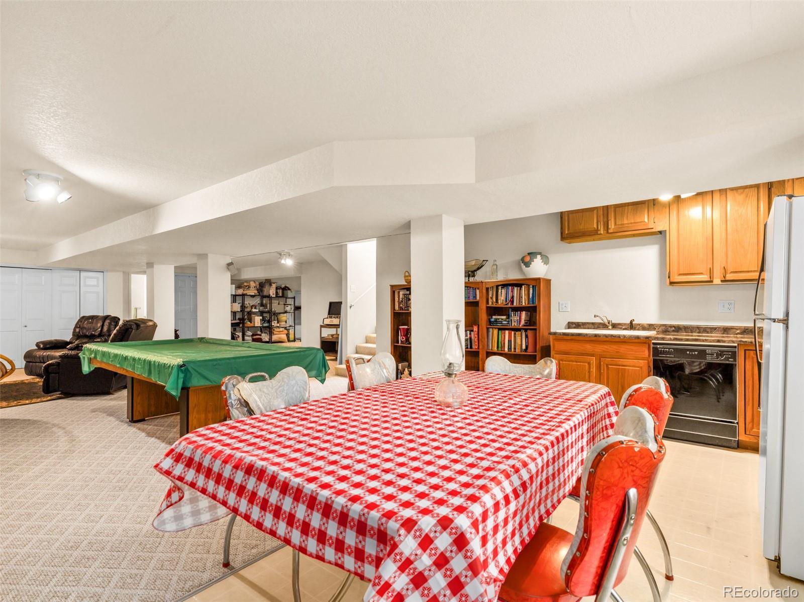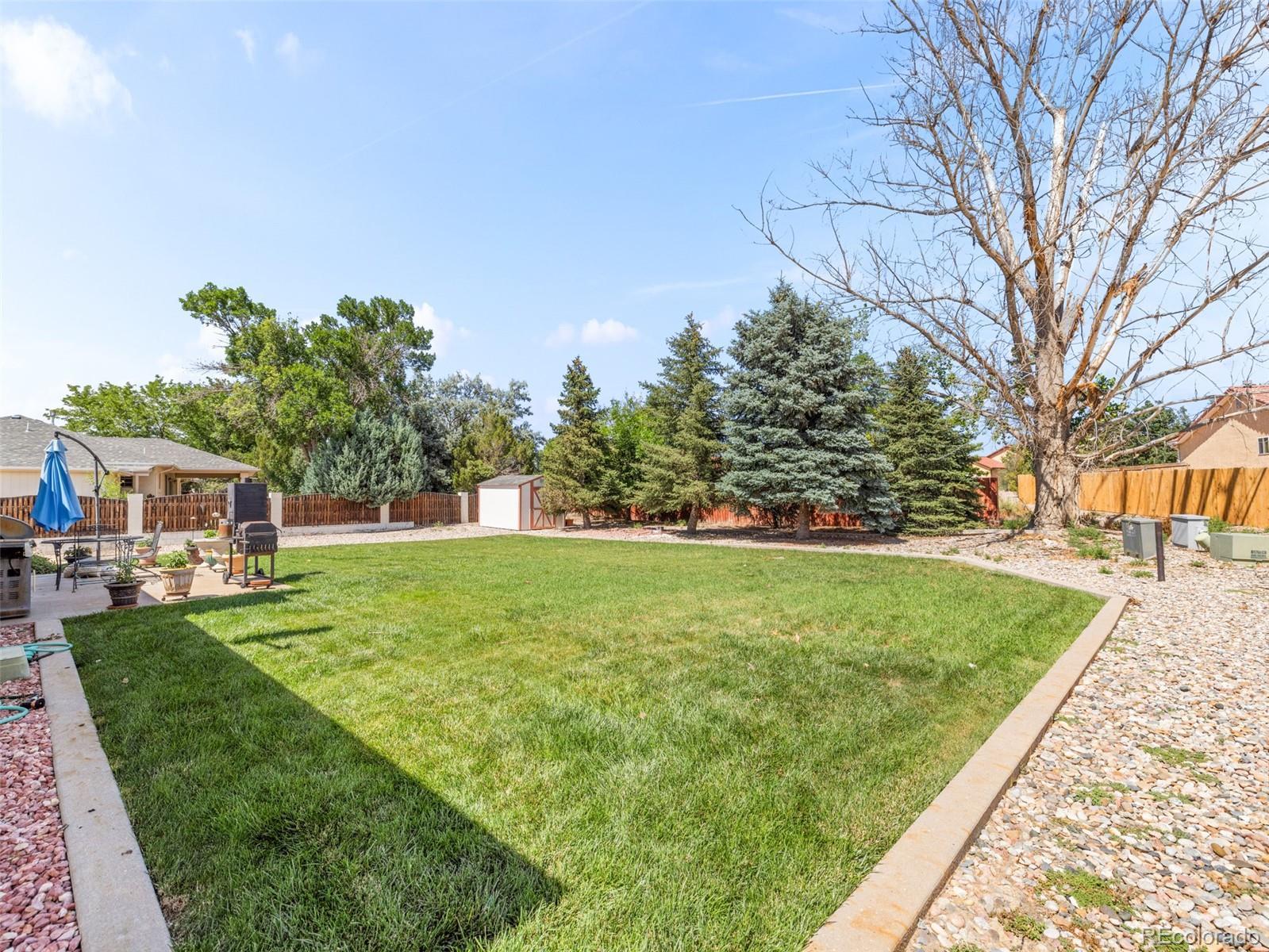 This one owner home is priced to sell quickly. Large lot almost a full acre on the PW Golf Course area. This multi generational home features a main level with 3 full bedrooms and of course the en-suite main bedroom has 5 piece master bath with double sinks and walk in closet. Formal dining room for all those special occasions. Comfy living room lets you enjoy a cozy fireplace on those cool Colorado evenings. Cooks delight in the kitchen with double oven, plenty of cupboards and pantry. Here is the bonus!! Multi generational living to be enjoyed as there is a full kitchen in the basement with great eating space storage shelves and large family/game room area with a pool table (negotiable) Basement has large bedroom and beautiful 3/4 bathroom. Also another non-conforming bedroom/office/storage room. Back yard large oversized area affords many opportunities for fun and games. Nice size patio and large shed and RV parking, mature landscaping, garden area, mature trees, mountain views. Bring your qualified buyers today!!