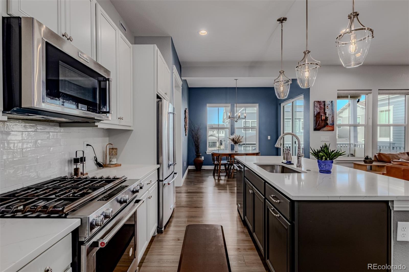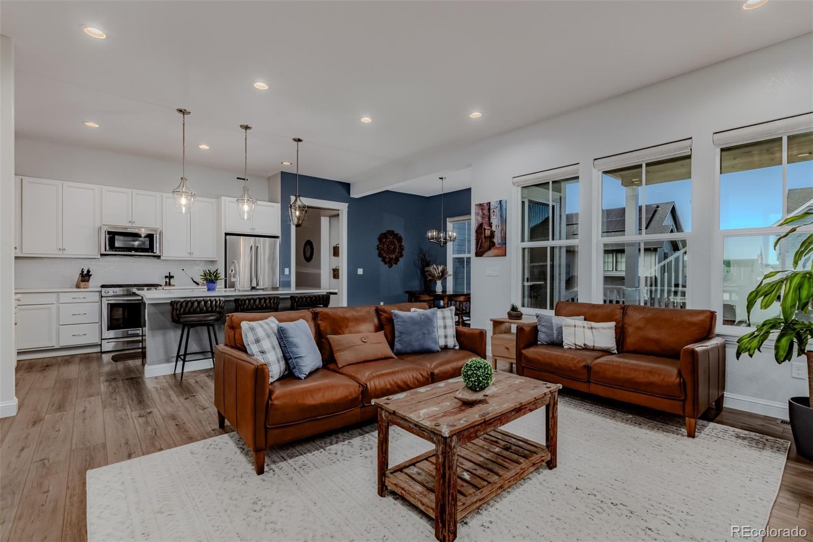 Experience the perfect blend of elegance and comfort in this better-than-new, highly upgraded 5-bedroom, 6-bathroom home with a finished walk-out basement and a 3-car tandem garage located in the prestigious Westerly community. Step inside to find a thoughtfully designed main level featuring a private home office and a spacious guest suite with its own en suite bathroom-ideal for visitors or multi-generational living. The gourmet kitchen will delight any chef, offering premium finishes, stainless steel appliances, and an oversized pantry providing both style and functionality. Upstairs, unwind in the versatile loft area, perfect for a second living space or playroom. You'll also find two additional bedrooms, a convenient laundry room, and a luxurious owner's suite that feels like a private retreat. Step out onto the newly added private patio from the primary suite and take in the breathtaking views of the Rocky Mountains and Colorado sunsets. The fully finished walk-out basement expands your living space even further, ideal for entertaining, a home gym, or a private guest area. Westerly offers a lifestyle that feels like a year-round getaway. The amenity center is the heart of the community-offering a resort-style pool, year-round hot tub, and state-of-the-art fitness center. Evenings are made for gathering with friends around cozy fire pits, hosting BBQs, or watching the big game under the stars. Prefer something more relaxed? Enjoy a warm coffee by the fireplace in the Latitude Room while connecting with neighbors. With weekly events, live entertainment, and food trucks, there's always something happening in Westerly.