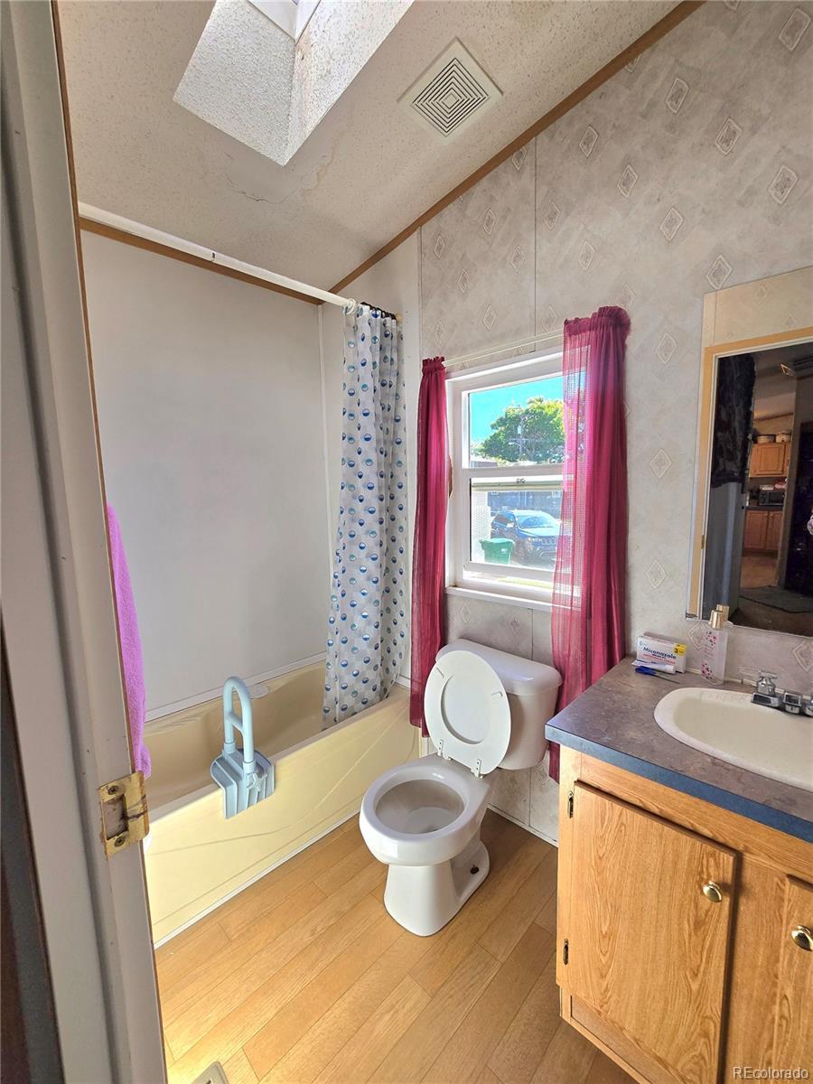 Welcome to this spacious home located close to shopping, dining, and everyday amenities, this home offers both convenience and opportunity, offering great potential with room to make it your own! Inside, enjoy high ceilings, a bright open layout, and skylights that bring in natural light throughout. The split-bedroom floor plan provides privacy, with the master suite featuring a 5-piece bathroom complete with dual sinks, a walk-in shower, and a large garden tub. Recent exterior updates include newer siding and skirting, while the interior is ready for your personal touch. This a perfect opportunity for buyers looking to add value with updates and improvements. With its thoughtful layout and solid structure, this home is full of potential — bring your vision and make it shine! Financing Available! This purchase is for the mobile home only, not the land. The lot rent amount and the park lease terms are set by the owners of the community and has the ability to change yearly. All information is deemed accurate and reliable but buyer and buyers agent to verify Sq. Footage, Due Diligence, School District Info, HOA/Lease Terms, etc.