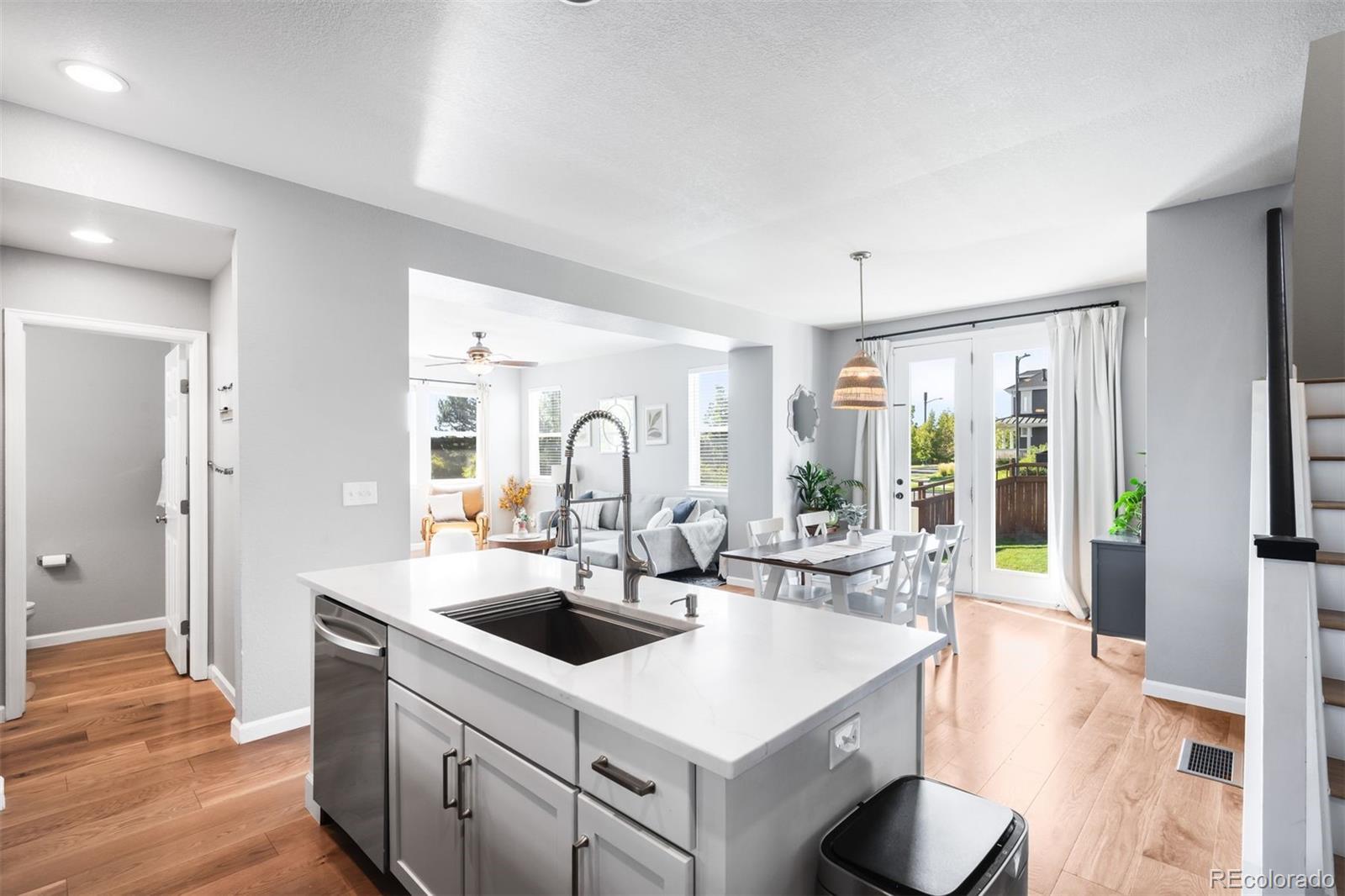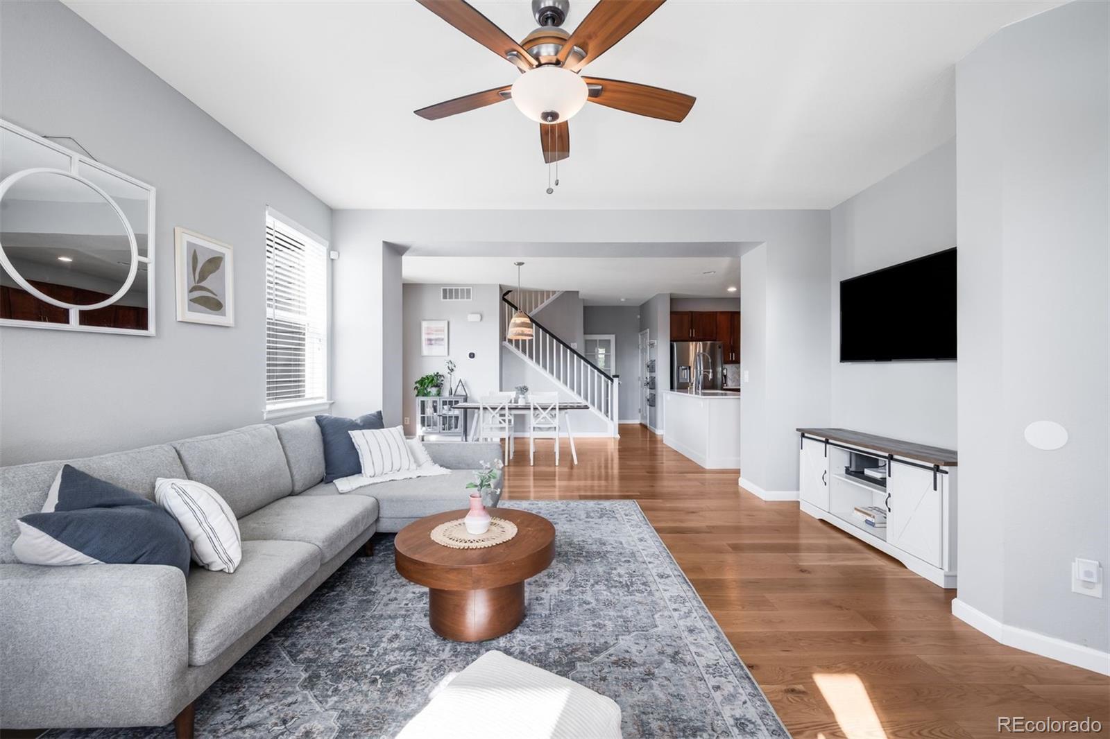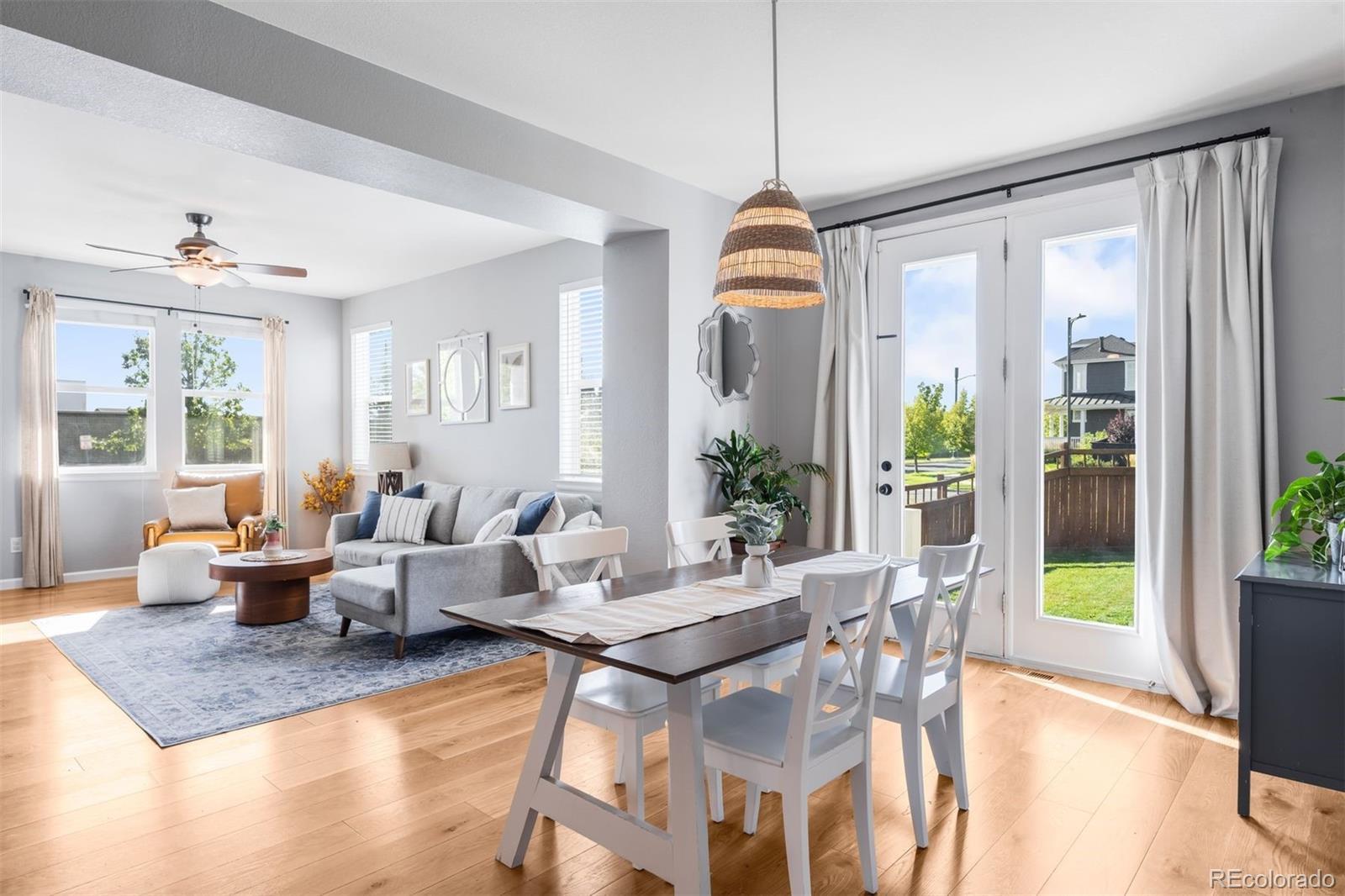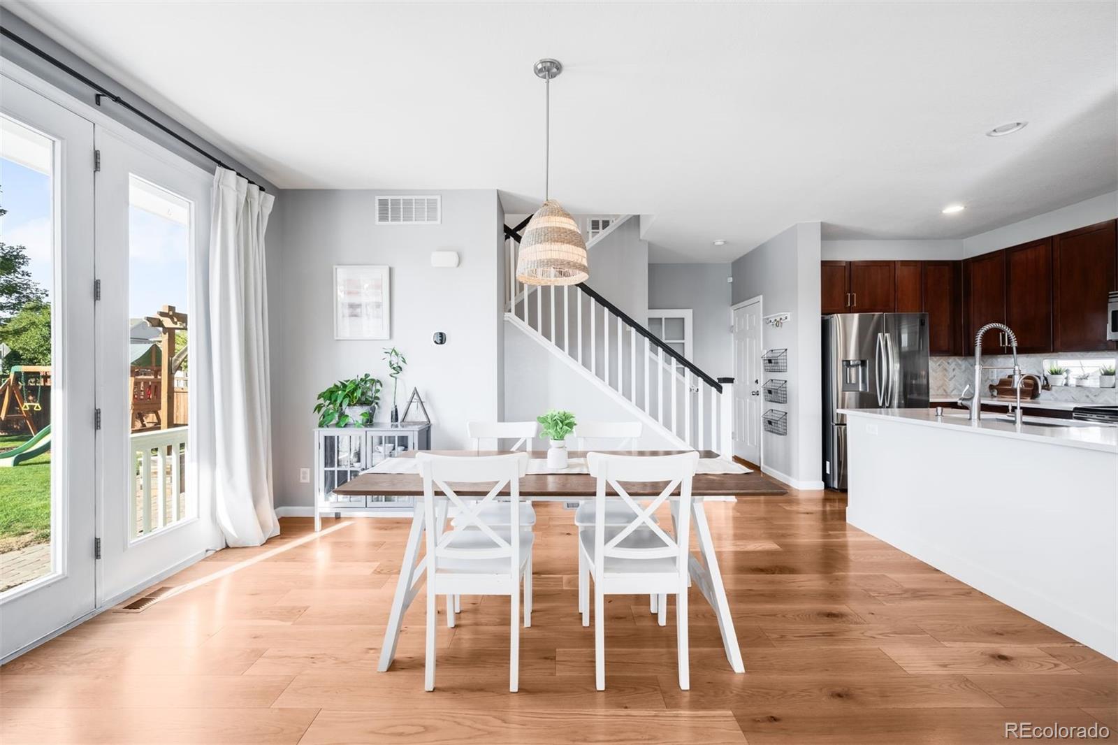 Set on a landscaped corner lot in the heart of Central Park, this beautifully updated home blends timeless comfort with modern style. A welcoming front porch leads into a sunlit living room with hardwood floors and effortless indoor and outdoor connection. The dining area opens through French doors into one of the neighborhood’s most coveted oversized backyards, a rare retreat offering space for entertaining, play, and quiet relaxation. At the center of the home, the chef’s kitchen showcases rich cabinetry, quartz countertops, a striking herringbone backsplash, stainless steel appliances, a reverse osmosis system, and a generous island that invites gathering. Upstairs, the primary suite offers a spacious closet and spa-like bath, joined by two additional bedrooms, a shared full bath, and a conveniently located laundry room. The finished basement expands the living space with a large family room, a versatile bedroom, and an additional full bath. Outdoor living is elevated with both a covered front porch and a private backyard patio framed by the oversized lot, while the attached two-car garage adds everyday ease. Beyond the home, the lifestyle is exceptional. Enjoy 80 acres of parkland, wildlife trails at Westerly Creek, the Central Park Rec Center and community pool, and Stanley Marketplace just minutes away. In the heart of Central Park, you are steps from Sprouts, the 29th Avenue Town Center, seasonal farmers markets, live music on the green, and a variety of shops, restaurants, and top-rated schools.