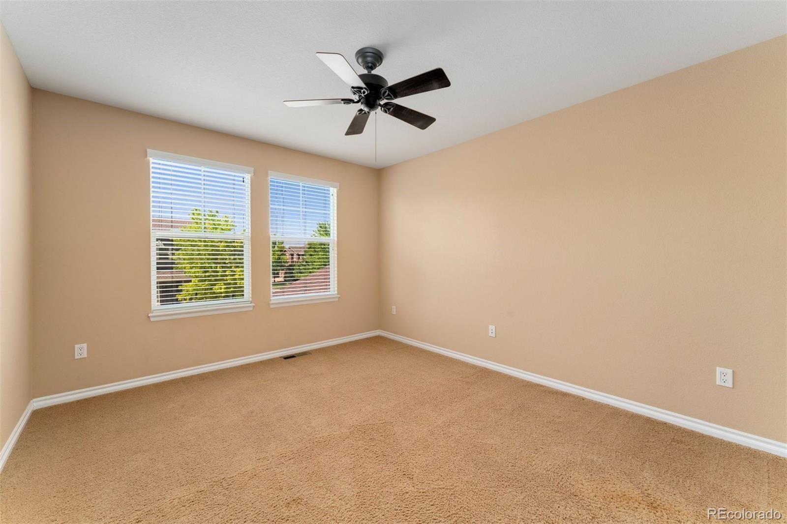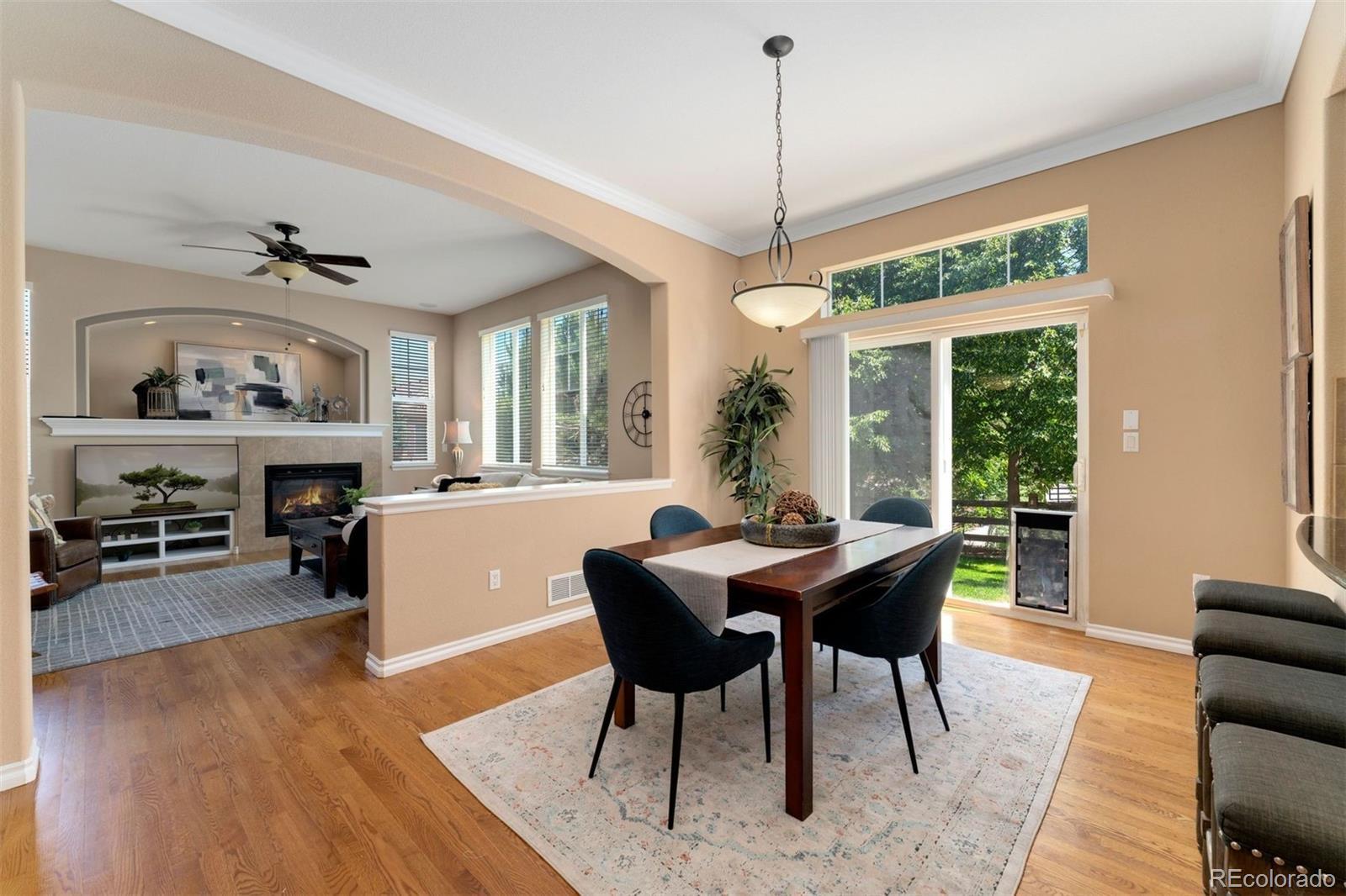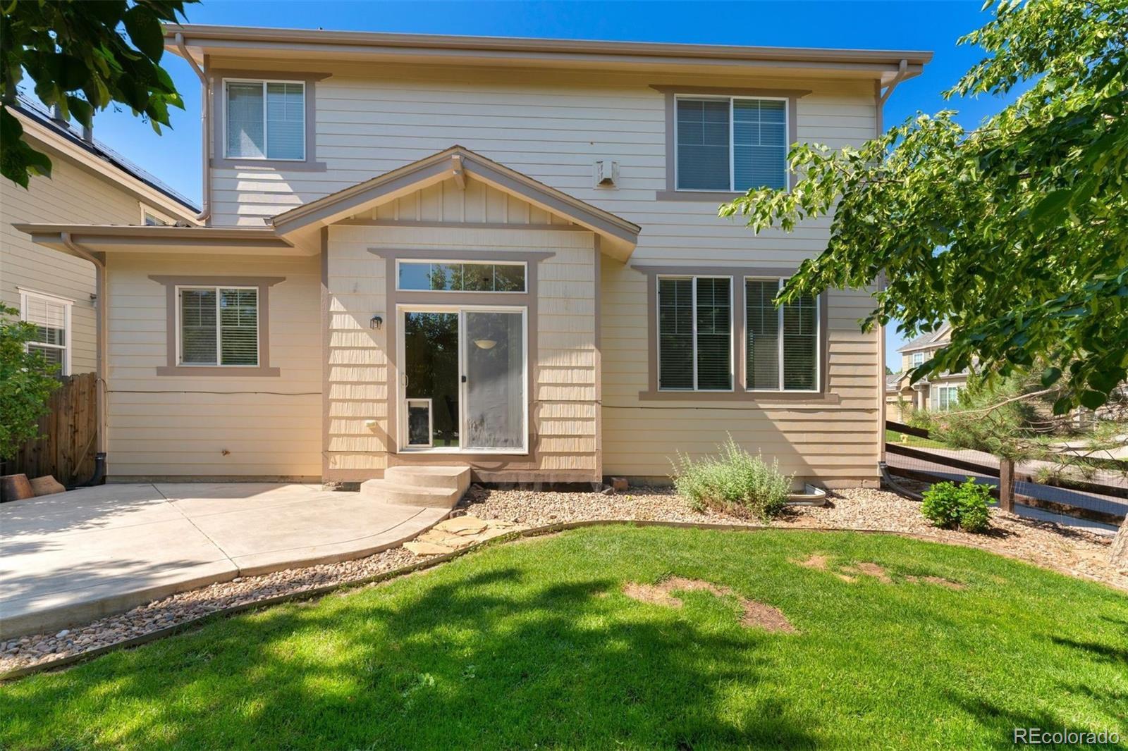 Located in the highly sought-after Cherry Creek School District, this former Berkeley model home offers thoughtful upgrades, stylish finishes, and a layout that suits today’s lifestyle. Built in 2007, this Penrose floorplan sits on an interior, corner lot with no direct rear neighbors, offering extra privacy and a quiet, peaceful setting. A welcoming front porch with porch swing adds charm and curb appeal right from the start. Inside, you’ll find quality finishes like real hardwood floors, crown molding, and wrought iron balusters. The main-level layout is open and airy, starting with a dedicated home office behind French doors and flowing easily into a spacious family room with gas fireplace. The kitchen is equally inviting, featuring upgraded 42” cabinetry, a gas range, double oven, granite countertops, pantry, and a built-in buffet with extra storage—ideal for entertaining or everyday ease. Sliding doors lead to a fenced backyard, complete with patio, grass, and space for a grill. Upstairs, the primary suite is a true retreat with tray ceiling, 2nd gas fireplace, dual walk-in closets, and a spacious bath with double vanity. Two additional bedrooms share a well laid out full hall bathroom with double sinks and separate area for shower and toilet—perfect for shared use. The finished basement provides additional flexibility with a large rec room, 4th bedroom and 4th bathroom. One other valuable upgrade: this home will receive a brand-new roof prior to closing, with buyers given the option to upgrade to an Impact Resistant roof for a minimal cost—an investment that can offer sizable insurance savings. Zoned for highly ranked High Plains Elementary, Campus Middle, and Cherry Creek High don’t miss this opportunity to own a home that offers a great location, layout, and livability in one polished package. Cherry Creek State Park is just 4 blocks away and offers amazing hiking and biking. Nearby Centennial Center Park offers summer concerts and a water park!