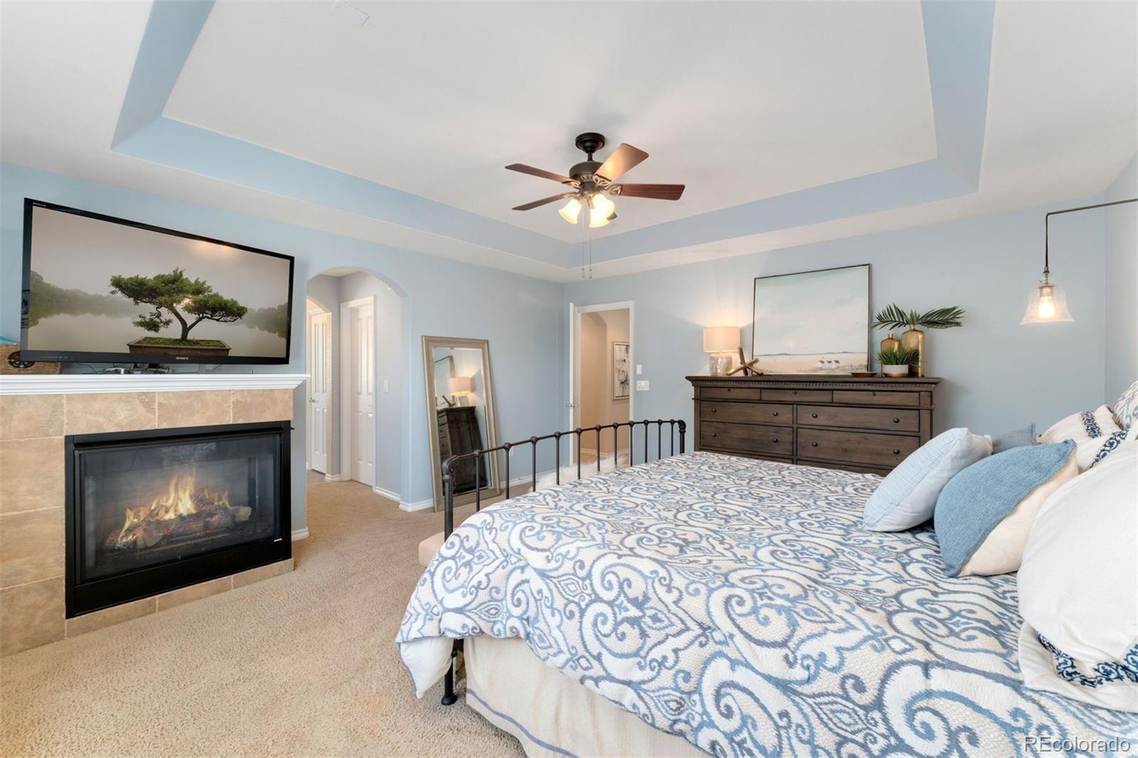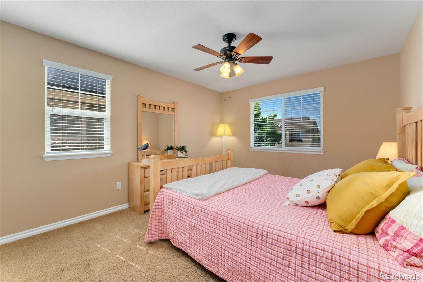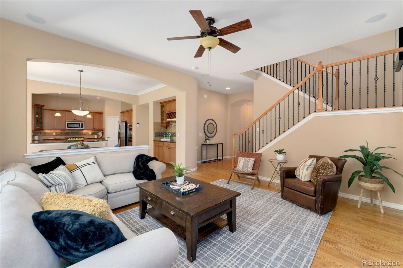 Located in the highly sought-after Cherry Creek School District, this former Berkeley model home offers thoughtful upgrades, stylish finishes, and a layout that suits today’s lifestyle. Built in 2007, this Penrose floorplan sits on an interior, corner lot with no direct rear neighbors, offering extra privacy and a quiet, peaceful setting. A welcoming front porch with porch swing adds charm and curb appeal right from the start. Inside, you’ll find quality finishes like real hardwood floors, crown molding, and wrought iron balusters. The main-level layout is open and airy, starting with a dedicated home office behind French doors and flowing easily into a spacious family room with gas fireplace. The kitchen is equally inviting, featuring upgraded 42” cabinetry, a gas range, double oven, granite countertops, pantry, and a built-in buffet with extra storage—ideal for entertaining or everyday ease. Sliding doors lead to a fenced backyard, complete with patio, grass, and space for a grill. Upstairs, the primary suite is a true retreat with tray ceiling, 2nd gas fireplace, dual walk-in closets, and a spacious bath with double vanity. Two additional bedrooms share a well laid out full hall bathroom with double sinks and separate area for shower and toilet—perfect for shared use. The finished basement provides additional flexibility with a large rec room, 4th bedroom and 4th bathroom. One other valuable upgrade: this home will receive a brand-new roof prior to closing, with buyers given the option to upgrade to an Impact Resistant roof for a minimal cost—an investment that can offer sizable insurance savings. Zoned for highly ranked High Plains Elementary, Campus Middle, and Cherry Creek High don’t miss this opportunity to own a home that offers a great location, layout, and livability in one polished package. Cherry Creek State Park is just 4 blocks away and offers amazing hiking and biking. Nearby Centennial Center Park offers summer concerts and a water park!