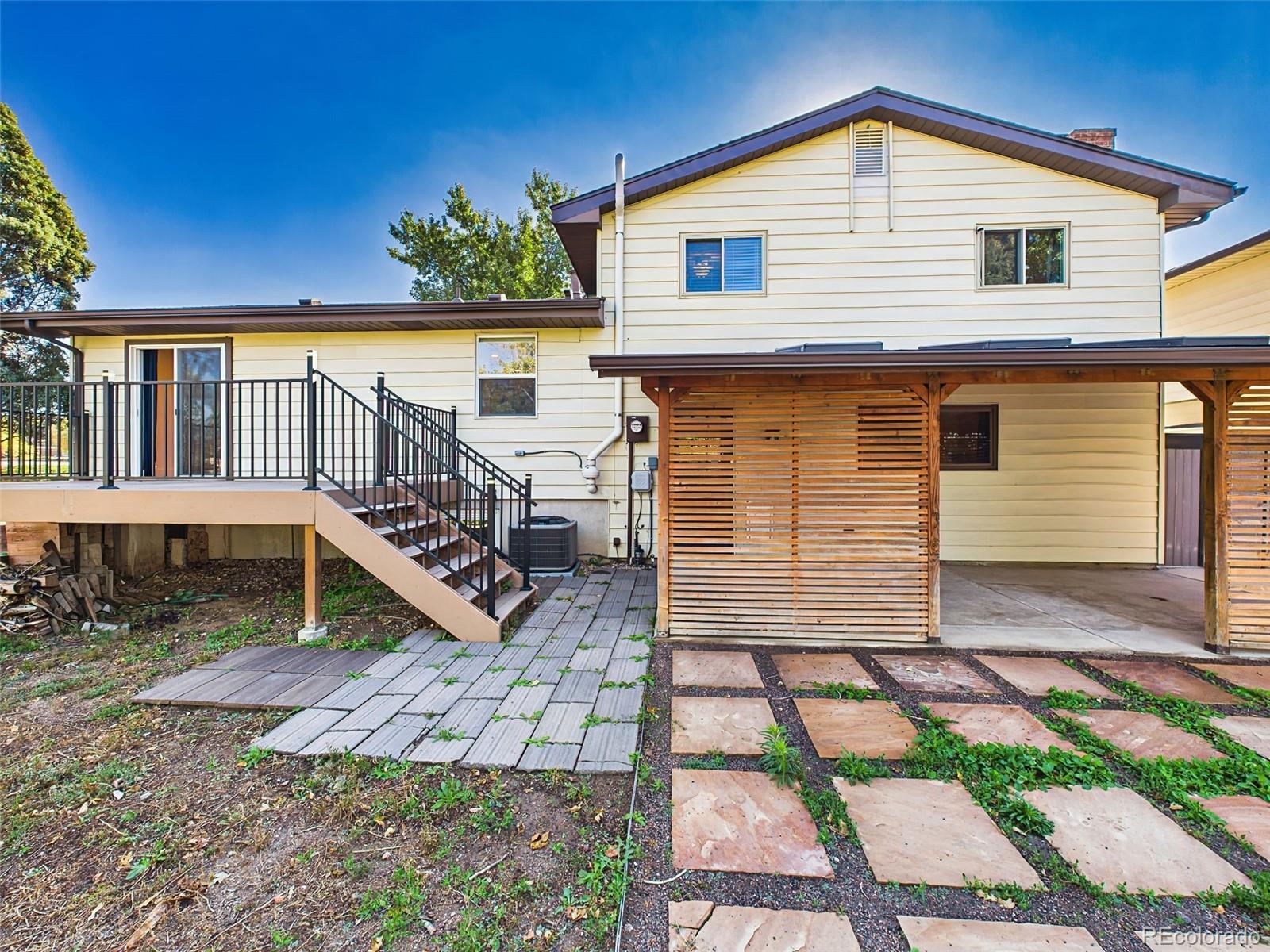 Beautifully updated and move-in ready, this spacious 4-level home offers an exceptional combination of quality, condition, and location on a private corner lot in Colorado Springs. Inside, you'll find a modern open-concept main level featuring a fully remodeled kitchen with stainless steel appliances, soft-close cabinetry, and a generous center island—ideal for cooking and entertaining. The great room includes recessed lighting, a ceiling fan, and direct access to a composite deck through the dining area. Upstairs, bright and inviting, spacious primary suite with rustic barn-style sliding door and a private en suite bath, additional 2 bedrooms with plush carpet and updated hall bath. The lower-level family room offers a cozy fireplace framed by a brick accent wall and extended mantle, plus walk-out access to the backyard. The finished basement provides a fantastic bonus space, perfect for a home theater, game room, or entertainment lounge—complete with LED accent lighting and ample room to spread out. Recent updates include vinyl casement windows, remodeled bathrooms, fresh paint, a newer roof 2022, central A/C, ceiling fans, and cedar-lined closet floors. Step outside to enjoy a beautifully landscaped yard with mature trees, raised garden beds, and a fully fenced backyard. Entertain on the composite deck or unwind under the stylish covered patio with privacy slats and skylights. Partial mountain views add to the charm of this outdoor retreat. Located near Villa Loma and Homestead Parks with walking trails just across the street, and close to shopping, dining, and Powers Blvd for easy commuting. This home truly has it all—style, space, updates, and location.
