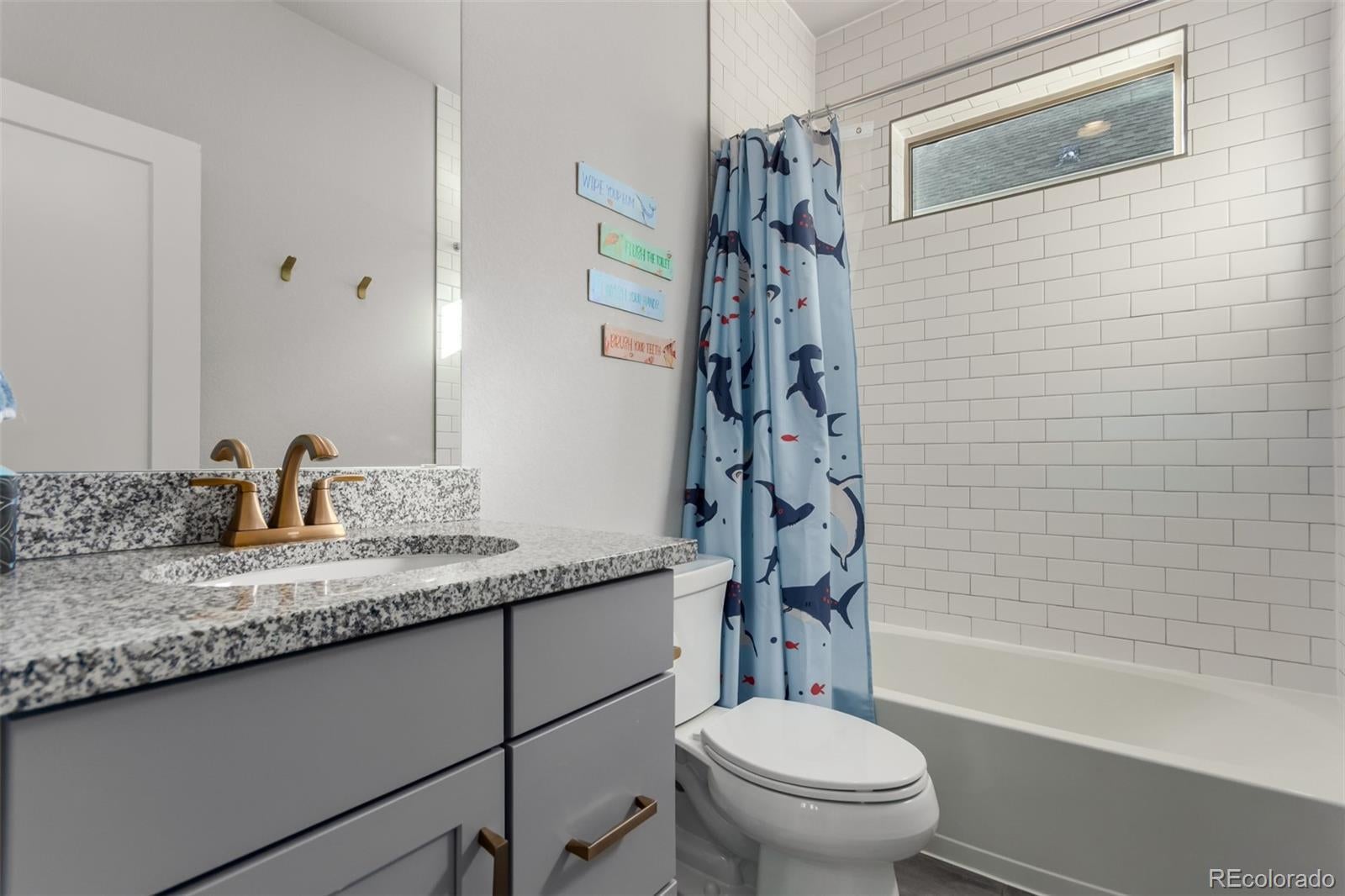 Beautifully designed 4BR + office home in Central Park’s North! Outstanding curb appeal is highlighted by a charming full-length front porch that sets a welcoming tone. The bright & airy interior showcases wood-style floors, thick baseboards, & a soothing neutral paint throughout. You’ll love the inviting living area boasting a cozy gas fireplace & media niche. A convenient powder room & generously sized den/office provide flexibility! The luminous dining area flows seamlessly into the modern kitchen, which is equipped with SS appliances, cabinetry adorned with crown moulding, granite counters, a breakfast bar island, & a stylish backsplash. The primary bedroom has a private bathroom offering dual sinks, a luxurious rain shower, & a spacious walk-in closet. Upstairs you'll find two more bedrooms and a laundry room for ease of use. Downstairs, the carpeted basement expands the living space with a wet/wine bar with a bar dishwasher, an additional bedroom, and a full bathroom, perfect for guests or entertaining. Enjoy a fenced side patio with a grassy area for relaxing or play, while a rear-entry two-car garage adds convenience. Upgrades include gas fireplace, basement bar, champagne bronze plumbing and lighting fixtures, a jetted basement tub, garage racks, and location means you are walkable to the community pool. Welcome home! *Please note the field across the street is owned by Denver and a future school is proposed but no timeline is set that we know of.*
