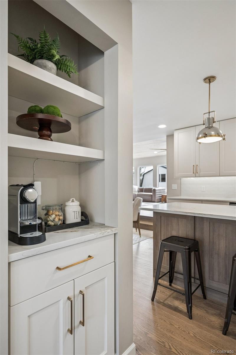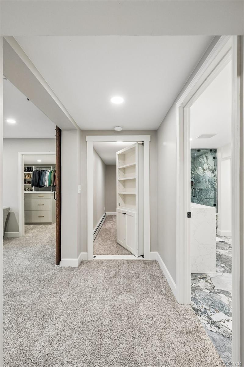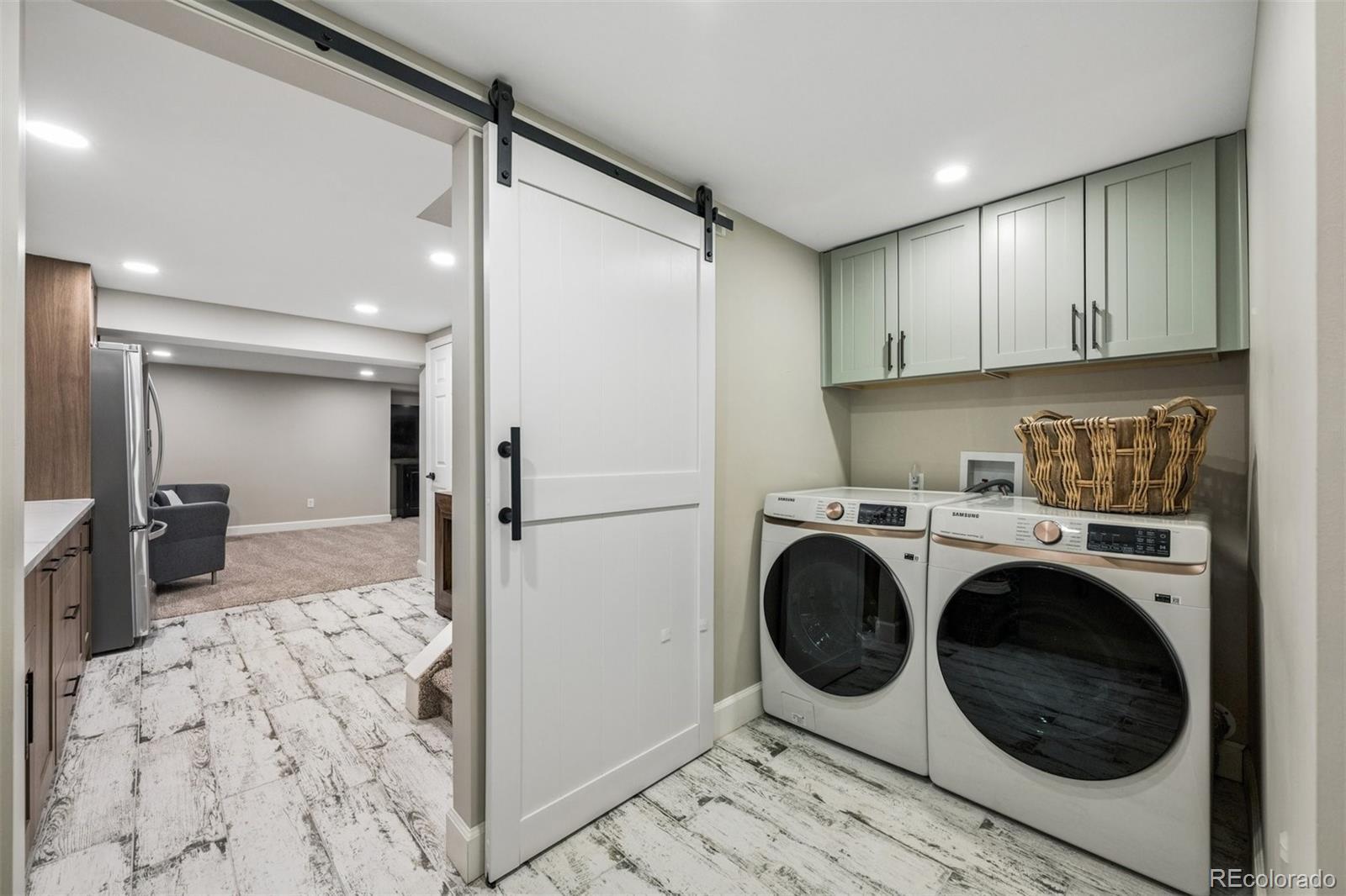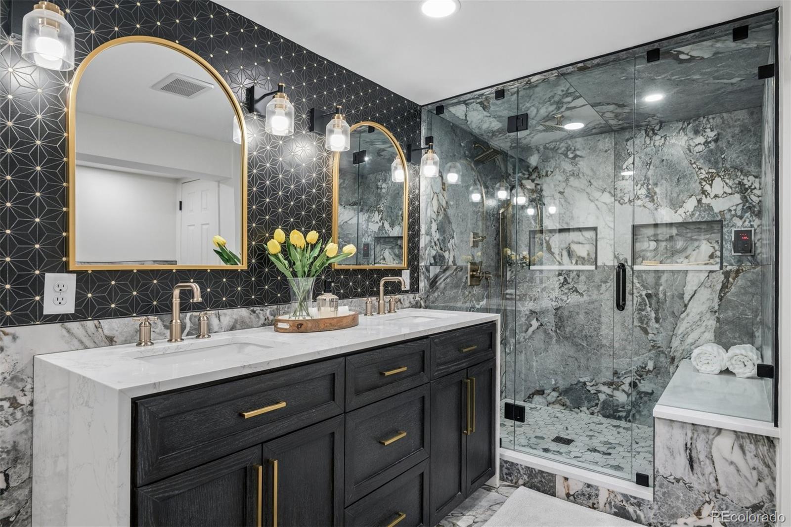 This stunning fully renovated Littleton home has been completely transformed over the past two years with over $1 million in upgrades and a beautiful 1,135 sq. ft. addition, bringing the total finished space to 4,621 sq. ft. Designed for both luxury and functionality, the home features a show-stopping remodeled kitchen with quartz countertops, custom cabinetry, high-end KitchenAid appliances, 48” gas range, three ovens, massive island, and coffee bar. Thoughtfully updated living spaces include new flooring, paint, lighting, a gas fireplace, a private office, a large pantry, two laundry rooms, and a bright Colorado sunroom with beetle-kill wood ceilings and dedicated heating and cooling. The fully renovated upper level offers four bedrooms, two bathrooms, and the first of two primary suites — plus a hidden soundproof recording studio. The walk-out basement provides flexible living with a large family room, full kitchenette, and a luxurious second primary suite featuring a dream closet and spa-inspired bath with steam shower, soaking tub, and private patio. A hidden Murphy-door “secret room” adds a unique touch. Major system upgrades include a new roof, siding, windows, electrical, boiler, sewer line, heating and cooling systems, and more. Outside, enjoy professional landscaping, new patios and Trex decking, an extended driveway, an insulated epoxy-floor garage, and an 832 sq. ft. barn with electricity. The property backs directly to Raccoon Hollar Nature Park, offering privacy, views, and a peaceful natural setting. This is a rare turnkey property offering exceptional space, quality, and peace of mind.