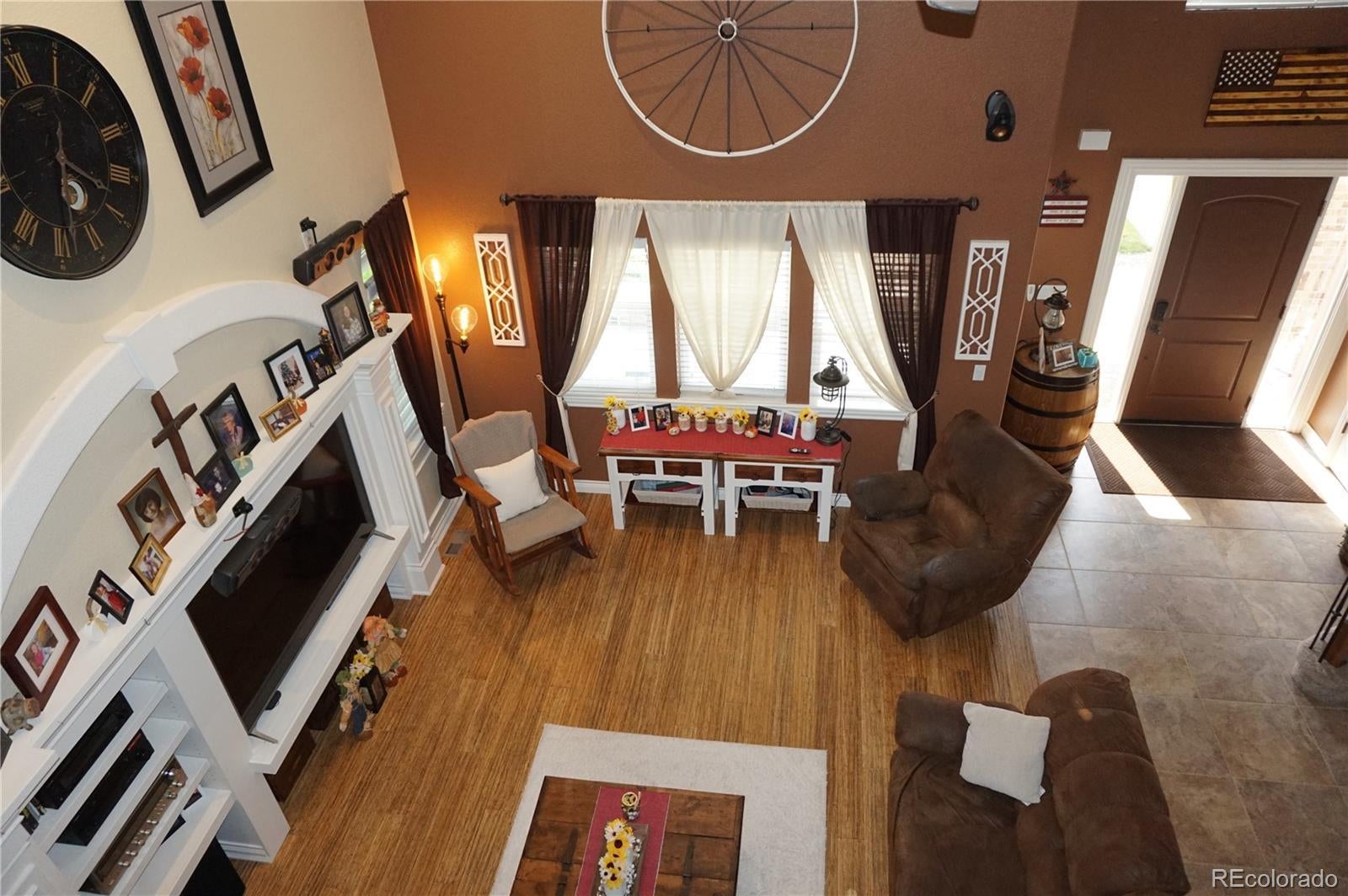 Truly all the features you look for in an amazing home!! (((Move-In Condition))) Single-owner and immaculately maintained!! Beautiful custom floors flow throughout the main level which includes dramatic vaulted ceilings, rotunda staircase, crown molding throughout and main floor primary suite. The kitchen is a chef’s delight, complete with custom cabinets, granite slab, massive breakfast bar, pantries and top of the line appliances. The spacious dining room and huge open great room are perfect for all special occasions and entertaining with impressive vaulted ceilings, built-in shelving and surround sound speakers. Plenty to love with a main floor luxurious primary suite that features a sparkling 5-pc bath with deep soaking tub and walk-in closets. Lots of options for this large loft overlooking the main entry, perfect for media space, game room, office, den, library, or flex space. The large open basement is ready to be finished, adding even more livable square footage to this large home. Bring all your toys, this home features an oversized 3-car garage upgraded with built-in cabinets, ceiling fans, lighting, electrical and more. Professionally landscaped font and back complete with covered front porch and large covered backyard patio, perfect for outdoor BBQs and entertaining! The backyard includes a huge 11X14 storage building and tunes of parking. Newer hail impact resistant roof. Close to parks, trails & easy access to 470 and DIA. Move-in condition and ready for the pickiest buyer... (((Hurry, THIS IS THE ONE)))