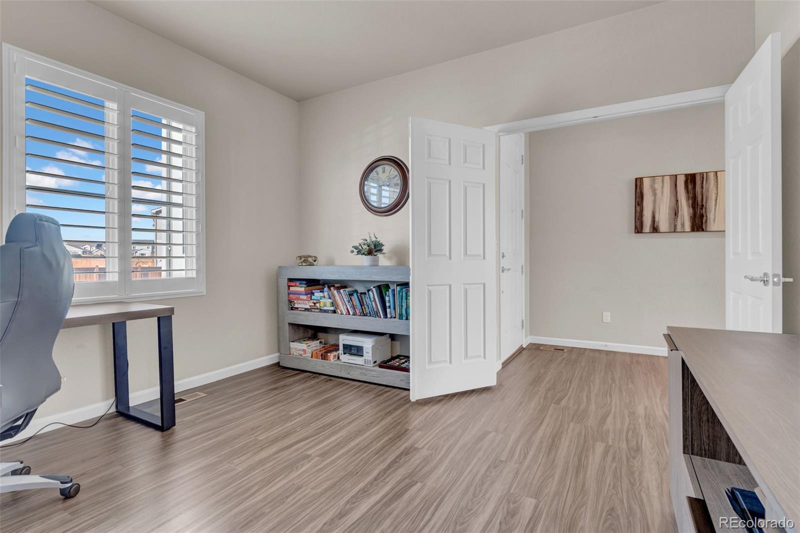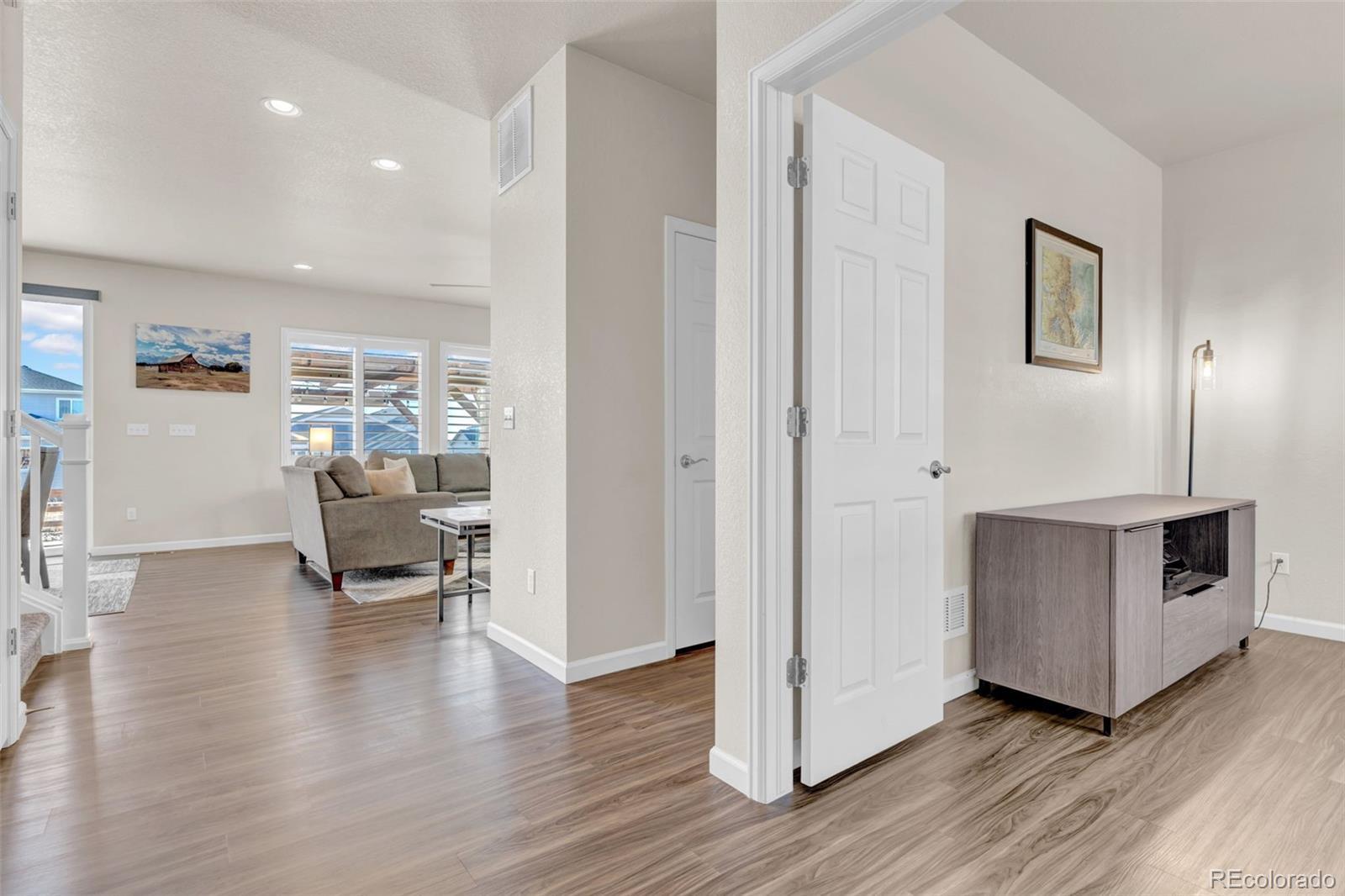 Set in Thornton’s well-established Mayfield neighborhood, this contemporary two-story home combines thoughtful design with everyday convenience and privacy. The main level features an open family room, a kitchen with granite countertops and a large center island, a dedicated dining area, a main-level office, powder bath, and a mud room with built-in storage, ideal for both daily living and entertaining. Upstairs, all three bedrooms are located on one level, including a spacious primary suite with a walk-in closet and en-suite bath, plus two additional bedrooms served by a full hall bathroom. The unfinished basement offers approximately 1,022 square feet of future potential... perfect for additional living space, a home gym, or media room. Enjoy a fully fenced backyard backing to a greenbelt, creating a private outdoor space for relaxing or gatherings. Additional features include central air conditioning, an attached two-car garage, and a recently replaced roof (November 2024), providing peace of mind for years ahead. This location cannot be beat! Enjoy easy access to outdoor recreation at Grange Creek Park and Carpenter Park, both offering trails, open space, and playgrounds. Everyday shopping and dining are close by at Orchard Town Center. For weekend adventures, Denver’s dining, museums, and cultural attractions are easily accessed via I-25, and outdoor destinations like Water World and regional trails are just a short drive away, making this location both practical and engaging for all lifestyles. A rare combination of greenbelt privacy, a flexible modern layout, and everyday convenience to parks, shopping, and major commuter routes, this home checks every box for comfortable living in a truly connected Thornton location.